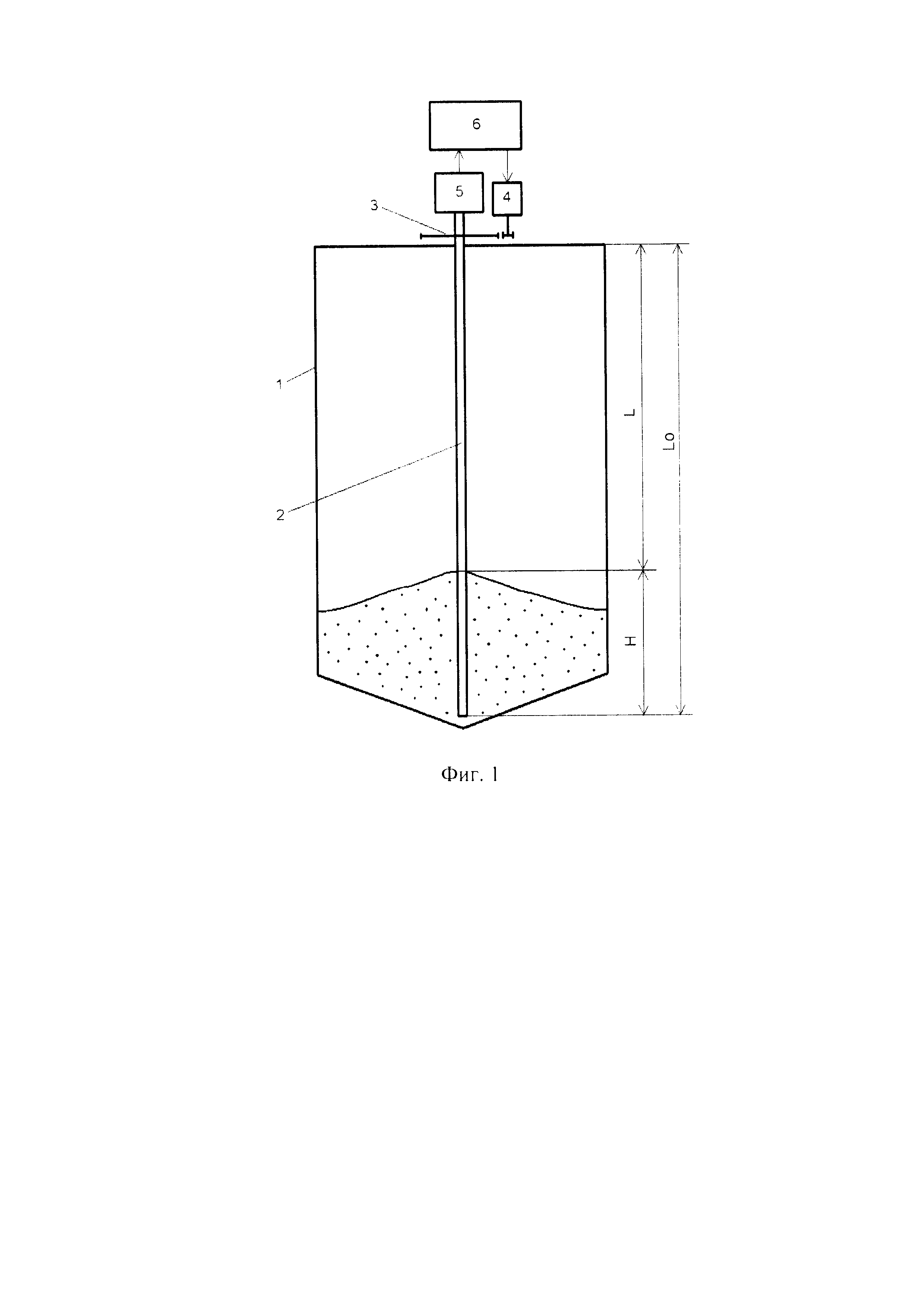 Предлагаемое изобретение относится к контрольно-измерительной технике и может быть использовано в системах автоматического определения уровня сыпучих веществ в различных отраслях народного хозяйства, например, в сельском хозяйстве - при измерении уровня зерна в силосных башнях, муки, удобрений, в промышленности строительных материалов - при измерении уровня песка, гравия, щебня, цемента, керамзита и др. Известны устройства и приборы для определения уровней материалов в емкостях такие как, например, крыльчатые (ротационные) указатели уровня сыпучих материалов, лотовые измерители уровня, емкостные уровнемеры, всевозможные бесконтактные устройства, основанные на отражении направленного излучения от границы раздела воздушной и твердой сред. Недостатки этих известных устройств состоят в следующем: крыльчатые приборы указывают те уровни, на которых они установлены, т.е. дискретно; лотовые уровнемеры имеют длительное время измерения и имеют низкую точность при загрязнении подвижных частей измерителя; емкостные уровнемеры имеют низкую точность измерения из-за влияния на диэлектрическую проницаемость измеряемых материалов влажности, температуры; устройства, использующие неконтактные методы измерения имеют низкую точность измерения из-за нестабильного отражения от наклонных поверхностей сыпучих сред и из-за отражения от стенок емкостей. Известен способ измерения порошкообразной среды (патент RU 2243512, С2, МПК7 G01F 23/00, опубл. 10.09.2004 г.), заключающийся в наложении на порошкообразную среду возмущающего воздействия в виде реверсивного вращения двух стержней, введенных в порошкообразную среду на различные глубины, отличающиеся на известную величину, причем одна из глубин является максимальной, с измерением моментов сил, действующих на стержни. Недостатком способа является низкая точность измерения уровня по причине нелинейности и нестабильности изменения давления внутри измеряемой среды по высоте и нестабильности коэффициента трения между стержнями и измеряемой средой. Наиболее близким по технической сущности является способ определения уровня веществ (патент RU 2042116, С1, МПК6 G01F 23/00, опубл. 20.08.1995 г.), заключающийся в том, что чувствительный элемент периодически вращают с помощью электродвигателя, при этом чувствительный элемент выполнен в виде измерительной штанги и опущен в измеряемое вещество на максимально возможную глубину, а в момент включения электродвигателя измеряют значение его пускового тока, по которому определяют искомое значение уровня. Недостатком известного способа является низкая точность определения уровня, обусловленная зависимостью сопротивления трения чувствительного элемента о вещество от давления вещества на чувствительный элемент, которое нелинейно изменяется по высоте емкости, от типа вещества, его фракционной структуры, степени уплотнения, влажности и т.д. Целью изобретения является повышение точности определения уровня сыпучих веществ. Поставленная цель достигается тем, что в способе определения уровня сыпучих веществ, заключающемся в том, что чувствительный элемент, опущенный в измеряемое вещество на максимально возможную глубину, периодически вращают с помощью электродвигателя и измеряют значения, по которым определяют уровень сыпучих веществ, согласно изобретению чувствите