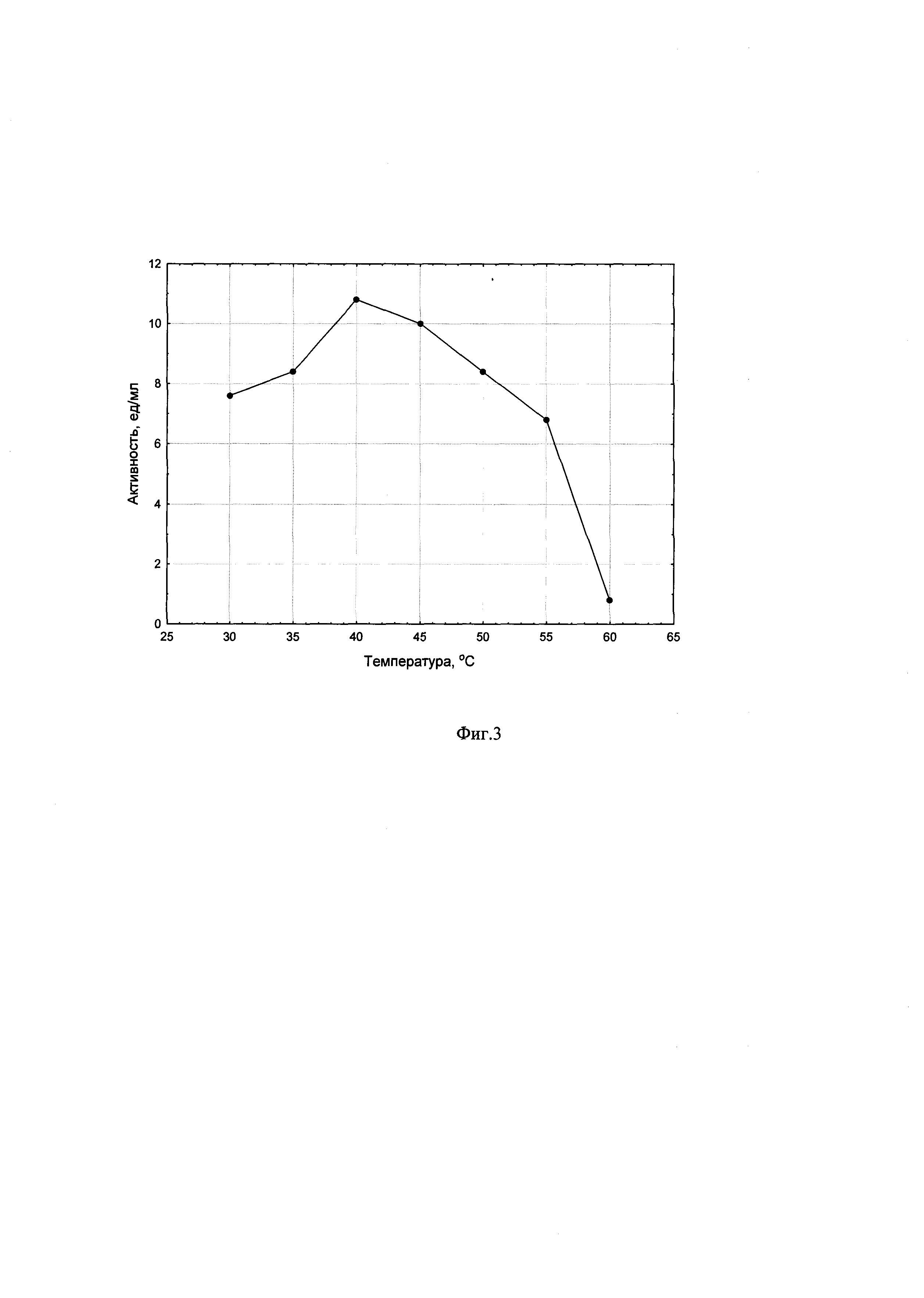 молекулярную массу 14000,75 Да, расчетное значение изоэлектрической точки pI=10.35, температурный оптимум ферментативной реакции в пределах 40°C, рН-оптимум фермента в пределах 7,7.