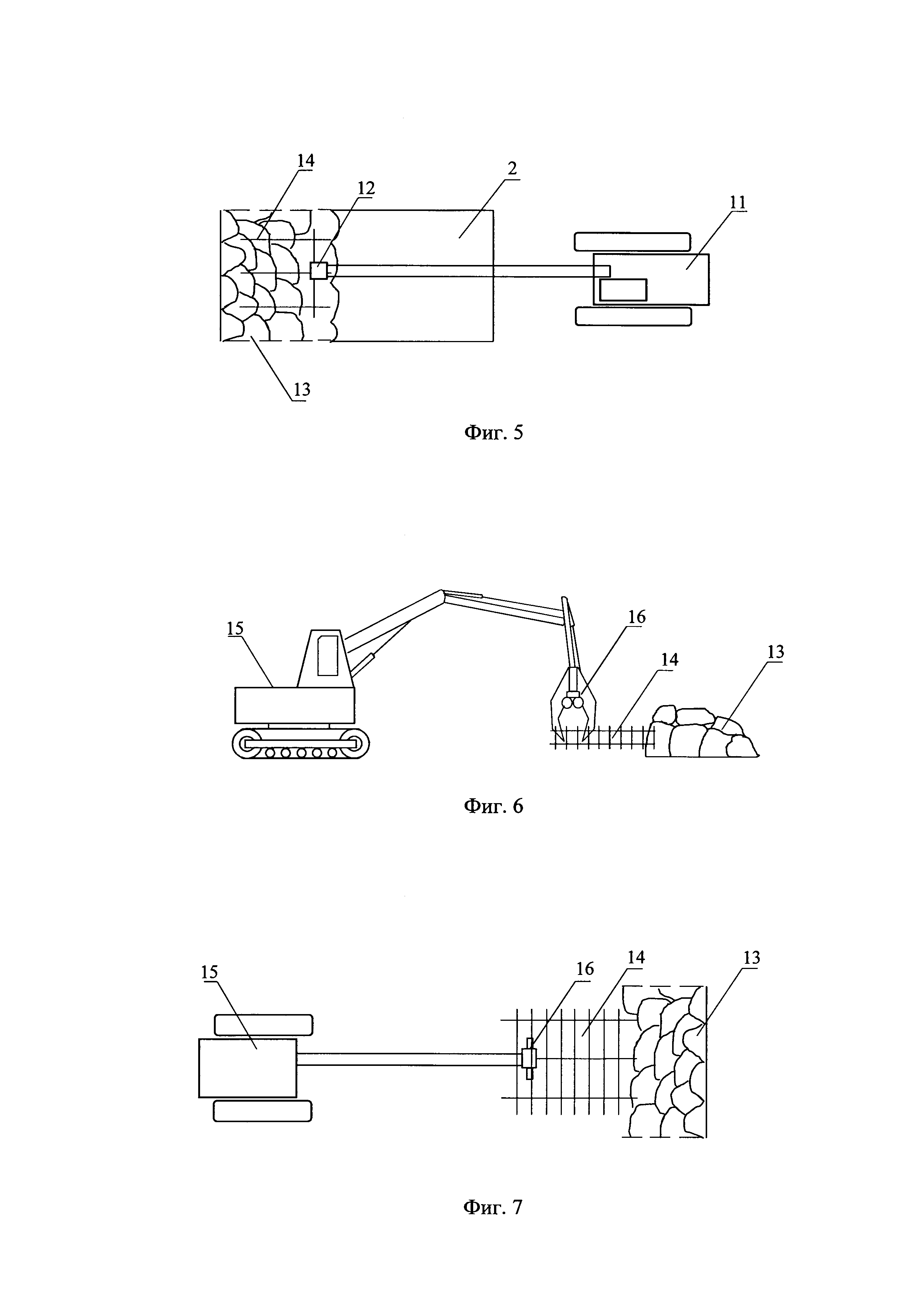 Изобретение относится к области строительства, а именно к способу демонтажа монолитных железобетонных конструкций с последующей утилизацией образованного строительного материала после разборки. В рамках предложенного изобретения под монолитной железобетонной конструкцией понимается монолитная железобетонная плита, являющаяся структурным элементом массива монолитного строения объекта капитального строительства, а в качестве примера применения предложенного способа демонтажа монолитной железобетонной конструкции с утилизацией материалов от разборки представлен демонтаж монолитной железобетонной плиты. Известен способ безвзрывного разрушения в статическом режиме монолитных объектов, включающий комплект гидроклиньев - DARDA - немецкой фирмы Porsfeld Gmbh und Со, гидроклинья типа C-15W - японской фирмы Hirado Ltd, а также установки: HRS-100, HRS-97, HRS-60, HRS-40, HRS-33, из публикаций в Горном журнале в июне 1996 г. Ю.А. Лебедевым, А.К. Горьковым, А.Б. Макаровым, В.Т. Колодиным в статье: "Безвзрывной раскол скального массива", стр. 35-40 - [1]. Способ блочного разрушения монолитных объектов включает бурение шпура или скважины, размещение в нем гидроклинового распорного устройства, имеющего клин и раздвижные матрицы, и пакера, включение насоса, заполнение жидкостью распорного устройства под давлением через канальную трубу, образование трещины, выключение насоса и извлечение распорного устройства. Недостатком данного способа является возможность его ограниченного использования в городских условиях для демонтажа объекта. Общеизвестными способами разрушения объектов капитального строительства (зданий и сооружений) является их демонтаж с помощью обрушения посредством использования соответствующей строительной техники с целью механического воздействия на строительные конструкции - [2], а также посредством проведения взрывных работ - [3]. Поскольку нарушение устойчивости объекта при разрушении соответствующих связей в ходе демонтажа может повлечь за собой самопроизвольный обвал строительных конструкций, данной способ требует значительного увеличения ограждаемой площади участка, на котором ведутся строительные работы. Кроме этого, демонтаж общеизвестными способами сопровождается образованием значительного количества строительного мусора различных форм и размеров, требующего утилизации. Наиболее близким аналогом, принятым в качестве прототипа, заявляемого способа является «Способ блочного разрушения монолитных объектов и устройства для его осуществления» (RU 2224106С2, Е21С 37/02, 2000.01, Е21С 37/08, 2000.01) - [4]. Реализация данного способа заключается в бурении шпура в скальной породе, размещении в нем гидроклинового распорного устройства, имеющего клин и раздвижные матрицы, и пакера. В соответствии с известным способом на первом этапе перекрывают канальную трубу и статическим напором жидкости с помощью матриц распорного гидроклинового устройства формируют концентрацию напряжений в монолитном объекте в заданном направлении, затем открывают канальную трубу для выпуска струи, создавая гидродинамический удар по клину, образуют кумулятивную струю на выходе из распорного устройства, под действием которой и при динамическом напоре расклинивающих усилий образуют трещину в монолитном объекте. В соответствии со способом-прототипом процесс трещинообразов
