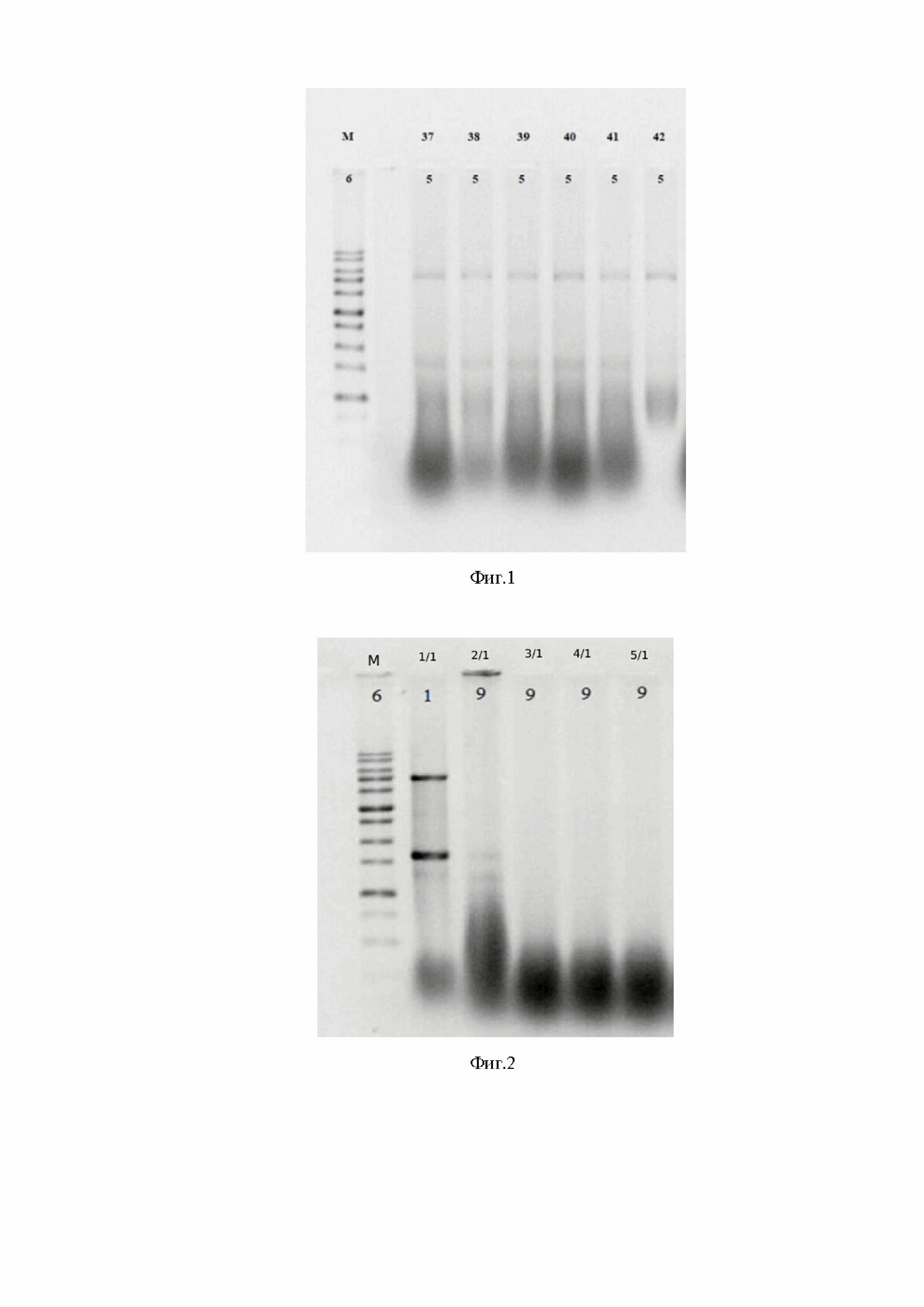 Saccharomyces cerevisiaeУсловия осаждения суммарной РНК Способ разрушения клеток дрожжей Выход суммарной РНК на 100 г биомассы дрожжей Saccharomyces cerevisiae, мг Способ 1 Ферментный препарат Arthrobacter luteus ATSS 21606, 36°С с последующим прогреванием при 75°С Диафильтрация Ферментативный 760-900 Способ 2 SDS до 2% + 25 об. % хлороформ; 25°С 3,5М NaCl + этанол (или другой одноатомный спирт) до концентрации 60 об. % в целевом растворе Химический 300-400 Способ 3 SDS до 1,0% + хлороформ до 25 % в растворе; 25-30°С; при очистке + SDS до 2,0 % 3,5 М раствор LiCl; этанол (или другой одноатомный спирт) до концентрации 50-55 об. % в целевом растворе Химический 320-440 Способ 4 2,5% SDS, 100°С, больше или равно 40 мин до 3,0 М раствор NaCl; промывка 3,0 М раствором NaCl Химический, физический (температура) 1260 - 1410 (c полной деструкцией дсРНК) Способ 5 Олеиновая кислота, оттитрованная щелочью + 2,5 М NaOH; 98-102°С 3,0 М раствор NaCl Химический, физический 1104- 1280 (c полной деструкцией дсРНК) Способ 6 Олеиновая кислота, оттитрованная щелочью + 2,5 М NaOH; 98-102°С отстаивание Химический, физический 1160-1368 (c полной деструкцией дсРНК) Способ 7 0,3-1,2 М раствор 2-этилгексановой кислоты + 92-98°С этанол (или другой одноатомный спирт) до его концентрации в целевом растворе 50-55 об. % Химический, физический 1280- 1400 (c полной деструкцией дсРНК) Способ 8