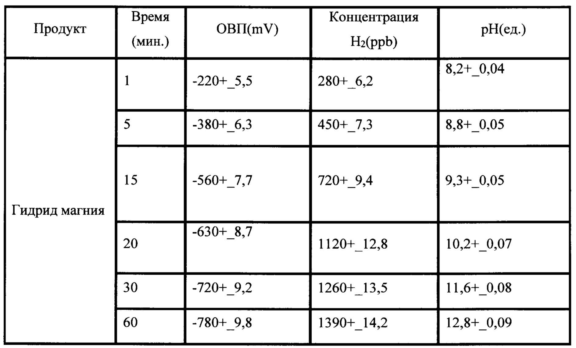 1. Композиция для насыщения продуктов водородом, содержащая магний в форме гидрида магния с химической формулой (MgH2) - ионный гидрид, состоящий из Mg2+ и Н, связующий компонент и по меньшей мере одну кислоту, при этом все компоненты выполнены измельченными и взяты в виде порошка, отличающаяся тем, что в качестве связующего компонента в композицию введен ингредиент, выбранный из группы растений, содержащих природный инулин. 2. Композиция по п. 1, отличающаяся тем, что в композицию введена смесь из группы пищевых кислот, а именно смесь лимонной и янтарной кислот, взятая в пределах 0,3-3,0 г/л продукта, но не более 12-15 мас.% с учетом количества введенного в композицию порошка гидрида магния. 3. Композиция по п. 1, отличающаяся тем, что в качестве растения, содержащего природный инулин, принят цикорий, а именно его подземная часть в виде высушенных, обжаренных и измельченных в порошок клубней. 4. Композиция по пп. 1, 3, отличающаяся тем, что частицы порошка клубней цикория взяты с калибром от 0,1 мм до 4 мм. 5. Композиция по пп. 1, 3, 4, отличающаяся тем, что для включения в композицию содержание инулина в высушенном клубне цикория принято в количестве не менее 16-80 мас.% в пересчете на сухое вещество. 6. Композиция по п. 1, отличающаяся тем, что в качестве растения, содержащего природный инулин, взят топинамбур, а именно его подземная часть в виде высушенных, обжаренных и измельченных в порошок клубней. 7. Композиция по пп. 1, 6, отличающаяся тем, что частицы порошка топинамбура взяты с калибром от 0,2 мм до 6 мм. 8. Композиция по пп. 1, 6, отличающаяся тем, что содержание инулина в высушенном клубне топинамбура принято в количестве не менее 16-35 мас.% в пересчете на сухое вещество. 9. Композиция по п. 1, отличающаяся тем, что композиция из измельченных компонентов представлена в форме сухой порошкообразной смеси с содержанием компонентов в процентном соотношении: гидрид магния 1-50 мас.%; смесь лимонной и янтарной кислот 20-35 мас.%; цикорий или топинамбур 10-20 мас.%. 10. Композиция по пп. 1, 3, 6, отличающаяся тем, что композиция из измельченных компонентов представлена в таблетированной форме, а именно в виде таблетки, или гранулы, или капсулы, или кубика, или шарика, или диска, и т.д. с содержанием компонентов в процентном соотношении: гидрид магния 1-50 мас.%; смесь лимонной и янтарной кислот 18-33 мас.%; цикорий или топинамбур 8-27 мас.%; натрия стеаритфумарат до 6 мас.%. 11. Композиция по пп. 1, 11, отличающаяся тем, что в форме сухой порошкообразной смеси и/или в таблетированной форме композиция сохраняется в закрытых контейнерах из фольги или пластика, предпочтительно в контейнерах из стекла. 12. Композиция по пп. 1, 10, отличающаяся тем, что сухая порошкообразная смесь вводится в контакт с готовым пищевым продуктом путем добавления в любую пищевую жидкость: негазированную воду или в готовые безалкогольные напитки, такие как чаи, или соки, или коктейли, или компоты, или кисели, или квасы, или нектары, или какао, или кофе, или лимонады, или овощные смеси, или фруктовые йогурты, или муссы, или морсы, или взвары и т.д. 13. Композиция по пп. 1, 11, отличающаяся тем, что для насыщения водородом сухих пищевых продуктов, в том числе сухих питательных смесей композиция вводится в контакт с сухим пищевым продуктом в процессе разведения продукта жидкостью - водой или иными безалкогольными жидкостями. 14. Композиция по пп. 1