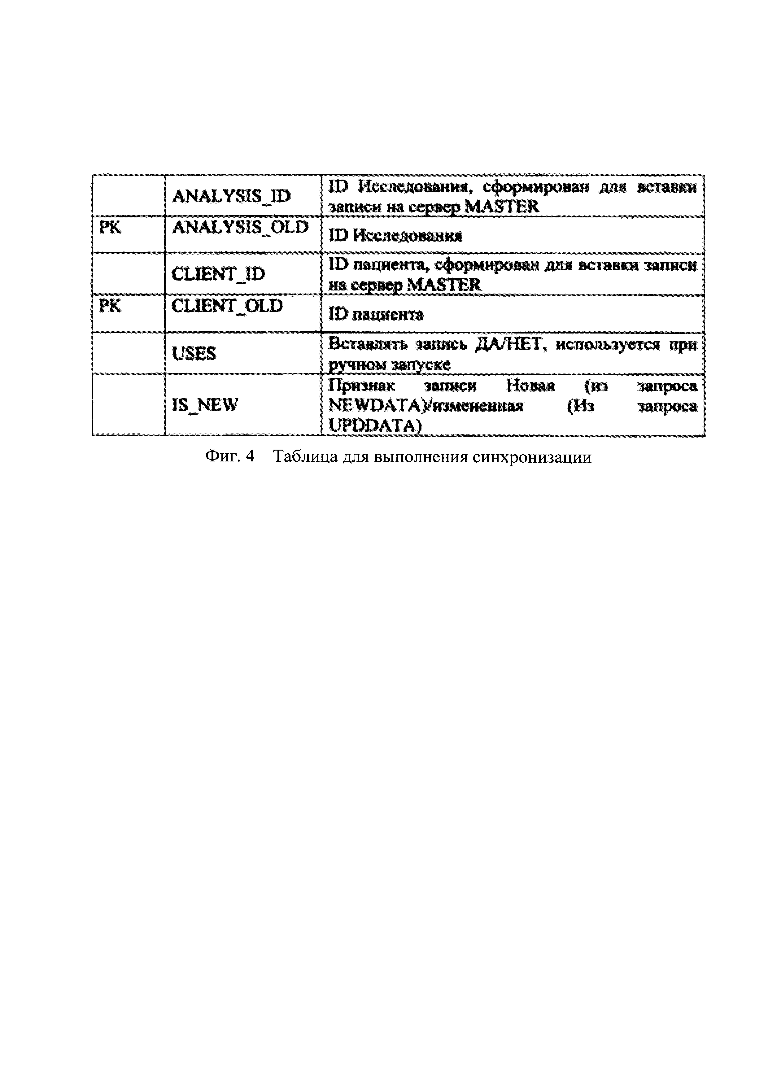 Целью заявленного технического решения является разработка системы, позволяющей значительно сократить объем передаваемых данных без утраты информативности, используемой при репликации информации в распределенных базах данных, в частности, применительно к двум компьютерам, в каждый из которых загружена одинаковая по структуре база данных с неизменной базой знаний и независимо изменяемой и дополняемой информацией в базе клиентов и исследований и используемой для периодической синхронизации базы данных в обоих компьютерах.