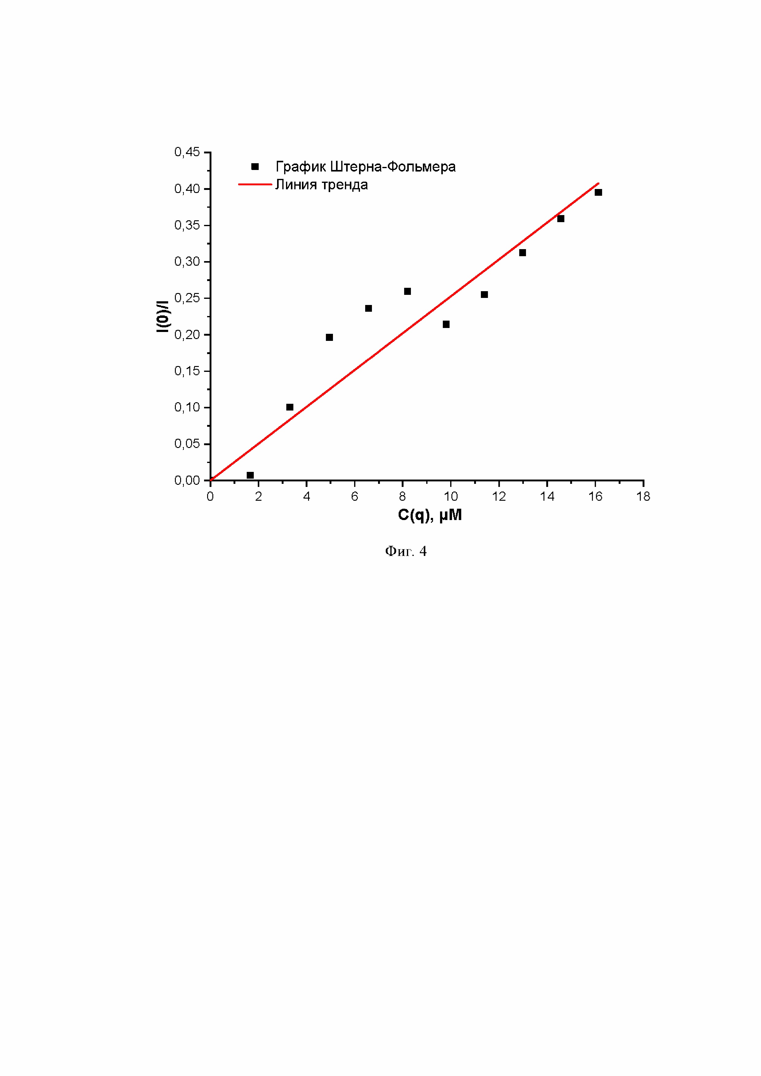 где I0, I – интенсивность флуоресценции до и после добавления нитроароматического соединения (quencher); Q – концентрация нитроароматического соединения, моль/л; Ksv– значение константы, (моль/л)-1.