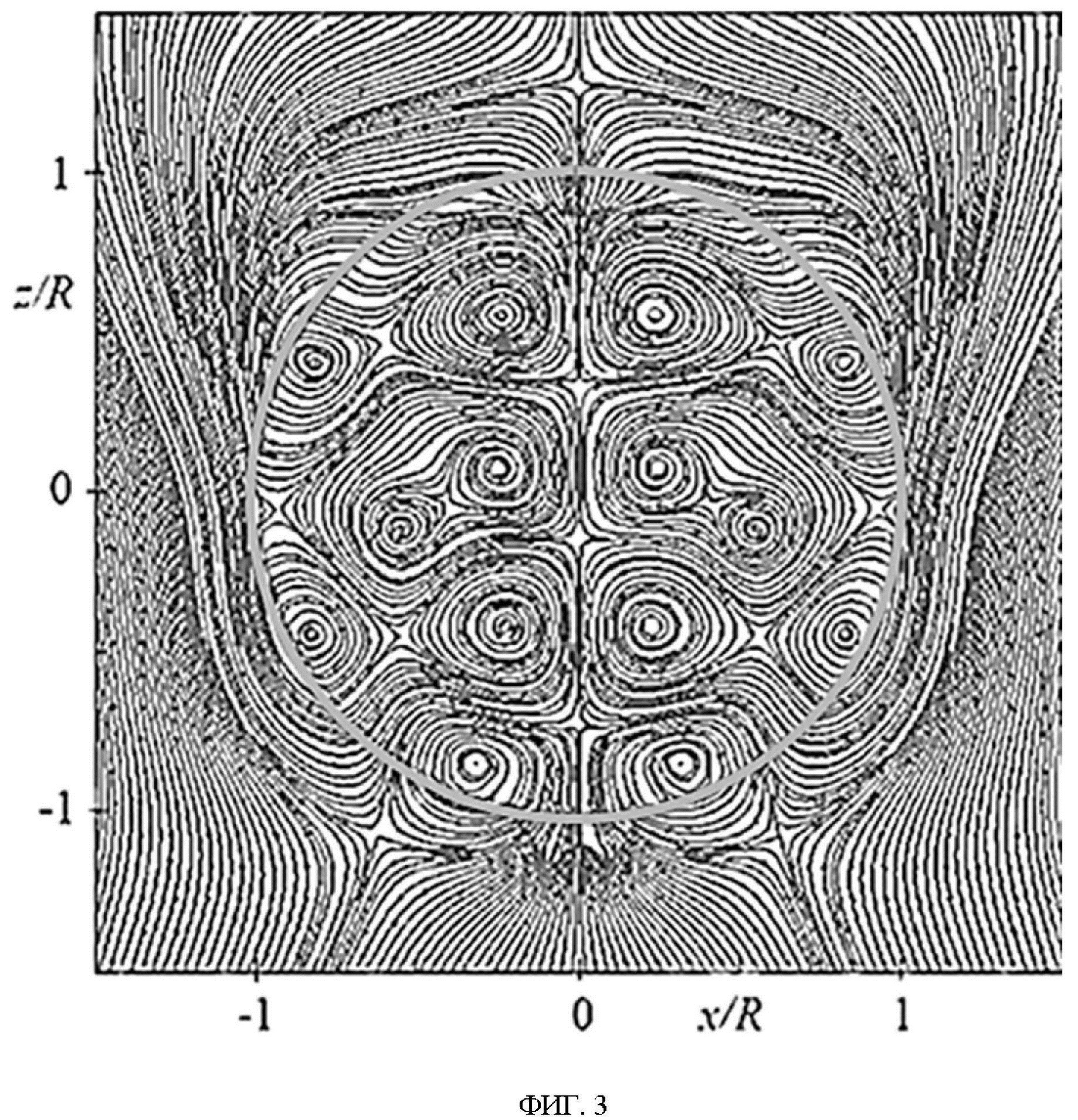 Изобретение относится к способам создания сильных магнитных полей и может быть применено в физическом эксперименте, в том числе для моделирования сверхсильных магнитных полей в космическом пространстве, моделирования астрофизических процессов в «лабораторных условиях» и т.д. Например, магнитные поля в нейтронных звездах достигают величины 1011 Тесла [Beskin, V. S., Balog, A., Falanga, M. & Treumann, R. A. Magnetic fields at largest universal strengths: overview. // Space Sci. Rev. 191, 1-12 (2015)]. Получение сверхсильных магнитных полей в лабораторных условиях является сложной и актуальной задачей [Kolm, U. & Freeman, A. Intense magnetic fields. // Sci. Am. 212, 66 (1965); Sakharov, A. D. Magnetoimplosive generators. // Phys. Uspekhi 9, 294-304 (1966); K. Coyne, Magnets from Mini to Mighty, // Magnet Lab U (2008); Лагутин А. С., Ожогин В. Л. Сильные импульсные магнитные поля в физическом эксперименте. М.: Энергоатомиздат, 1988. 192 с.]. Самые сильные непрерывные магнитные поля силой 45 Тл были созданы с помощью постоянного магнита внутри сверхпроводящего магнита. Магнитные поля выше этого уровня создавались только в импульсных режимах, когда сильные электрические токи передавались через соленоиды различной конструкции или когда магнитный поток внутри замкнутой проводящей катушки сжимался внешними силами. Для создания таких полей существуют различные методы. Например, известен способ передачи энергии индуктивной нагрузки от генератора ударной мощности и устройство для его осуществления [Патент №192922 РФ, Н03К 17/64, Бюл. №6, 02.03.1967.]. Оно состоит из генератора тока, индуктивной нагрузки - соленоида, блока накопительных конденсаторов и двух контактно-вентильных коммутаторов. Генератор тока через контакт одного коммутатора соединен параллельно с конденсаторной батареей, которая через контакт второго коммутатора также соединена параллельно с соленоидом. Также известен источник импульсного магнитного поля [Патент №2331979 РФ, Н03К 17/64, Бюл. №23, 20.08.2008.], который содержит источник питания, выключатель питания, распределитель тока, блок запуска генератора тока, накопительные конденсаторы, генераторы тока, полеобразующую систему, которая включает не менее двух соленоидов и выключатель управления. Блок запуска генераторов тока выполнен на твердотельном реле. В известных способах магнитное поле обеспечивают путем пропускания постоянного тока через обмотки катушек по проводам. Например, простое аксиально-симметричное тороидальное поле может быть создано током, протекающим по проводникам катушки, равномерно навитой на поверхность круглого тороида. Недостатком известных способов является создание недостаточно сильных магнитных полей и невозможность получения сильных магнитных полей в мезоразмерных диэлектрических частицах. Известны способы и устройства преобразования энергии пучка заряженных частиц (Патенты РФ на полезную модель №№ 15417, 84169; Патент РФ № 2508595, Способ преобразования и аккумулирования энергии с использованием пучка заряженных частиц и устройство для его осуществления; В.С. Никитин. Технологии будущего. Изд. «Техносфера», Москва, 2010, с.162-169) в которых осуществляется инжектирование ускоренных заряженных частиц в вакуумированный объем волновода с формированием в этом объеме замкнутого контура с током, создаваемым пучком частиц. Заряженные частицы создаются специальным ускорителем частиц. Известен способ генерации магнитного поля током заряженных частиц [Плетнев С. В. Магни