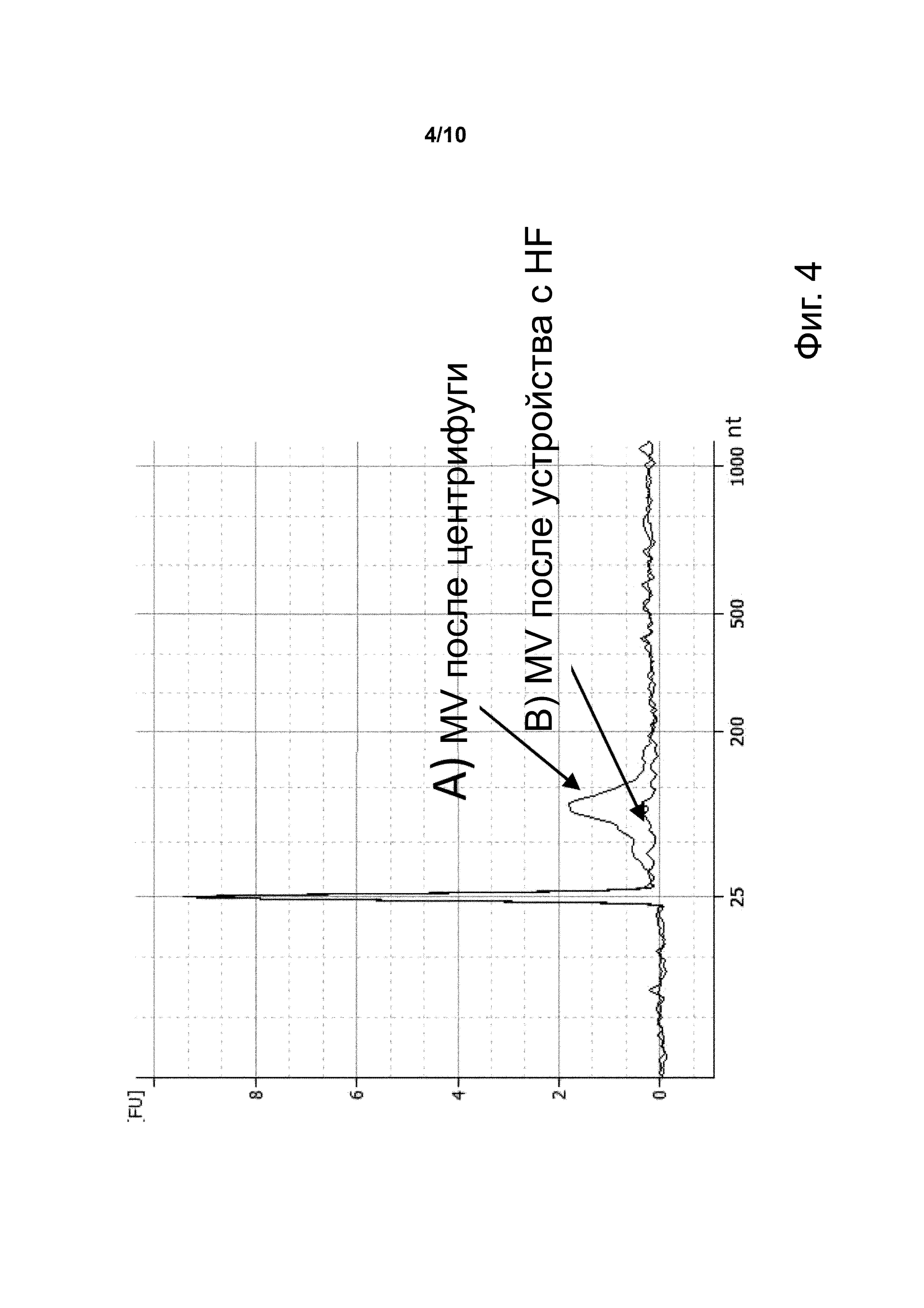 Настоящее изобретение относится к применению пористых волокон, имеющих пористость свыше 20 нм, в частности, полиэфирсульфоновых пористых волокон, для снижения в крови и производных крови концентрации произведенных из крови внеклеточных везикул, в частности, микровезикул, и экзосом и экзомеров, и к способам получения и анализа таких обедненных образцов. Предпосылки создания изобретения Внеклеточные везикулы представляют собой 30-нм – 2-мкм мембранные образования клеточного происхождения. Они включают апоптозные тельца (больше 1 мкм), онкосомы (больше 1 мкм), микровезикулы (200 нм – 1 мкм), экзосомы (30-120 нм) и экзомеры (примерно 35 мкм) (Van Der Pol et al., Zhang et al.). Пористые волокна (HF) являются классом полупроницаемых барьеров, которые применяются, в частности, в области диализа (Ishihara et al.). Их основной характеристикой является их пористость, т.е. средний диаметр пор и распределение пор. В области медицины их типично используют в качестве фильтров при гемодиализе, гемофильтрации и плазмаферезе. Пористые волокна получают с использованием различных материалов, включая целлюлозу, эфир целлюлозы, полисульфон, полиэфирсульфон (PES), полиметилметакрилат (ПММА), полиамид, азотсодержащие полимеры, стекло, диоксид кремния, ацетат целлюлозы, поливинилиденфторид (ПВДФ), поливинилхлорид (ПВХ), политетрафторэтилен (ПТФЭ), сложный полиэфир, керамику, полиимид, полиэфиримид, полиэтиленимин-функционализированный полиамидимид (торлон™), поливиниловый спирт (ПВС). (Seo-Hyun Pak et al.; Xing Yanga et al., Hailin Zhu et. аl.; Amir Dashti et al.; Ze-Lin Qiu et al.; Li FS et al.; Labreche Y et al.; Zhang Y et al.; Higa M. et al., Mock 2007). В технике имеется множество примеров того, как можно получить кровь и производные крови для анализа. Получение производных крови обычно страдает от активации тромбоцитов и белых клеток крови и гемолиза. Активации тромбоцитов можно достичь, например, просто встряхивая пробирку, содержащую образец крови (Black et al.). Также присутствие внеклеточных везикул гемопоэтического происхождения является известным запутывающим фактором в случае выделения и молекулярного анализа внеклеточных везикул паренхимного и стромального происхождения, влияющих на отношение сигнал-шум при анализе и на воспроизводимость результатов. Уровень техники Пористые волокна описаны на известном уровне техники в связи с их способностью удерживать везикулы или не допускать их прохождения из-за своей пористости (WO2007127848, WO2001082958), или потому, что пористые волокна химически модифицированы для того, чтобы связывать везикулы (WO2015130956). Краткое описание фигур Фиг. 1. Число наночастиц в плазме, полученной центрифугированием, фильтрацией через устройство с HF с пористостью 200 нм или фильтрацией через устройство с HF с пористостью 20 нм. Фиг. 2. Количества экзосом из крови, измеренные в образцах плазмы, полученных фильтрацией через устройство с HF с пористостью 200 нм, или с помощью числа копий (копии/мл) аллельного гена BRAF в плазме трех пациентов с метастастатической меланомой, полученной центрифугированием. Фиг. 3. Количества экзосом из крови, измеренные в образцах плазмы, полученных фильтрацией через целлюлозный не-HF фильтр с пористостью 200 нм. Фиг. 4. Электрофореграмма малых РНК микровезикул, присутствующих в образцах плазмы, полученных фильтрацией через устройство с HF с пористостью 200 нм, или центрифугированием. Фиг. 5. Уровни мутации BRAFV600E (A) или 