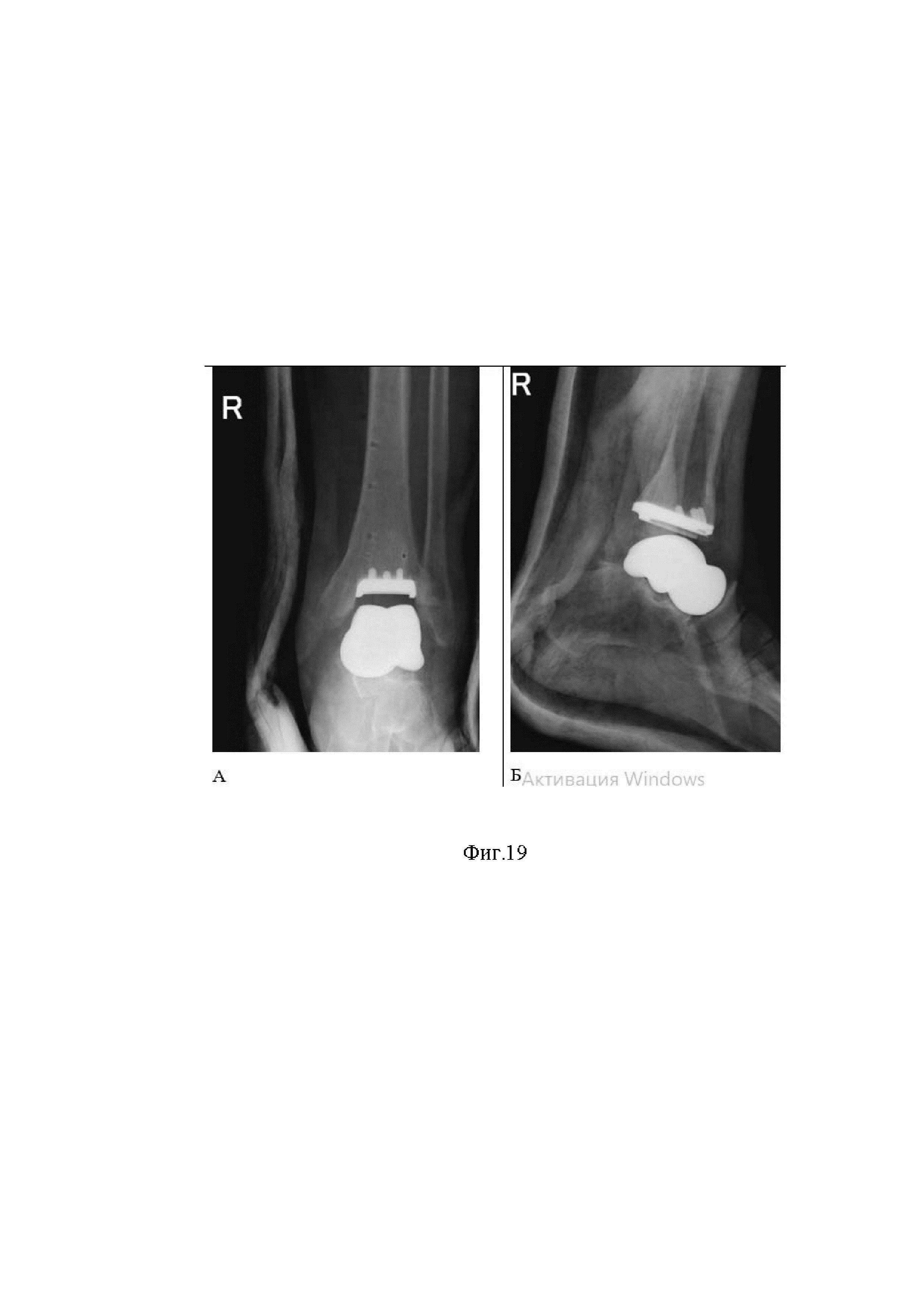 Изобретение относится к медицине, а именно к травматологии и ортопедии, хирургии стопы, и может быть использовано при лечении тотальных и субтотальных дефектах костного вещества таранной кости различного генеза. Изобретение может быть применимо для лечения пациентов с исходом некроза таранной кости различной этиологии, посттравматического остеоартроза голеностопного сустава с формированием эквино-варо-приведенной деформации стопы за счет эндопротезирования голеностопного, таранно-ладьевидного, подтаранного суставов оригинальным эндопротезом таранной кости, воспроизводящим нормальную анатомию таранной кости и конфигурацию сочленяющейся суставных поверхностей таранно-ладьевидного, подтаранного суставов, поверхностей между фиксированным полиэтиленовым вкладышем и тибиальным компонентом эндопротеза голеностопного сустава. Акутальность Посттравматический асептический, аваскулярный, неясного генеза некроз таранной кости является тяжелым инвалидизирующим заболеванием, приводящим к формированию кист таранной кости, варусной или вальгусной деформации стопы, остеоартрозу голеностопного, подтаранного и Шопарова суставов последних стадий, приводящей к быстрой инвалидизации пациентов. Диагностика некроза таранной кости различной этиологии на ранних стадиях затруднена, так как, пациенты обращаются за помощью на поздних стадиях заболевания, когда консервативное лечение неэффективно и сформировалась грубая деформация стопы и голеностопного сустава. На сегодняшний день общепринятым является хирургическое лечение. В исторической ретроспективе основным методом лечения некроза таранной кости различной этиологии считалась астрагалэктомия, рекомендованная в случаях самых тяжелых поражений таранной кости, таких как фрагментация, коллапс, рассасывание, невозможность сохранения суставов, окружающих таранную кость [1]. Функциональные исходы этой операции не соответствуют современному уровню ожиданий пациентов и требований ортопедов к исходам оперативного лечения. В современное время хирургическое лечение пациентов с некрозом таранной кости различной этиологии и его последствиями обычно представлено большеберцово-таранно-пяточным артродезом, который дополняется различными реконструктивными вмешательствами по показаниям. Такой вид хирургического лечения, несмотря на свои достоинства, обладает рядом существенных недостатков, таких как высокая травматичность, необратимая потеря движений в функционально значимых суставах, высокий риск несращений, большая частота остаточных деформаций, необходимость длительных сроков иммобилизации конечности [2,3,4,5]. В последнее десятилетие отмечается повышенный интерес к данной проблематике как в англоязычной, так и в отечественной литературе, что проявляется большим количеством публикаций, клиническими случаями [6,7,8,9,10,11]. При анализе современной литературы, отмечается потребность в переходе от артродеза к более современным, функциональным, щадящим методам лечения. Возникает закономерный вопрос: каким образом преодолеть существующие недостатки и улучшить результаты лечения пациентов с некрозом таранной кости различной этиологии и его последствиями. Потенциальным решением данной проблемы является индивидуальное эндопротезирование таранной кости в к