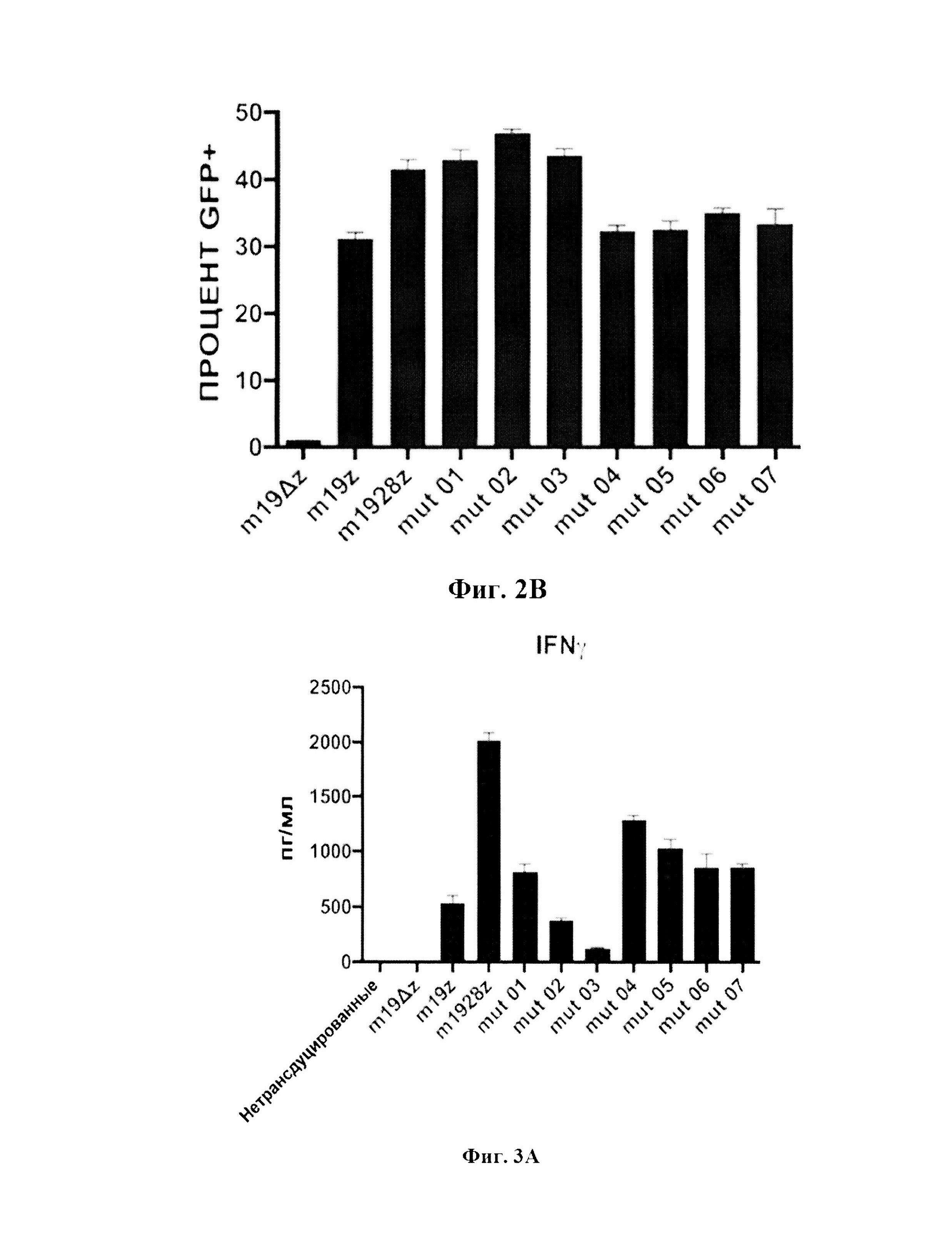 ПЕРЕКРЕСТНАЯ ССЫЛКА НА РОДСТВЕННЫЕ ЗАЯВКИ Данной заявкой испрашивается приоритет относительно предварительной заявки на патент США №62/529919, поданной 7 июля 2017 года и полностью включенной в данный документ посредством ссылки. ПЕРЕЧЕНЬ ПОСЛЕДОВАТЕЛЬНОСТЕЙ Эта заявка содержит перечень последовательностей, поданных в электронной форме как файл ASCII.txt, названный «320803_2160_Sequence_Listing_ST25», который создан 7 июля 2018 года. Содержание перечня последовательностей полностью включено в данный документ. УРОВЕНЬ ТЕХНИКИ ИЗОБРЕТЕНИЯ Хирургия, лучевая терапия и химиотерапия являются общепринятыми стандартными подходами при лечении рака, включая лейкоз, солидные опухоли и метастатические поражения. Иммунотерапия (иногда называемая биотерапией, или терапией модификаторами биологического отклика), при которой задействована иммунная система организма, позволяет непосредственно или косвенно ограничить или излечить опухоль, в течение многих лет исследовалась как дополнение к традиционной терапии рака. Предполагается, что иммунная система человека представляет неиспользованный ресурс для терапии рака и что при надлежащем применении компонентов иммунной системы могут быть разработаны эффективные терапевтические агенты. Достигнут значительный успех в противоопухолевой терапии Т-клетками с химерным антигенным рецептором (CAR), который является одноцепочечным вариабельным фрагментом (scFv), который получен из антитела, сплавленного с сигнальными доменами Т-клеточного рецептора (TCR) (Davila, M.L., et al., Oncoimmunology, 2012. 1 (9): 1577-1583). Внутриклеточный домен первого поколения CAR включает только CD3ζ, в то время как CAR второго поколения также включают костимуляторные домены, такие как CD28 или 41ВВ. Эти домены CAR второго поколения продемонстрировали высокую эффективность относительно цитотоксической активности у мышей, что стало основой для клинической оценки Т-клеточной терапии CAR у пациентов. Потенциал CAR таргетных CD19 Т-клеток был подтвержден отчетами о полной ремиссии у 90% пациентов с острым В-клеточным лимфобластным лейкозом (B-ALL) (Davila, M.L., et al., Sci Transl Med, 2014. 6(224):224ra25; Maude, S.L, et. al., N Engl J Med, 2014. 371(16):1507-17). Однако слабая персистенция CAR Т-клетками и чрезмерная активация Т-клеток способствуют рецидивам и тяжелой токсичности, соответственно, существует критическая необходимость в понимании биологии CAR Т-клеток (Gangadhar, Т.С.and R.H. Vonderheide, Nat Rev Clin Oncol, 2014. 11(2):91-9). Кроме того, рецидивы и токсичность сообщали для всех поколений CAR, предполагается, что дополнение CAR костимуляторными доменами повысит эффективность, но в ущерб биологическим осложнениям. РАСКРЫТИЕ ИЗОБРЕТЕНИЯ Как описано в данном документе, CAR Т-клетки с костимуляторным доменом CD28 участвуют в тонической передаче сигналов низкого уровня и в «истощении» фенотипа злокачественных клеток, а мутирование определенных субдоменов CD28, не устраняет активацию сигнальных путей CAR или продукцию цитокина. Поэтому, усовершенствование функции CAR-T-клеток второго поколения может быть достигнуто, модулированием костимуляции CD28. В данном документе описаны полипептиды химерного антигенного рецептора (CAR), которые могут использоваться с адоптивным переносом клетки к мишеням для уничтожения опухолевых клеток. Описанные в данном документе CAR содержат кости мул яторный сигнальный домен, который включает мутированную форму цитоплазмат