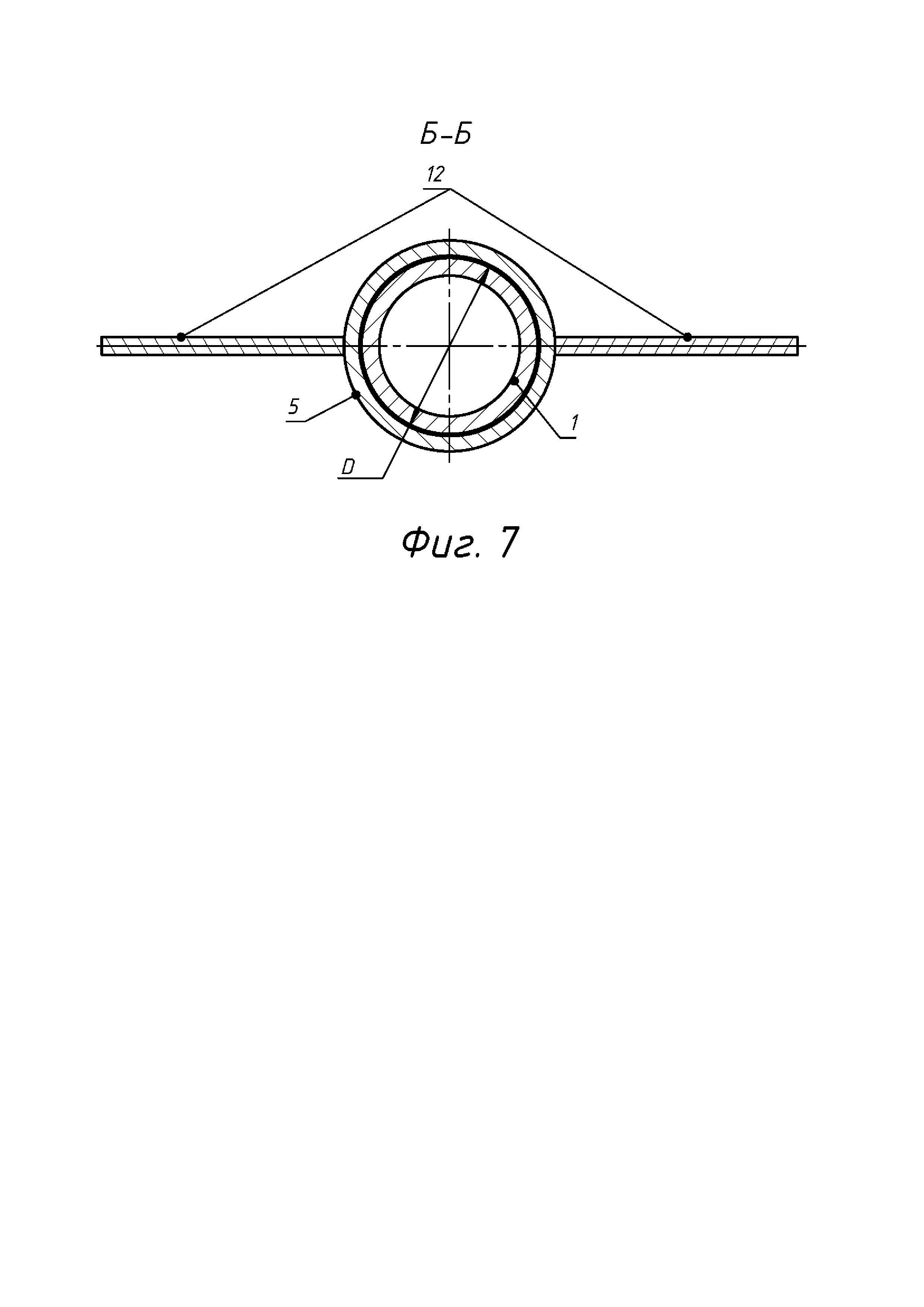 фиг. 7 - вид в поперечном разрезе элемента вертикальной устойчивости винтовой сваи.