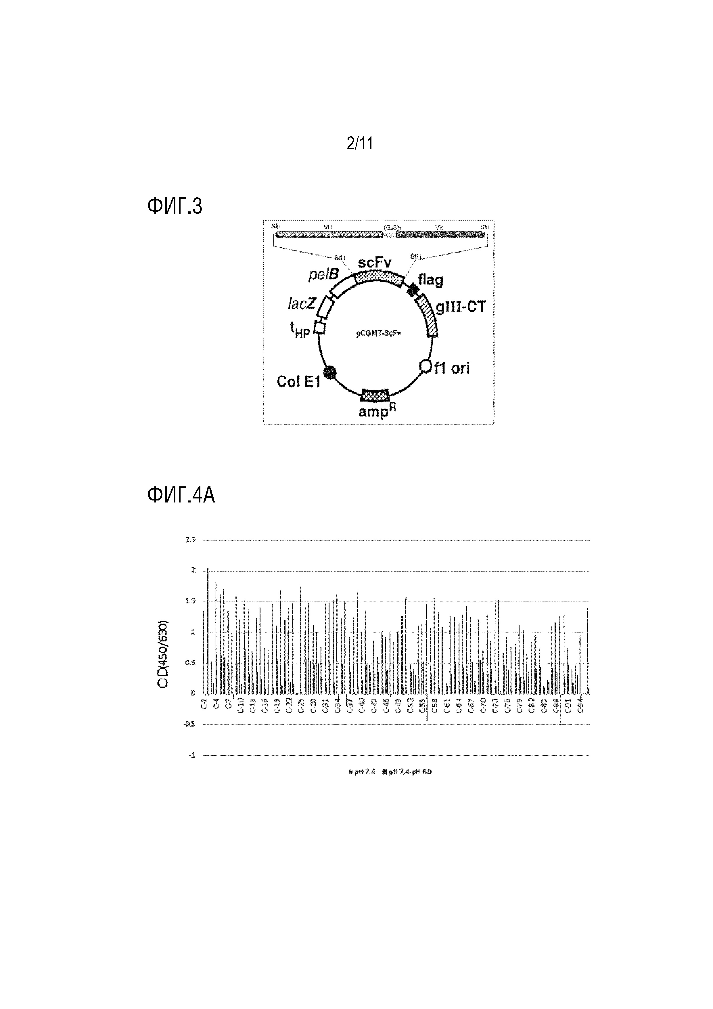 Праймеры для мутации pH-зависимых scFv-антител, полученных из антитела 162Название праймера Последовательность праймера VH-F SEQ ID NO: 44 HCDR1-R SEQ ID NO: 45 HCDR2-F SEQ ID NO: 46 HCDR3-R SEQ ID NO: 47 VH-R SEQ ID NO: 48 VK-F SEQ ID NO: 49 KCDR1-R SEQ ID NO: 50 KCDR2-F SEQ ID NO: 51 KCDR3-R SEQ ID NO: 52 VK-R SEQ ID NO: 53 Таблица 3