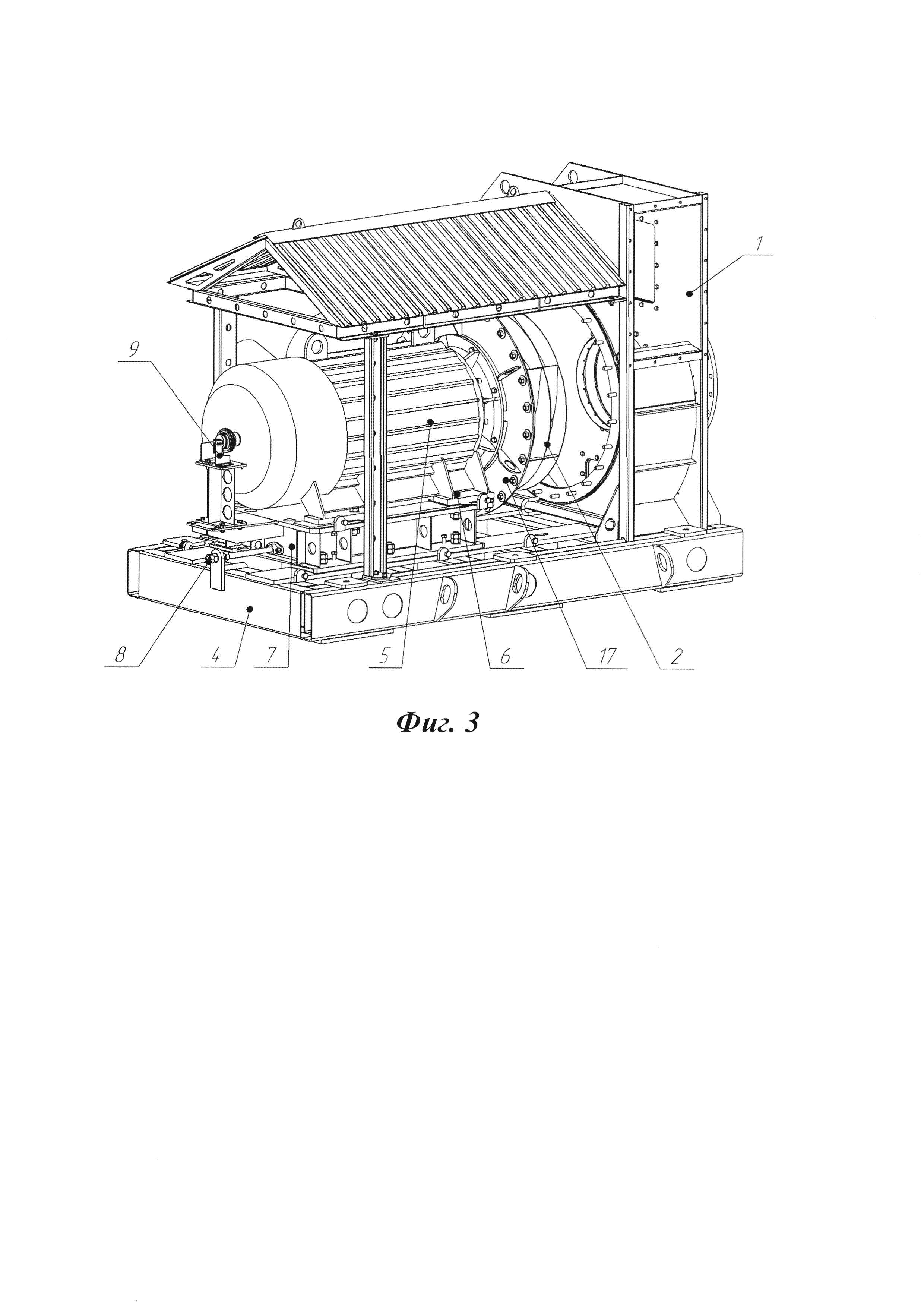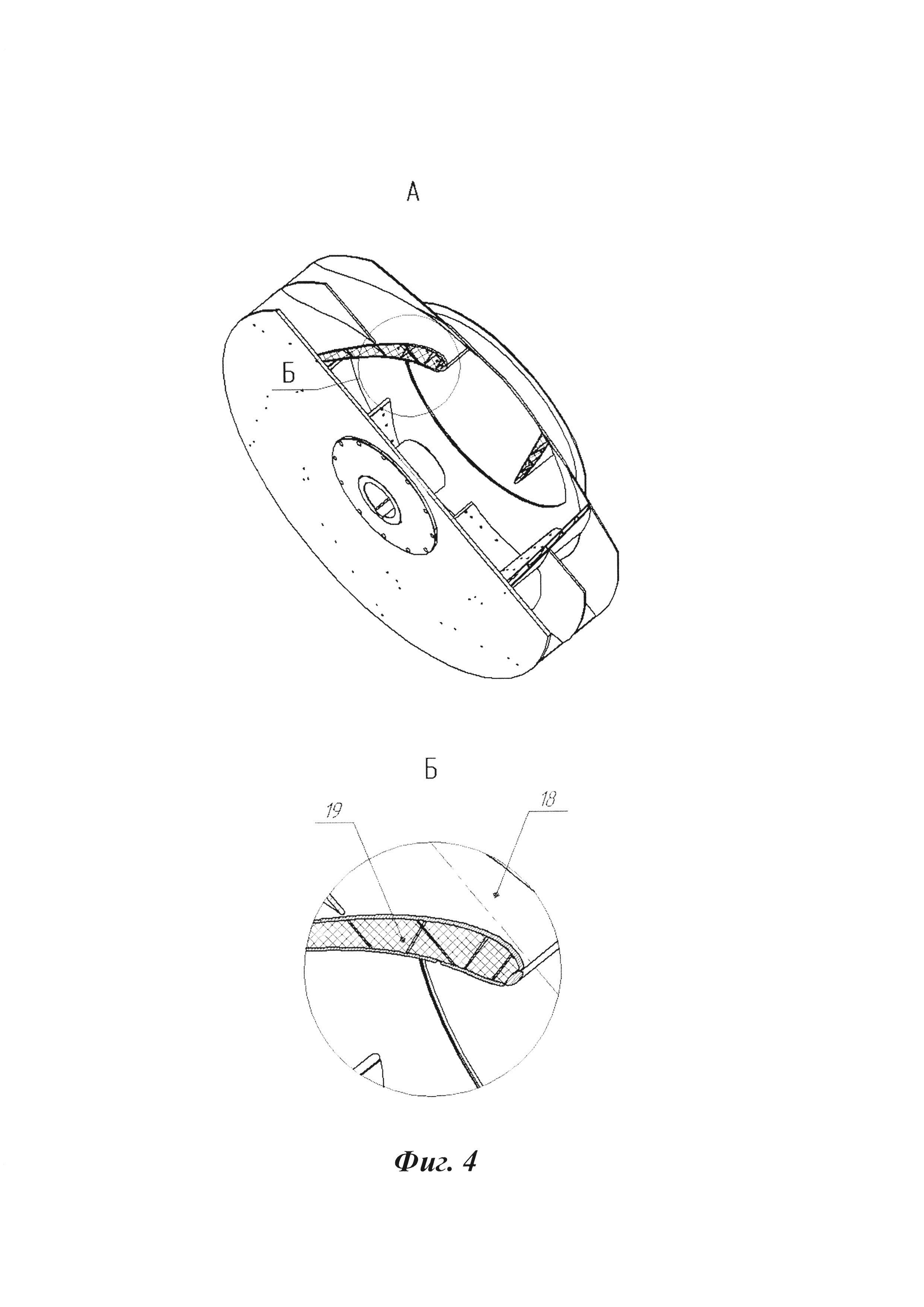 Изобретение относится к центробежным вентиляторам большой быстроходности, с большими размерами рабочего колеса, имеющим взрывобезопасное исполнение, использующимся в составе установок, предназначенных для откачивания метановоздушной смеси из угольных шахт. Технической задачей изобретения является создание вентилятора взрывозащищенного исполнения с высоконапорной характеристикой для использования в составе установок по откачиванию метановоздушных смесей из угольных шахт, имеющего облегченную конструкцию, имеющего низкую трудоемкость в техническом обслуживании и ремонте. Указанная цель достигается тем, что при тождественных объемно-напорных технологических характеристиках, одинаковости электроприводов и наличии искробезопасных уплотнений вентилятор ВЦГ-10КМ имеет свои конструктивные особенности: рабочее колесо выполнено облегченным из высокопрочной легированной стали с заполнением полостей лопаток жестким двухкомпонентным пенополиуретаном высокой плотности с закрытой ячеистой структурой, в результате чего масса рабочего колеса была снижена на 60-65% по сравнению с исходной конструкцией, что позволило исключить из конструкции вентилятора подшипниковые опоры и установить рабочее колесо консольно непосредственно на вал электродвигателя и сделать спиральный корпус неразборным, к электродвигателю прикручен фланец, являющийся частью спирального корпуса, электродвигатель установлен на подрамник, выполненный подвижным для извлечения рабочего колеса из спирального корпуса. Также на втором конце вала электродвигателя было закреплено токосъемное устройство для снятия статического электричества. Представленная конструкция имеет меньшие габаритные размеры и сниженную металлоемкость на 10% по сравнению с исходной вариантом, при этом имея большую жесткость. Время проведения и безопасность ремонтных работ, при такой конструкции вентилятора, положительно изменены по сравнению с базовым вариантом. 9 ил.