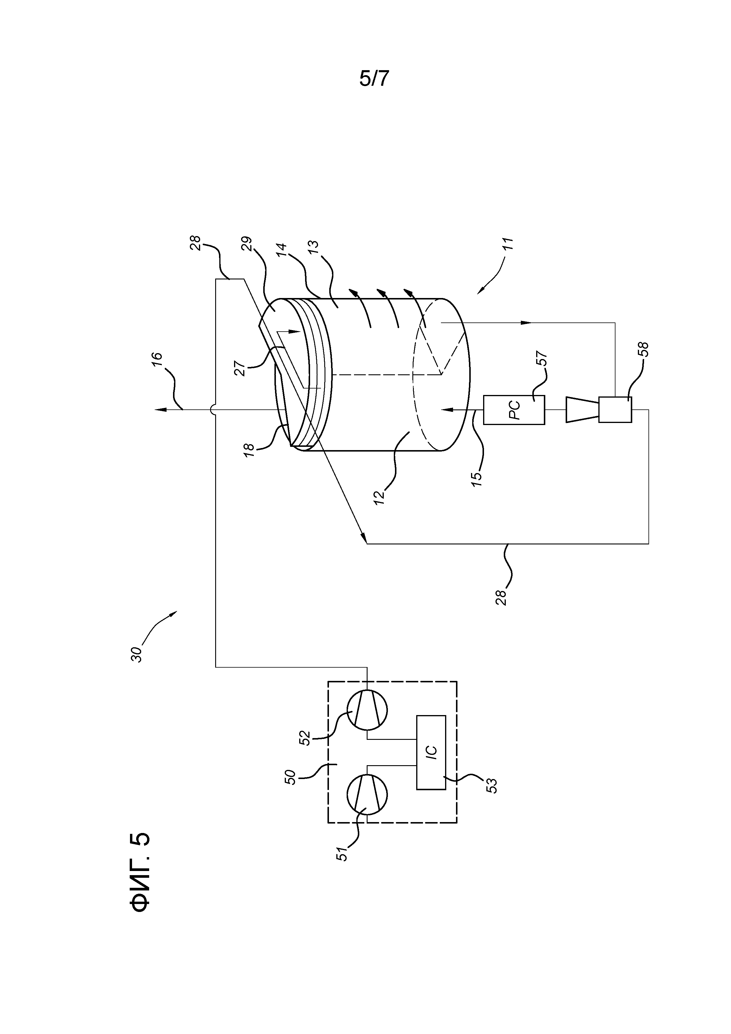 1. Сушилка (10; 20; 30; 40) для сжатого газа, содержащая сосуд (11) высокого давления, содержащий вращающуюся симметричную часть, включающую в себя зону (12) сушки и зону (13) регенерации; барабан (14), установленный во вращающейся симметричной части, снабженный регенерируемым сушильным агентом; приводное средство для вращения упомянутого барабана относительно вращающейся симметричной части или наоборот, так что сушильный агент последовательно перемещается через зону сушки и зону регенерации; впуск (15) для подачи сжатого газа, подлежащего осушке; выпуск (16) для выпуска осушенного сжатого газа; первую соединительную линию для отвода частичного потока осушенного сжатого газа и направления частичного потока в зону регенерации, причем первая соединительная линия снабжена нагревательным устройством для нагрева частичного потока, отведенного для регенерации; причем первая соединительная линия (27) и нагревательное устройство (29) расположены в сосуде высокого давления, отличающаяся тем, что выпускная сторона зоны сушки разделена с помощью средства (18) для разделения потока осушенного газа в положении, в котором он удаляется из барабана (14), на первую зону (31) выпуска, с которой соединен выпуск для осушенного сжатого газа, и вторую зону (32) выпуска, с которой соединена первая соединительная линия; и нагревательным устройством является теплообменник (29), предусмотренный для нагрева частичного потока, отведенного для регенерации, сжатым газом, подлежащим осушке, подаваемым в сушилку, причем теплообменник образует средство для разделения потока осушенного газа в положении, в котором он удаляется из барабана (14). 2. Сушилка по п. 1, отличающаяся тем, что впуск (15) для подачи сжатого газа, подлежащего осушке, в сушилку расположен на уровне теплообменника (29), и в сосуде высокого давления расположена вторая соединительная линия (38) для подачи сжатого газа, подлежащего осушке, из теплообменника к впускной стороне зоны сушки. 3. Сушилка по п. 2, отличающаяся тем, что во второй соединительной линии содержится эжектор (58) Вентури для объединения частичного потока, используемого для регенерации, с потоком сжатого газа, подлежащего осушке. 4. Сушилка по п. 3, отличающаяся тем, что эжектор (58) Вентури имеет регулируемое отверстие и сушилка включает в себя привод для управления регулируемым отверстием. 5. Сушилка по одному из предыдущих пунктов, отличающаяся тем, что сушилка содержит охлаждающий элемент для охлаждения подаваемого сжатого газа, подлежащего осушке, причем охлаждающий элемент расположен в сосуде высокого давления на впускной стороне зоны сушки. 6. Сушилка по одному из предыдущих пунктов, отличающаяся тем, что первая зона выпуска, если смотреть от направления вращения барабана, расположена сзади второй зоны выпуска. 7. Сушилка по одному из предыдущих пунктов, отличающаяся тем, что первая зона выпуска, если смотреть от направления вращения барабана, расположена рядом со второй зоной выпуска. 8. Сушилка по одному из предыдущих пунктов, отличающаяся тем, что вращающаяся симметричная часть дополнительно содержит зону (19) охлаждения для охлаждения барабана, причем зона охлаждения, если смотреть в направлении вращения барабана, расположена сзади зоны (13) регенерации и спереди зоны (12) сушки. 9. Сушилка по одному из предыдущих пунктов, отличающаяся тем, что с