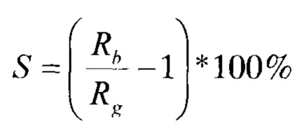 - в случае, если в тестовом газе сопротивление уменьшается по отношению к сопротивлению в опорной атмосфере.