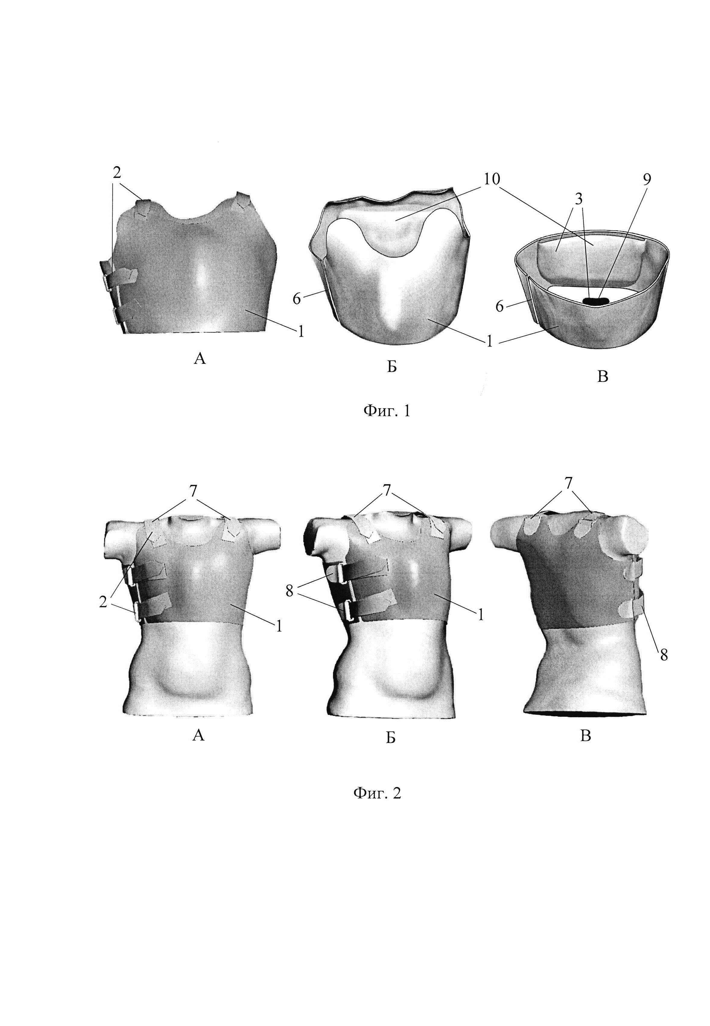 Изобретение относится к медицинской технике для обеспечения специалистов в области детской ортопедии и травматологии, детской хирургии, педиатрии. Изобретение предназначено для нехирургического исправления формы грудной клетки, а именно килевидной деформация грудной клетки (далее КДГК) и сопутствующей деформации грудной клетки и/или позвоночника. Устройство может использоваться для лечения пациентов в возрасте от 3-х до 16 лет с КДГК с симметричной и асимметричной формами, а также предупреждения прогрессирования КДГК, сопутствующей деформации грудной клетки и/или позвоночника у пациентов этой возрастной категории. Изобретение может использоваться самостоятельно или в составе комплексного восстановительного лечения. Уровень техники. Килевидная деформация грудной клетки (pectus carinatum), представляет собой порок развития, характеризующимся выступанием вперед грудины и ребер, а также нарушениями взаимоотношений в грудино-реберном комплексе. Килевидная деформация грудной клетки является второй по частоте после воронкообразной деформации и первой по многообразию проявлений. Встречается у 0,3-1,7% детей в зависимости от региона и имеет склонность к прогрессированию в периоды роста ребенка [1]. Классификация КДГК включает различные многообразные формы деформаций, отличающиеся уровнем расположения, симметрией/асимметрией, степенью вовлеченности смежных анатомических структур, что требует сугубо индивидуального похода коррекции [2]. Предложено более 30 различных способов хирургического вмешательства для коррекции КДГК [3]. Предлагаемые методы лечения достаточно травматичны и не всегда обеспечивают удовлетворение от выполненной коррекции КДГК. Для нехирургического лечения пациентов с КДГК предложено множество устройств. Предлагаемые способы преимущественно предназначены для дозированного давления на килевидно-деформированную грудную клетку в переднезаднем направлении. Основное предназначение этих изобретений заключается в создании и удержании давления на вершину килевидной деформации. При регулярном длительном давлении на выступающий участок грудной клетки происходит его вдавливание в направлении вектора оказываемого воздействия и удержание ребер и грудины в этом положении и, как следствие, последующая коррекция КДГК. Устройство выдерживают на грудной клетке необходимый интервал времени с учетом показаний и выбранной врачебной тактики, затем постепенно отменяют использование. Применение устройства повторяют в зависимости от показаний и выбранной тактики лечения. Традиционно неотъемлемыми конструктивными элементами таких устройств является жесткий каркас, повторяющий форму грудной клетки, расположенными на этом каркасе регулировочных элементов для регулировки положения устройства и элементов давления на КДГК. Одно из таких устройств, предложенное Василевичем С.В. и соавторами содержит задний, грудной и тазовое жесткие каркасы, соединенных между собой и повторяющих контуры туловища человека, при этом задний каркас расположен вдоль спины, а грудной и тазовый расположены спереди на уровне таза и грудной клетки, отличающийся тем, что задний каркас имеет один или более горизонтальных участков высотой не менее 3 см с центральным углом в горизонтальном сечении более 180°, а площадь поверхности грудн