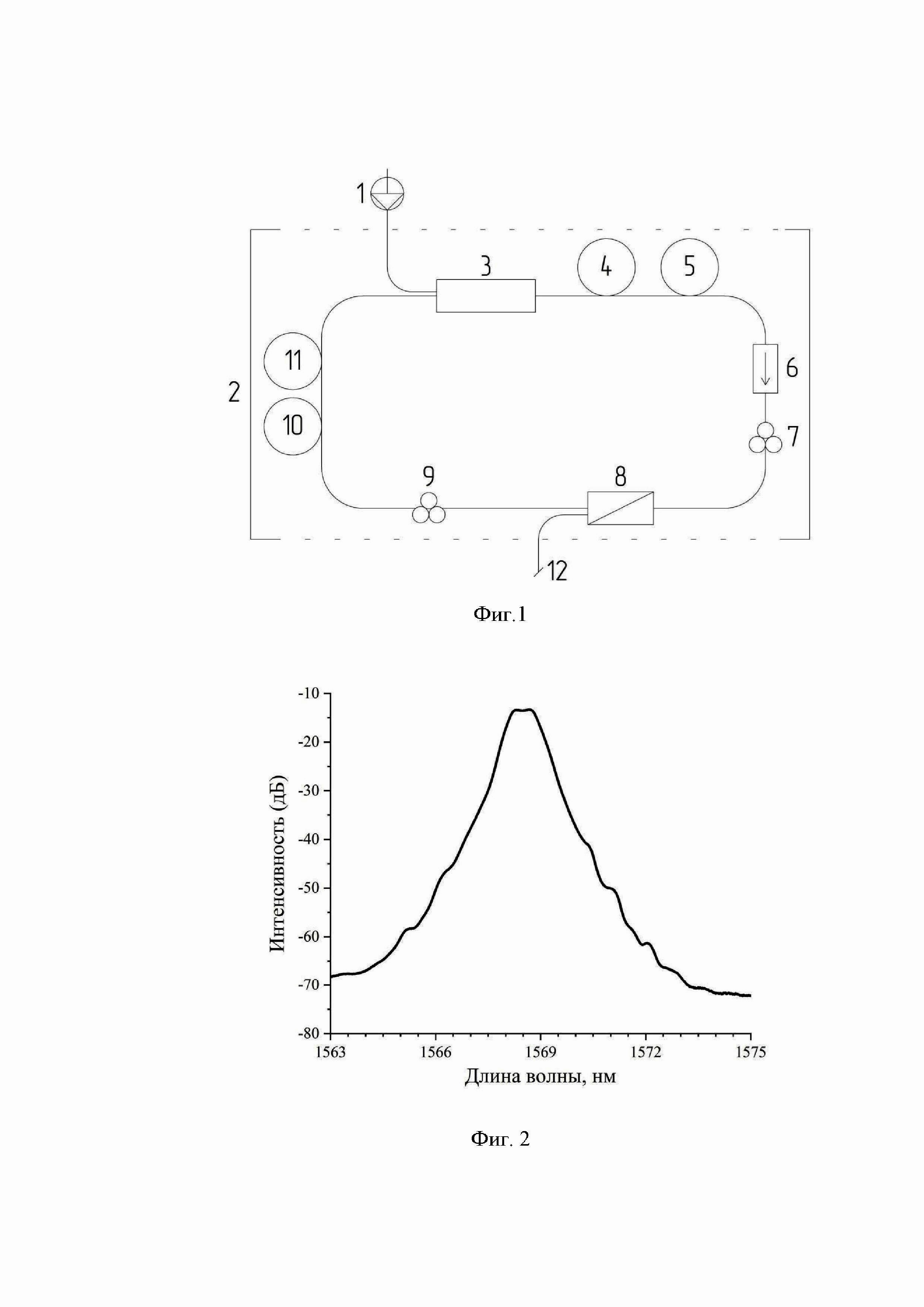 Изобретение относится к области волоконных лазеров и в частности к реализации режима пассивной синхронизации мод на основе нелинейного вращения плоскости поляризации (НВПП) в волоконном лазере. Этот режим позволяет лазеру генерировать ультракороткие импульсы с высокой стабильностью, высоким качеством луча, высокой энергией и при этом имеет большую прикладную ценность. Волоконные лазерные источники нашли свое широкое применение благодаря таким свойствам как компактность, низкая стоимость и экологическая безопасность. С развитием технологий передачи информации возрастает потребность в создании высококачественных лазерных источников, излучающих в области 3 окна прозрачности. Импульсный режим в волоконных лазерах может быть реализован с помощью пассивной синхронизации мод. Она может быть реализована методом нелинейного вращения плоскости поляризации, петлевого зеркала с нелинейный усилением, которые генерируют импульсы за счет баланса нелинейности и дисперсии. Также могут быть использованы насыщающиеся поглотители на основе полупроводниковых (п/п) элементов SESAM и на основе различных наноматериалов. Волоконный лазерный источник, реализованный на основе НВПП, имеет преимущества простой структуры и низкой стоимости. Техника НВПП может быть использована для генерации солитонного режима, а волоконный лазер с пассивной синхронизацией мод, с легирующим эрбиевым (Er) волокном, может быть использован для вывода солитонного импульса с гармонической синхронизацией мод в спектральной области 1500 – 1600 нм. В таких схемах можно реализовать различные типы ультракоротких и стабильных импульсов, которые находят свое применение в высокоскоростной оптической связи, лазерной микрообработке, исследованиях нелинейной оптики. Солитоны это устойчивые, локализованные, частицеподобные физические структуры, которые формируются в результате нелинейного взаимодействия распределенных волн (физических полей). Они имеют три основных состояния: стационарное, пульсирующие и хаотические. В зависимости от параметров системы солитон может переходить из одного состояния в другое. Численный метод, основанный на кубическом уравнении Гинзбурга-Ландау со слагаемым пятого порядка (CQGLE), дает четкую физическую картину для понимания влияния параметров лазера на динамику импульса. N. Akhmediev и J. M. Soto-Crespo точно разделили области параметров устойчивого солитона и солитона различных пульсирующих состояний и определили динамику солитона от устойчивого состояния к хаосу через бифуркацию энергии с удвоением периода при конкретных параметрах CQGLE. Изменение любого параметра в CQGLE может привести к переходу из стационарного состояния в пульсирующее и затем в хаотическое. Например, при изменении параметра дисперсии D в сторону увеличения, импульс сначала переходит в состояние однопериодной пульсации, затем за счет бифуркации удвоения периода с ростом D возникают многопериодные пульсации, в конечном итоге переходящие в хаос. Наиболее близким к предлагаемому изобретению является многофункциональный волоконный лазерный источник шумоподобных импульсов состоящий из задающего волоконного эрбиевого лазерного источника шумоподобных импульсов, волоконного усилителя на встречной накачке и куска нелинейного оптического волокна на кварцевой основе. 