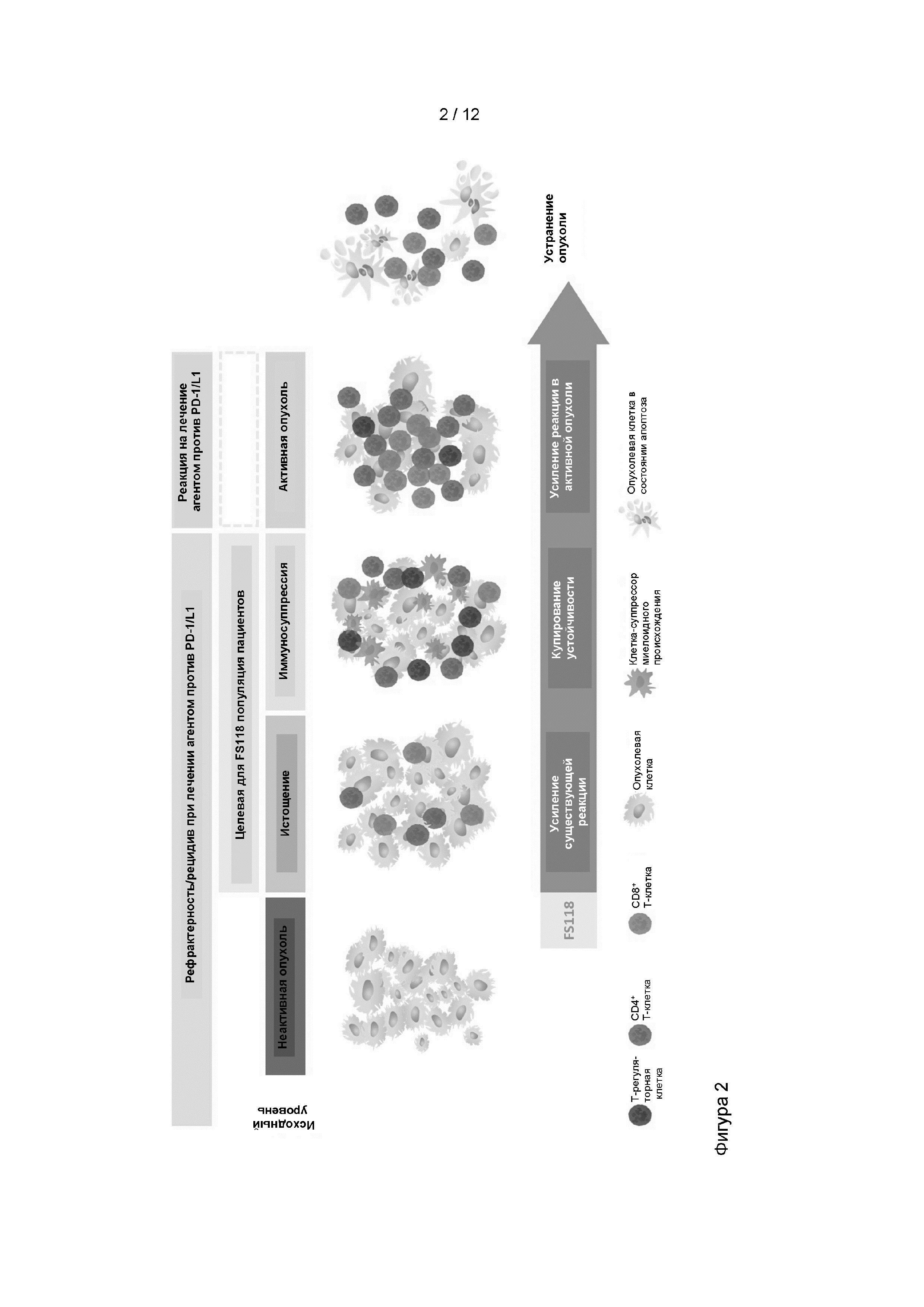 Общий sPD-L1 в плазме не включали в ФК-модель, хотя имеются данные, полученные у NHP, которые позволяют предположить, что он может быть хорошим биомаркером вовлечения мишени, и его будут измерять в исследовании FIH. Модель сингенной опухоли мыши также указывает, что полная суппрессия PD-L1 в течение каждого цикла лечения может не требоваться. У NHP концентрация FS118 в плазме ≥10 мкг/мл была ассоциирована с поддержанием захвата PD-L1 (и, как следствие, с супрессией PD-L1), и клиническое исследование FIH было разработано для изучения как максимальной супрессии PD-L1 в течение ограниченного периода времени (Смакс≥10 мкг/мл), так и непрерывной супрессии PD-L1 в течение каждого цикла введения (Смин≥10 мкг/мл).