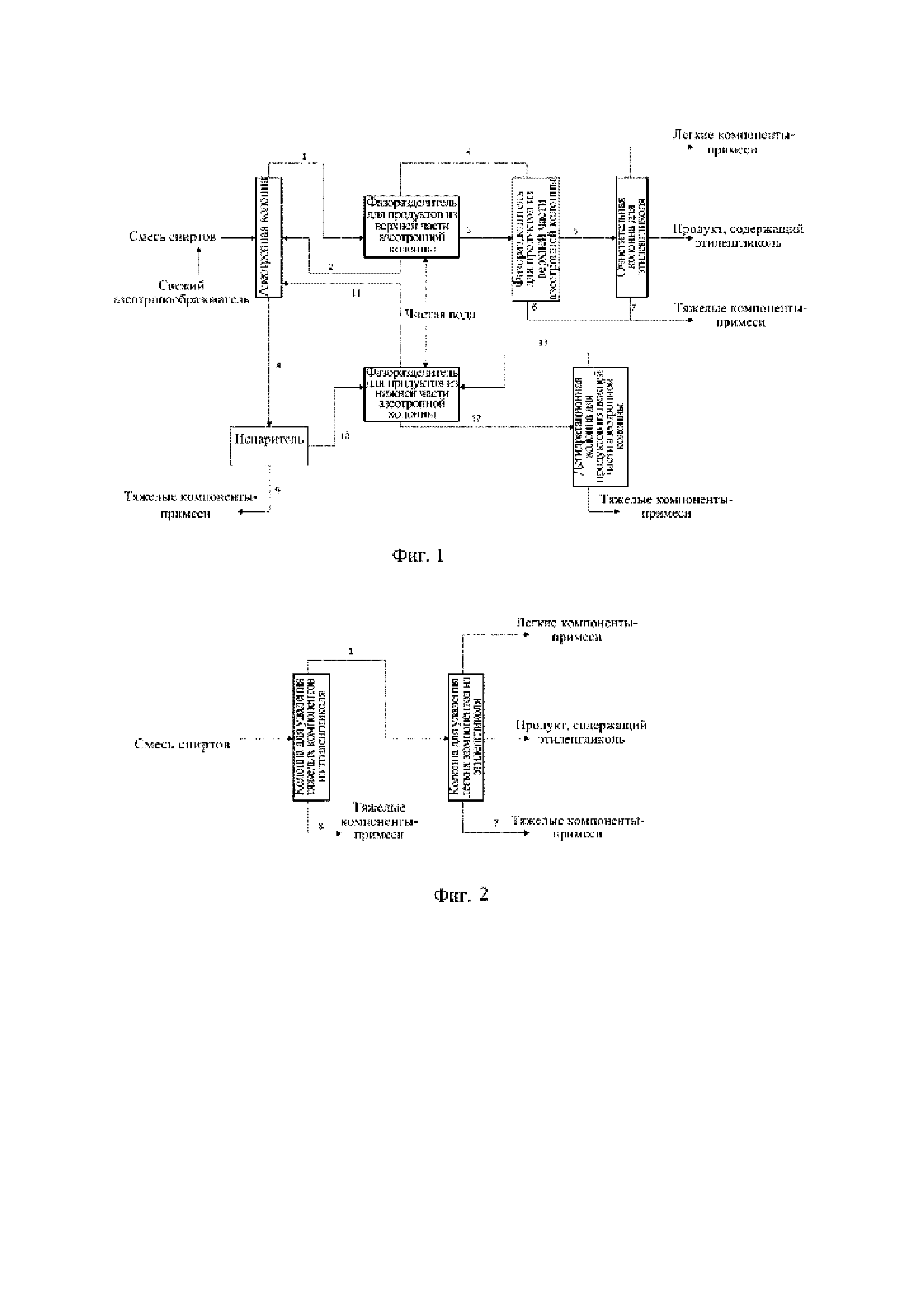 и т.д. в этиленгликоле. Требуется повышение флегмового числа и потребления энергии для того, чтобы достичь чистоты 99,9%. Более того, не может быть эффективно улучшено пропускание в ультрафиолетовой области спектра. С помощью способа по настоящему изобретению можно эффективно повысить чистоту указанного этиленгликоля до 99,90% или больше в условиях высокого выхода этиленгликоля. Более того, значения пропускания в ультрафиолетовой области спектра для полученного этиленгликоля при длине волны, составляющей 220 нм, 275 нм и 350 нм, может быть повышено до 75% или больше, 92% или больше и 99% или больше соответственно.