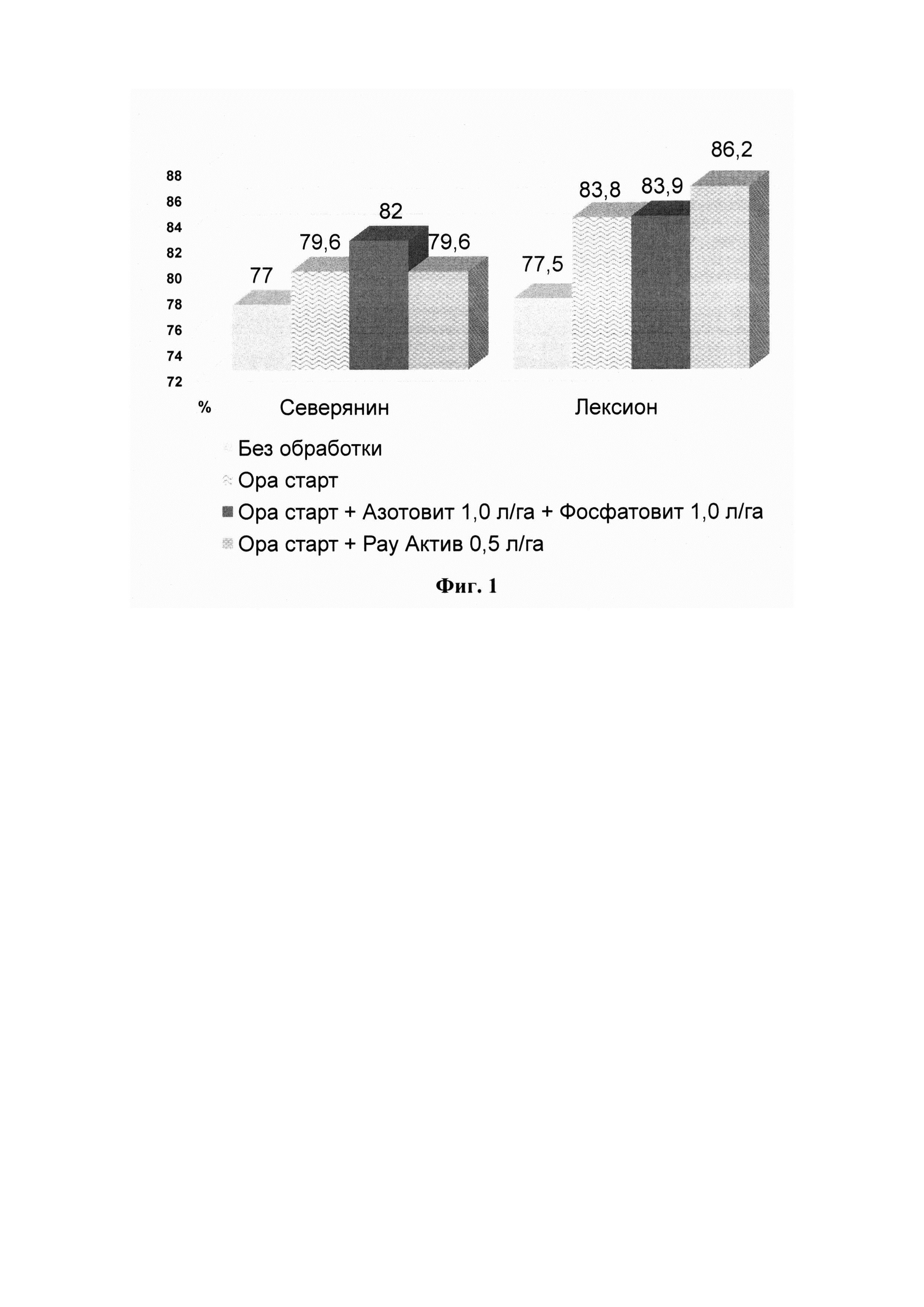 Изобретение относится к области растениеводства и может быть использовано для получения маслосемян, в частности озимого рапса в условиях Нечерноземной зоны. В настоящее время, не смотря на ряд преимуществ озимого рапса перед яровым рапсом, немаловажным фактором для получения хорошего урожая является правильный выбор посевного материала. Учитывая повышенную зимостойкость новых сортов и гибридов и хорошие адаптационные способности, стала возможна проведение интродукции культуры в Нечерноземной зоне, например, на территории Рязанской области. При ранних сроках посева, уже в первой половине августа, сорта озимого рапса Северянин и гибрида Лексион, возможно возделывание культур в регионе. Вопрос успешной перезимовки озимого рапса решается за счет использования интенсивной технологии возделывания с применением инновационной защиты растений, которая наряду с инсектицидами, гербицидами включает фунгицидные обработки и применение микробиологических удобрений. В условиях Рязанской области предложены исследования, проведенные с 2020 по 2022 годы на опытной станции ФГБОУ ВО РГАТУ, по совершенствованию технологии выращивания озимого рапса, интродуцированию новых сорта и гибрида на темно-серых лесных почвах - типичных почв для региона и, в целом Нечерноземной зоны России. Известно, что главной целью посева озимого рапса является получение маслосемян высоких урожаев и качества. Это возможно при благоприятных условиях перезимовки растений озимого рапса (Практическое руководство по освоению интенсивной технологии возделывания Государственный агропромышленный комитет СССР. Москва, 1988, с. 13-21). В случае повреждения надземной массы растений в зимний период и принятия решения о полном уничтожении таких посевов (дискование) с последующим пересевом их ранней яровой культурой приводит к дополнительным затратам. Если же принимают решение о сохранности посевов, то возможна низкая урожайность озимого рапса на таких посевах, а так же опасность гибели на протяжении всего периода их вегетации из-за поражения инфекцией, проникшей через поврежденную низкими температурами надземную часть растений. Можно привести также аналоги: Коренев Г.В. и др. Растениеводство с основами селекции и семеноводства, 3-е изд., перераб. и доп. - М.: ВО - Агропромиздат, 1990, с. 311-317. Рекомендованные нормы внесения фунгицида Фоликур и комбинаций с ним на озимом рапсе от «НПЦ Лембке», найдено on-line из Интернет на WWW. Jembyke. Kiev. Ua/new/pdf/W.red/Raps.pdf. апрель 2006; Байбеков Р.Ф. и др. Экологическое земледелие с основами почвоведения и агрохимии. М., 2006, с. 77, с. 90-95. На сегодняшний день из патентных источников известны аналоги (Патент RU №2117658. С07 21/24, A01N 33/04, A01N 33/12 и др. от 20.08.1998; Патент RU №2272619, A61K 31/18, А61Р 31/12, А01Р 37/04, С07С 311/32 от 27.03.2006; Патент RU №2314689, A01N 41/06, А01Р 3/00? А01Р 21/00 от 20.01.2008; Патент RU №2319691, С07С 311/32, A01N 4/06 от 20.03.2008.). Однако они относятся к применению N - метил - 1 - фенил - 1 - N, при предпосевной обработке, другие в качестве фунгицидного средства при опрыскивании посевов зерновых злаковых культур в период вегетации, то есть, обладают фунгицидными свойствами. Ниже в заявке на изобретение нами была проведена серия научных исследований по оценке новых сорта озимого рапса отечественной селекции и гибрида иностранной селекции на участках темно-серой лесной почвой Рязанской области. Известно изобре