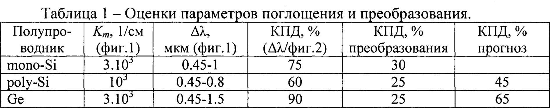 Изобретение относится к области техники фотоэлектрических систем преобразования световой энергии в электрическую и может быть использовано для изготовления солнечных активных элементов. Целью заявки является повышение коэффициента полезного действия (КПД) - эффективности преобразования энергии света в определенном спектральном интервале, а также - улучшения ряда свойств для условий применений. Цель достигается тем, что может быть использована подложка из простого дешевого материала со структурой тонкого слоя. В тонкослойной структуре точно совмещены области поглощения фотонов и сбора (диффузии) неравновесных носителей заряда, и обеспечивается полное поглощение фотонов по всей площади слоя многократным отражением света от слоя с его циркуляцией внутри подложки. При этом значительно ослабляются такие нежелательные явления, как разогрев структуры и безизлучательная рекомбинация носителей от сильного возбуждения. Рабочая структура защищена от прямого воздействия пыли, дождя, града, снега, радиации. Вводная. В сентябре 2023 г. Oxford Smith School of Enterprise and the Environment опубликовал обзор истории и современного состояния солнечной энергетики с описанием, в том числе, основных современных систем, модулей, элементов фотовольтаики [1]. В 2022 г. European Commission опубликовала отчет о состоянии солнечной энергетики в Европе и мире [2]. Преобразование энергии в фотоэлектронном преобразователе (ФЭП) основано на фотовольтаическом эффекте, который возникает в неоднородных полупроводниковых структурах (р-п-переходах) при воздействии на них света. В системах преобразования световой энергии в принципе могут быть использованы любые созданные и разрабатываемые типы ФЭП различной структуры на базе разнообразных материалов. В литературе отмечаются три поколения фотовольтаических структур [3]: на основе монокремния, занимающих до 90% рынка; тонкопленочные - в основном, на основе аморфного и поликристаллического кремния и, в незначительной степени - полупроводников А3В5 и А2В6; тонкопленочные, на основе новых материалов, в том числе органических, нанотехнологий и совсем новых эффектов, например, в металлоорганических материалах и экситонных структурах. Основная научно-техническая проблема солнечной фотовольтаики заключена в необходимости повышения коэффициента полезного действия (КПД) элемента, определяемого как отношение получаемой в нем электрической энергии к падающей на него солнечной. Значения КПД промышленных структур на монокремнии достигают 24%, на аморфном и поли- кремнии - 16%, в экзотических (особых, лабораторных) случаях - до 45%. На структурах третьего поколения пока достигнутые лучшие результаты не превышают 12%. Из интернет-сообщения [4] (курсивом сделаны наши вставки) следует: «В настоящий момент самой массовой технологией на рынке солнечных панелей является PERC. (PERC расшифровывается как Passivated Emitter Rear Cell - пассивированный эмиттер заднего контакта и означает диэлектрический слой на задней части солнечного элемента) КПД солнечных панелей, изготовленных с помощью этой технологии (на монокремнии), составляет 20-24%, что является достаточно высоким показателем. Однако, индустрия альтернативной энергетики стремительно развивается и на смену PERC приходит технология TOPCon. TOPCon (Tunnel Oxide Passivated Contact) - более совершенная технология (моно)кремниевых элементов