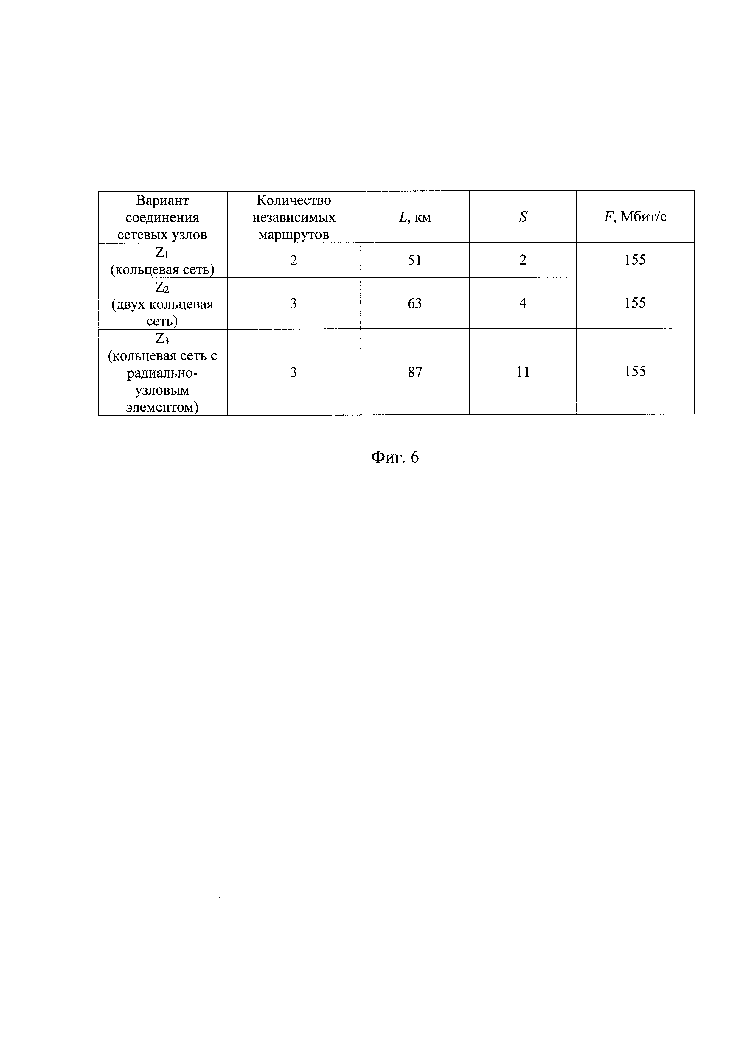 км, S≥6, F≥155 Мбит/с, то будет выбран вариант соединения Z3 (см. фиг. 6).