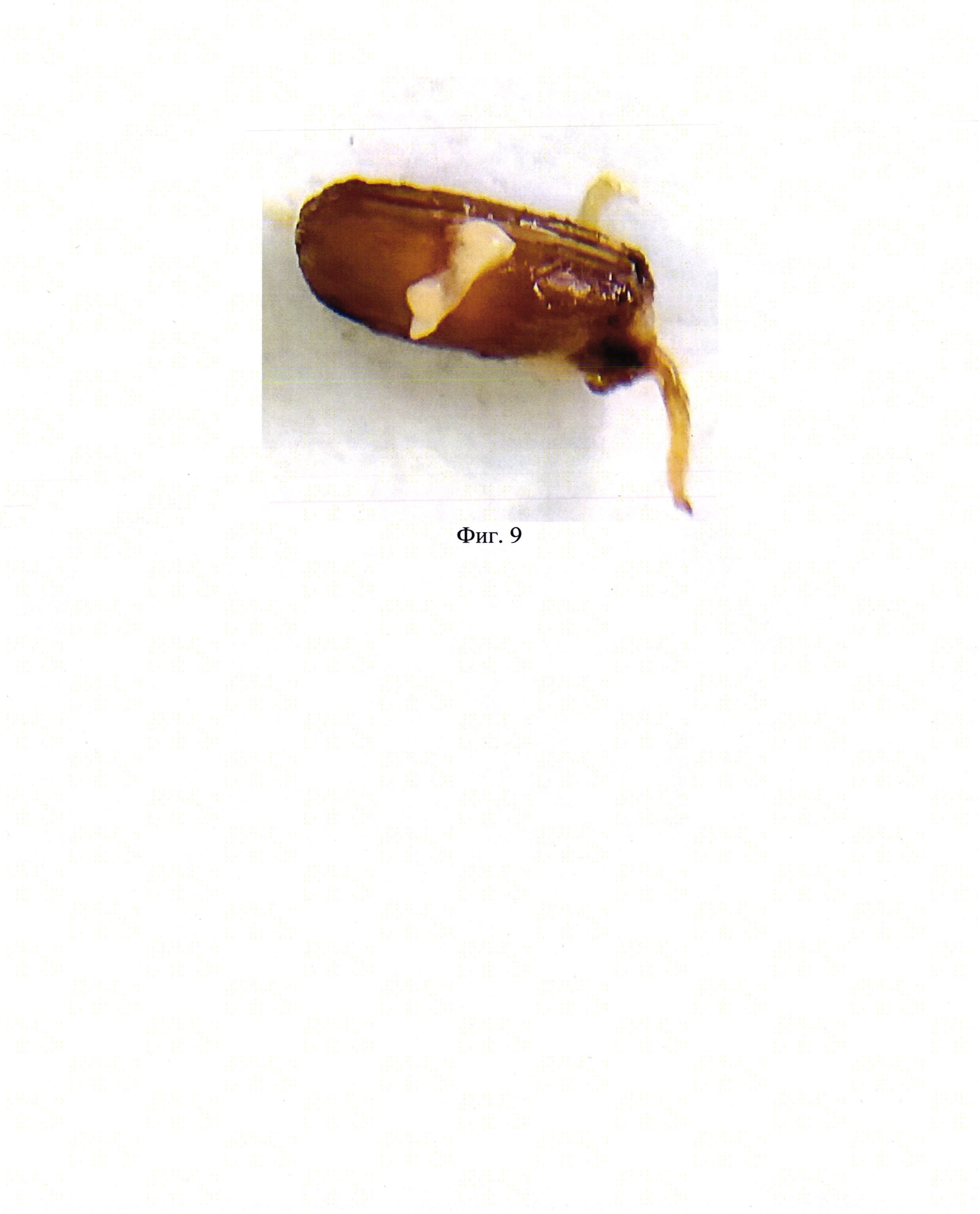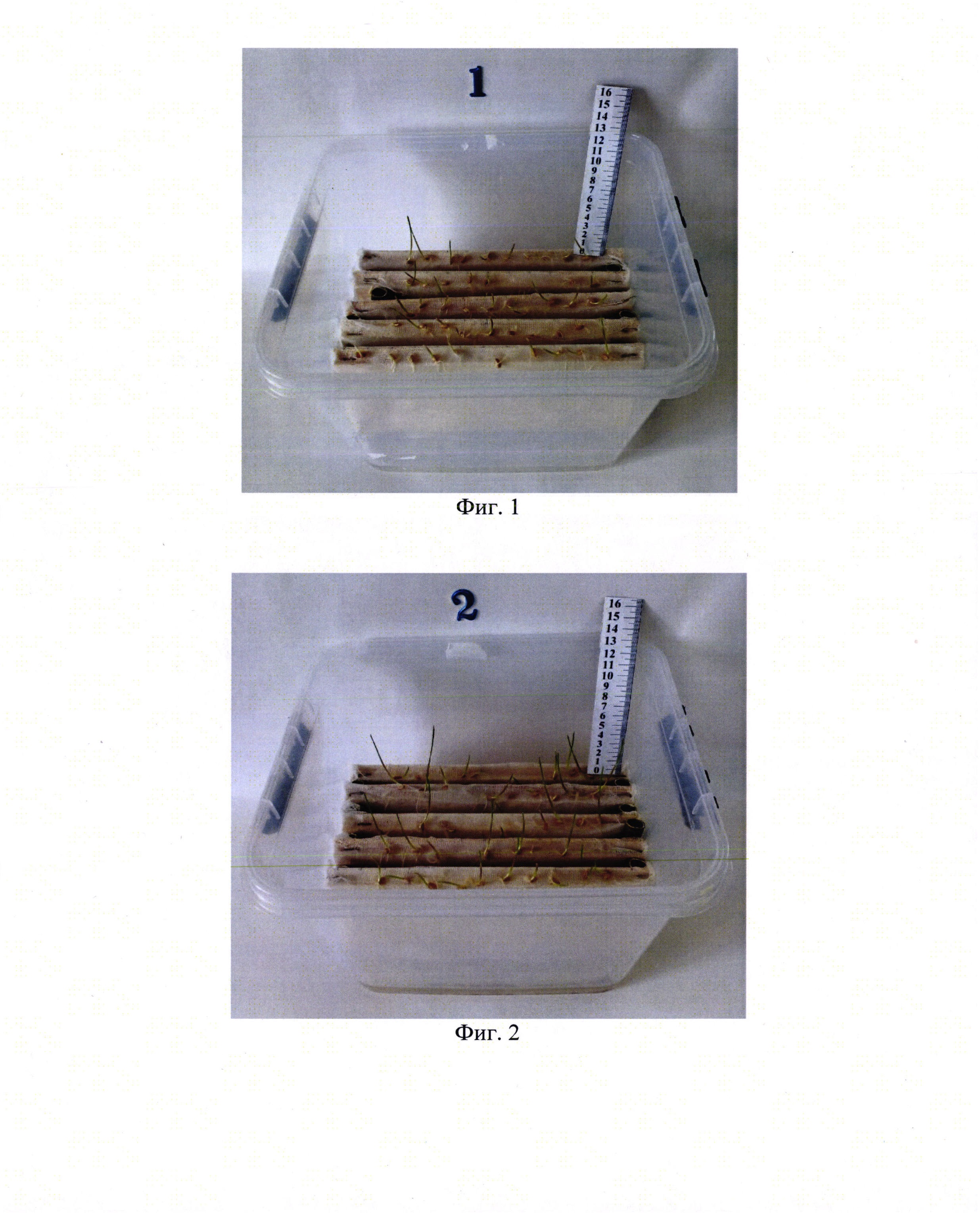 Изобретение относится к области сельского хозяйства, в частности к земледелию и растениеводству при решении вопросов целевого использования земель, и может быть использовано для прогнозирования развития болезней сельскохозяйственных культур в полевых условиях с учетом отзывчивости культур на вносимые в почву удобрения и препараты, например, для обработки семян и так далее. Известны биологические методы выявления внешней и внутренней зараженности семян болезнями, согласно которым из семян основной культуры отбирают четыре рабочие пробы по 50 или 100 семян в зависимости от вида анализируемых культур и проращивают семена во влажной камере. Для проращивания семян во влажной камере применяют стерильные сухие чашки Петри, Коха или стеклянные стаканы, накрытые стеклом. На дно чашек (стаканов) помещают марлю в три слоя или фильтровальную бумагу в два слоя, или фильтровальную бумагу, положенную на гигроскопическую вату, толщиной слоя не более 0,25 см. Марлю, комбинированный субстрат или фильтровальную бумагу в чашках Петри или Коха увлажняют стерилизованной водой с помощью пипетки, слегка приоткрывая при этом с одного края крышку чашки. Семена раскладывают на ложе на расстоянии 1-2 см друг от друга в зависимости от их крупности. Закрытые чашки Петри, Коха или стаканы с заложенными в них семенами помещают в термостат для проращивания. Виды болезней семян при проращивании во влажной камере выявляют путем просмотра (ГОСТ-12044-93 «Семена сельскохозяйственных культур. Методы определения зараженности болезнями». Дата введения 1995-01-01) (аналог). Однако известные методы не позволяют выявить потенциальное влияние агрофона (почвы, удобрений и препаратов) на развитие болезней сельскохозяйственных культур и прогнозировать их развитие. Известны способы определения степени инфицированности семян зерновых колосовых культур фитопатогенными бактериями Pseudomonas syringae, Xanthomonas campestris, включающие помещение семян на увлажненную стерильную фильтровальную бумагу, экспозицию семян в термостате с последующим анализом степени их инфицированности, при этом семена выдерживают в термостате при температуре 27-32°С с экспозицией семян 5-7 суток с дополнительным анализом степени инфицированности на проросших корнях семян (патент РФ №2283560 по М.Кл. - А01С 1/00, опубл. 20.09.2006) (аналог). Однако определение степени инфицированности с помещением семян на увлажненную фильтровальную бумагу без учета почвенных условий предстоящего возделывания культур не позволяет получить объективные результаты степени инфицированности семян в реальных условиях произрастания растений на различных агрофонах. Известен также способ фитоэкспертизы семян зерновых культур, заключающийся в проращивании семян в пластиковых контейнерах с почвой, взятой с предполагаемого места их посева, при котором моделируют возникновение и развитие корневой гнили на всходах растений как за счет инфекции, связанной с семенами, так и инфекции, находящейся в почве, путем выдерживания разных контейнеров с почвой и семенами в разных температурных условиях в течение определенного для проращивания времени, а затем определяют интенсивность поражения всходов корневой гнилью и делают вывод о необходимости протравливания семян (патент РФ 2269241 по М.Кл. - А01С 1/02, опубл. 10.02.2006) (прототип). Указанный способ обладает 