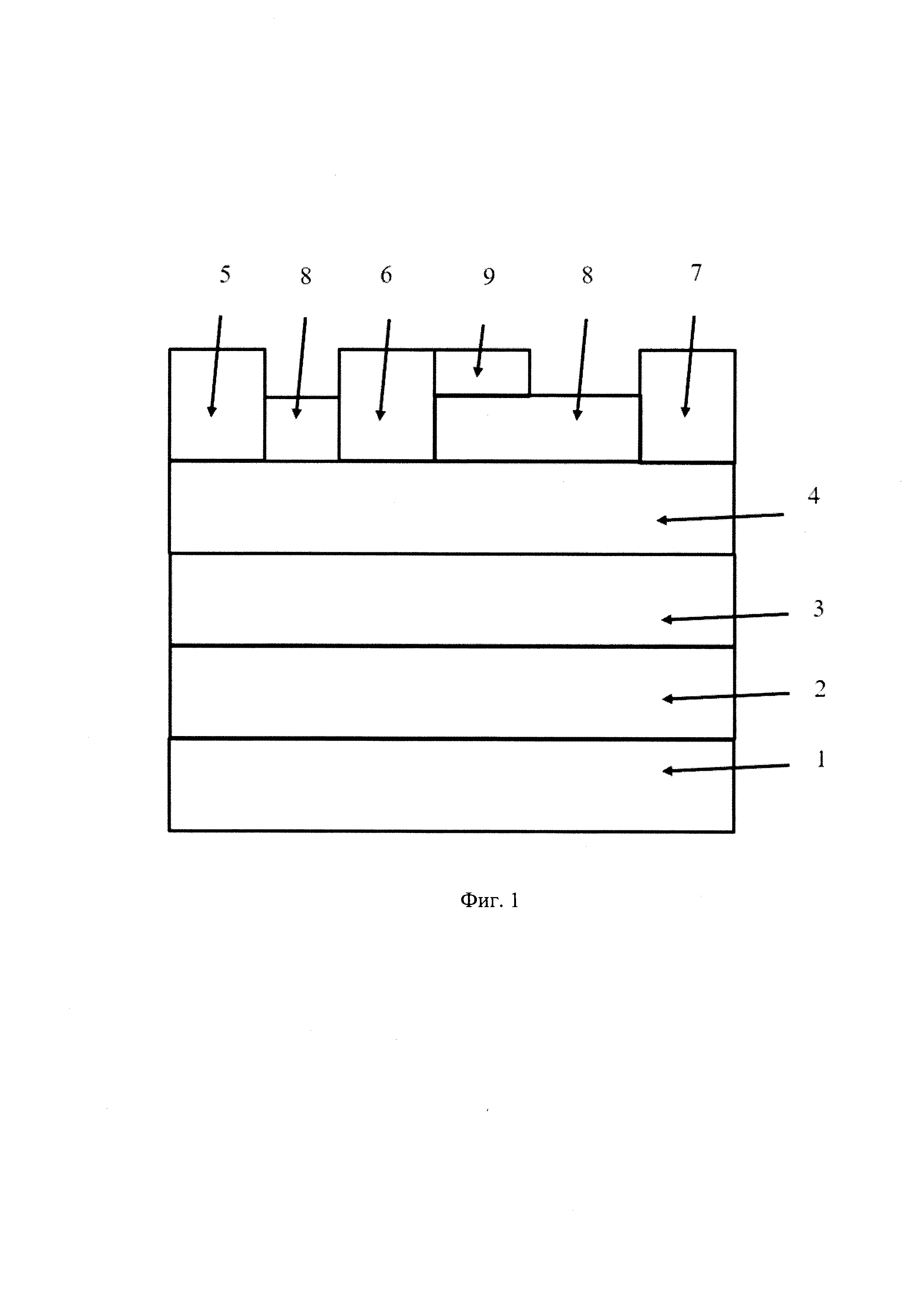 Изобретение относится к приборам твердотельной электроники, и в частности, к конструкции силового транзистора на основе нитридов металлов III группы. Электронная компонентная база на основе широкозонных материалов представляет большой интерес для мощной и силовой электроники. Гетероструктуры нитридов III группы занимают в ней особое место, поскольку такие приборы обладают большими напряжениями пробоя при фиксированных значениях сопротивления в открытом состоянии по сравнению, например, с карбидом кремния. Силовые устройства на основе гетероструктур AIIIN вводятся в гражданский оборот такими крупными компаниями, как Transform, ЕРС, Panasonic, Infineon, GaN Systems, Dialog u Navitas. Для силовой электроники обычно используются структуры вертикального типа, когда области контактов расположены на разных плоскостях полупроводниковой пластины. Известна конструкция высоковольтного GaN транзистора (патент US 20150206768 А1), в которой области затвора и стока находятся на противоположных гранях пластины. Однако для увеличения напряжения пробоя в таких устройствах приходится увеличивать обедненную носителями заряда область, что приводит к значительному увеличению сопротивления в открытом состоянии. Поэтому для силовой электроники, предназначенной для использования в аппаратуре до 700 В, применение планарной конструкции транзистора является перспективным решением. Например, известна конструкция прибора, представленная в патенте US 9299822 В2. На гетерогранице формируется двумерный электронный газ (2DEG). Проводимость такого канала обусловлена транспортными свойствами 2DEG, поэтому быстродействие значительно выше, чем в устройствах вертикального типа. Однако в представленной авторами US 9299822 В2. структуре подзатворный слой дополнительно легирован примесью p-типа проводимости, что не всегда возможно реализовать в едином технологическом цикле формирования гетероструктуры. Такой прием несколько усложняет и удорожает технологию. Ближайшим к заявленному техническим решением является конструкция высоковольтного GaN НЕМТ, представленная в патенте RU 2534002. Напряжение пробоя здесь зависит от расстояния между затвором и стоком, длины полевой пластины, а величина тока - от толщины спейсерного слоя AlN. При этом для достижения требуемых электрофизических параметров 2DEG необходимо наличие барьерного слоя AlGaN (около 30 нм). Недостатком предложенной конструкции является использование традиционной гетероструктуры AlGaN/GaN, не позволяющей достичь высоких плотностей тока стока. В настоящее время известно много вариантов AIIIN гетероэпитаксиальных структур (ГС) с 2DEG. Наиболее распространенными и изученными являются ГС с барьерным слоем на основе тройных соединений. Альтернативу им ввиду ряда фундаментальных преимуществ могут составить ГС с ультратонким барьером AlN. Рекордные значения слоевого сопротивления полной ГС (ρs=120÷130 Ом/□) получены авторами [1, 2] именно для таких структур. Однако низкое ρs - это не единственное достоинство AlN/GaN ГС применительно к НЕМТ технологии. Здесь следует отметить и высокое аспектное соотношение Lg/d (где Lg - длина затвора изготавливаемого транзистора, d - толщина барьера), которое в разы больше данного параметра, реализуемого в классических AlGaN/GaN гетерокомпозициях. Технический результат изобретения заключается получении силового транзистора на основ