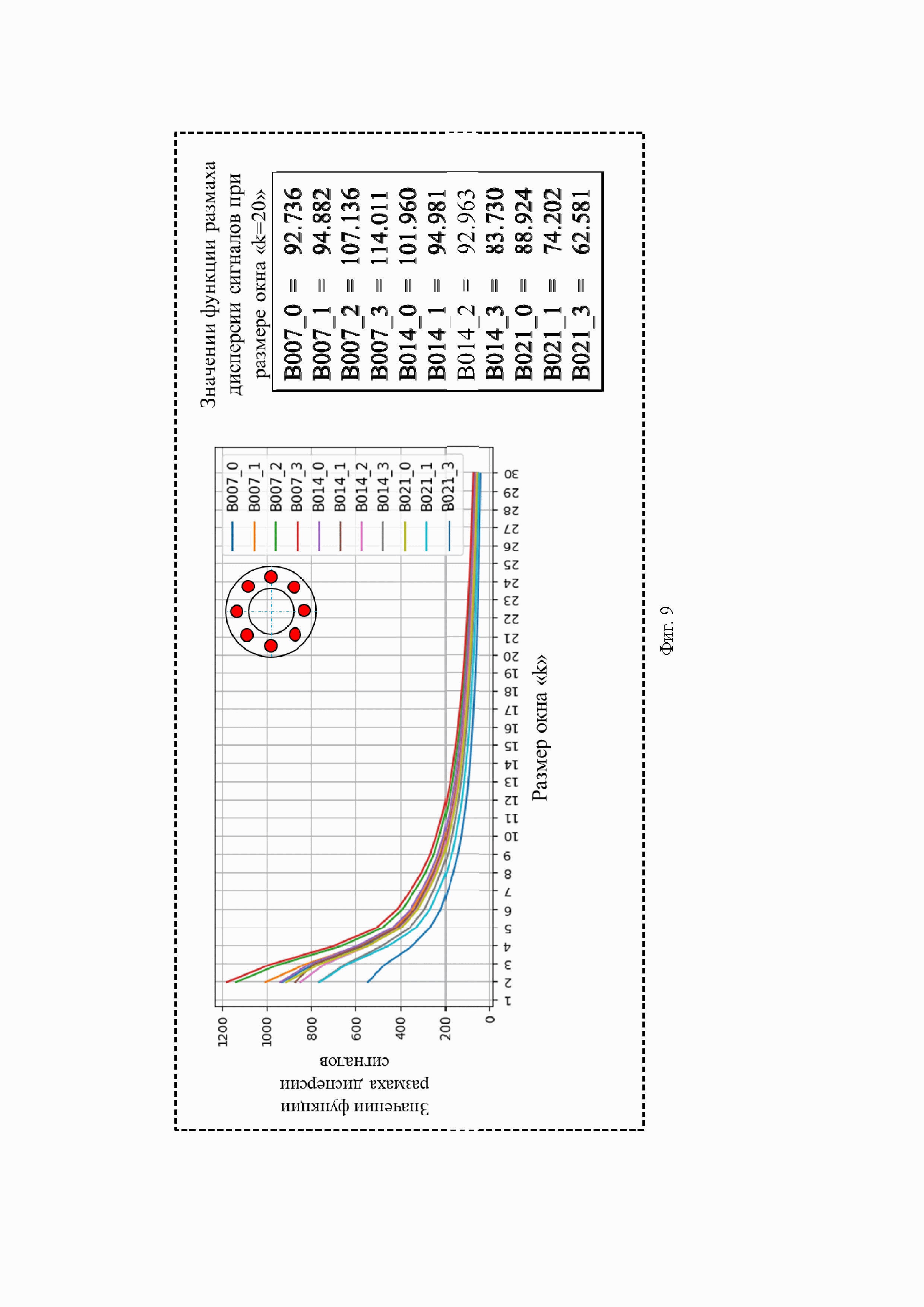 Область техники Изобретение относится к области измерительной техники, а именно к диагностированию технического состояния подшипников качения, и может быть использовано для оценки и мониторинга текущего технического состояния вращающихся машин, узлов и механизмов сложных технических систем предприятий с непрерывным циклом производства по виброизмерениям в режиме реального времени. В частности, механизмов и агрегатов с нанесенным на рабочую поверхность многофункциональным покрытием из композиционных материалов на базе фаз с многокомпонентной основой, с целю повышения эксплуатационных характеристик (износостойкость, коррозионностойкость, жаропрочность и др.) для горнодобывающей, нефтеперерабатывающей, металлургической и машиностроительной промышленности. Уровень техники Известен способ виброакустической диагностики подшипников качения (патент SU №1787269, опубл. 11.06.1990, МПК G01M 13/04), согласно которому измеряют амплитудный спектр вибрации элементов подшипников при вращении его под нагрузкой, выделяют составляющие спектра вибрации в заданном диапазонах частот и судят о состоянии элементов подшипника при измерении амплитудного спектра вибрации элементов подшипника при обратном вращении, выделяют составляющие этого спектра в заданном диапазоне частот, определяют сдвиг частот составляющих относительно эталонного значения, по сдвигу частот судят о наличии дефекта, по сравнению максимальных значений амплитуд составляющих спектра вибрации подшипника при прямом и обратном вращении определяют место дефекта и его параметры. Известен способ контроля технического состояния подшипников качения (патент SU №1649348, опубл. 15.05.1991, МПК G01M 13/04), согласно которому выделяют сигнал вибрации подшипникового узла, при котором измеряют величину амплитуды сигнала пропорционального виброускорению. Определяют максимальное значение амплитуды и устанавливают пороговое значение на 5 дБ ниже максимального, измеряют число импульсов сигнала, имеющих величину выше порогового значения и по отношению числа импульсов к суммарной длительности судят о техническом состоянии подшипникового узла, и при величине этого отношения более 5 считают подшипник имеющим повреждения. Известен способ диагностики подшипниковых узлов (патент SU № 1691702, опубл. 15.11.1991, МПК G01M 13/04), согласно которому выделяют сигнал огибающей случайных вибраций, контролируют наличие импульсного сигнала и при его появлении выделяют максимальную составляющую из гармоник спектра информативных частот, определяют отношение постоянной составляющей спектра к уровню максимальной переменной, и по величине этого отношения оценивают техническое состояние подшипника. Известен способ диагностики подшипников (патент RU №2209410, опубл. 21.11.2001, МПК G01M 13/04), заключающийся в расчете характерных частотных масок для отдельных элементов подшипника, вносящих доминирующий вклад в его вибрацию, и последующем измерении сигнала вибрации подшипника при его вращении, преобразовании полученного сигнала в цифровую форму с образованием не менее двух его равновеликих реализаций, проведении быстрого преобразования Фурье, выделении амплитудного спектра, сравнении его с рассчитанными частотными масками для отдельных элементов подшипника, определении доли вклада каждого из этих элементов в общую эн