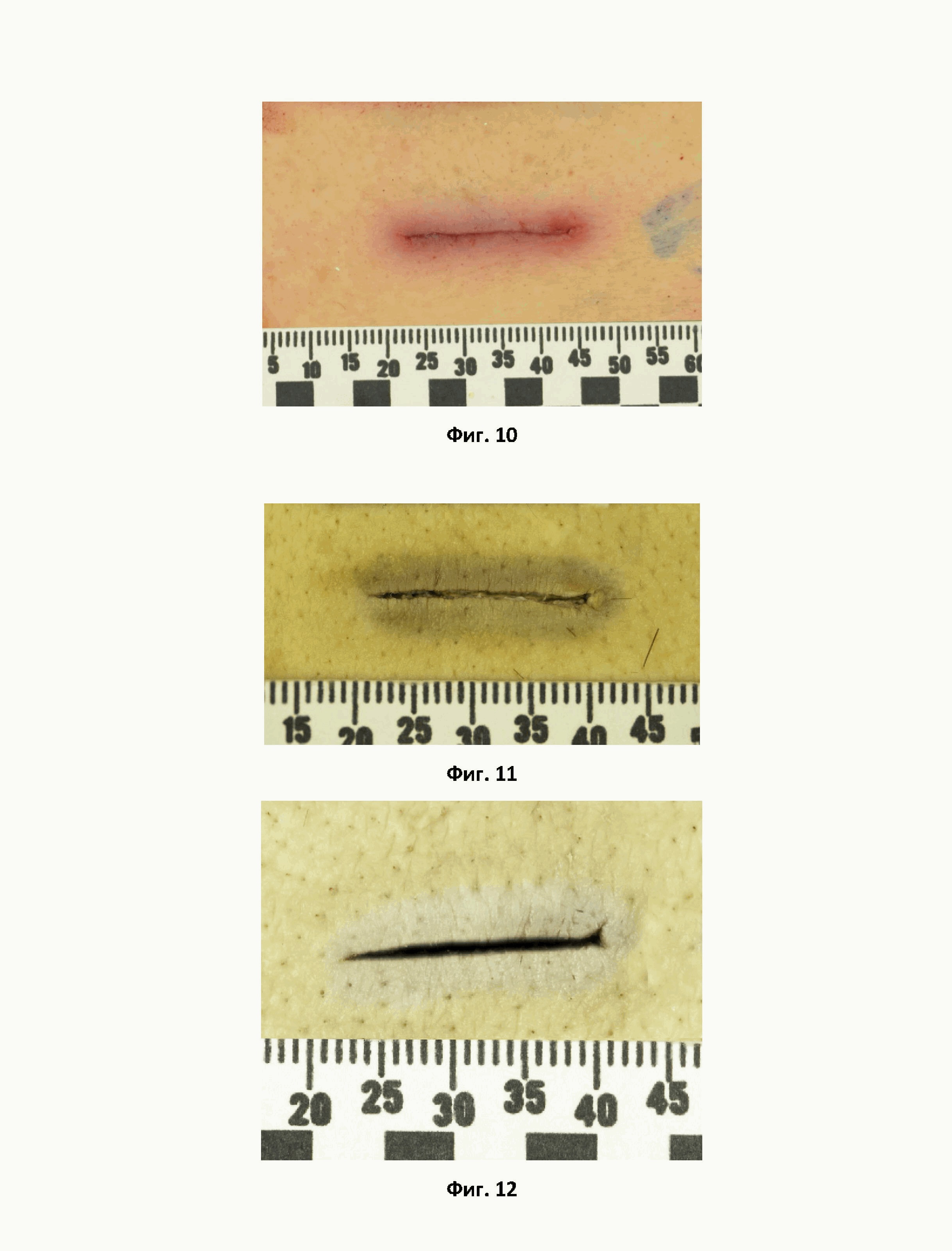 на фиг. 9 – представлена фотография колото-резаной раны (наблюдение № 3): после обработки предлагаемым раствором № 2;