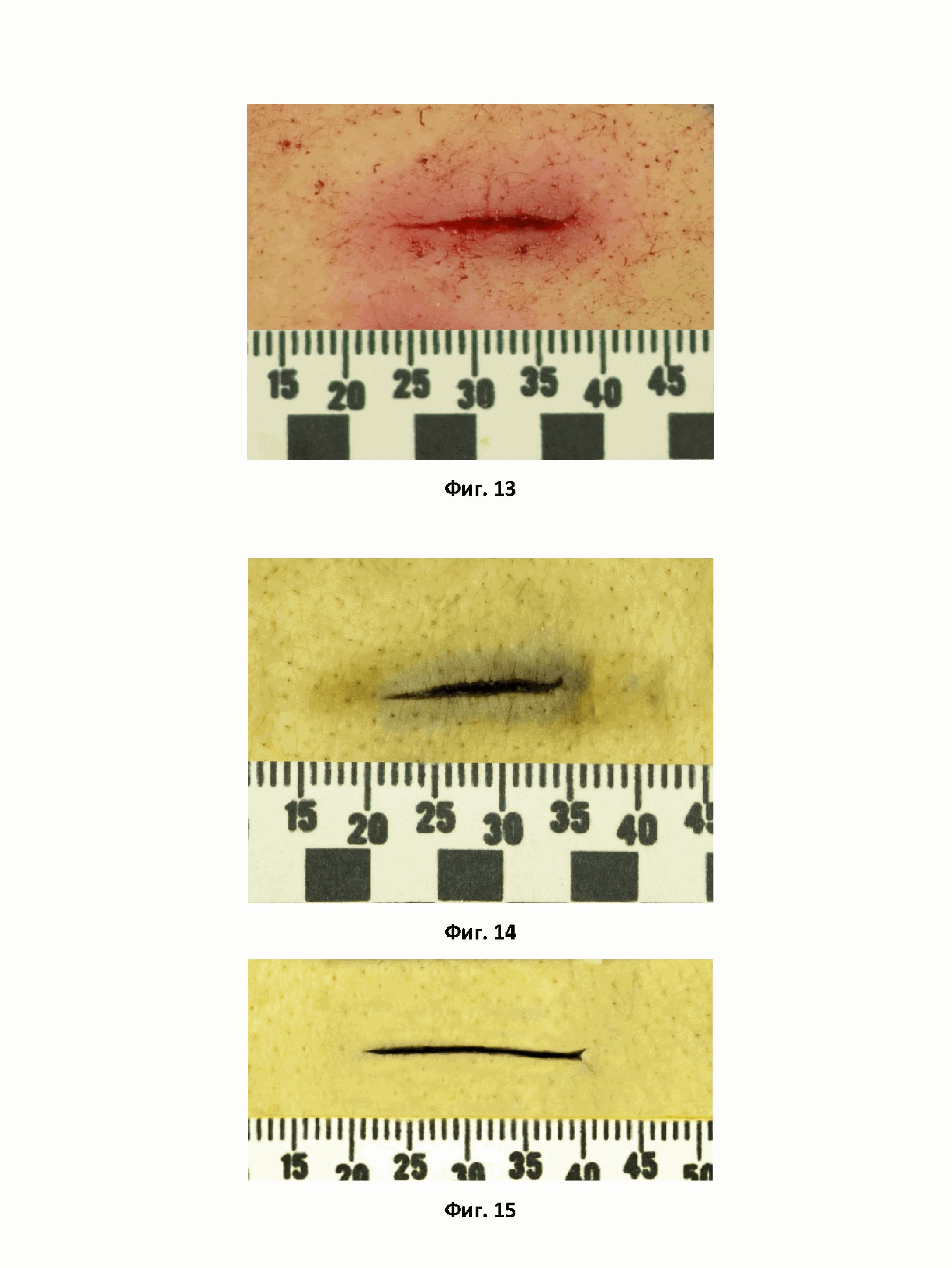 на фиг. 13 – представлена фотография колото-резаной раны (наблюдение № 5): до обработки;