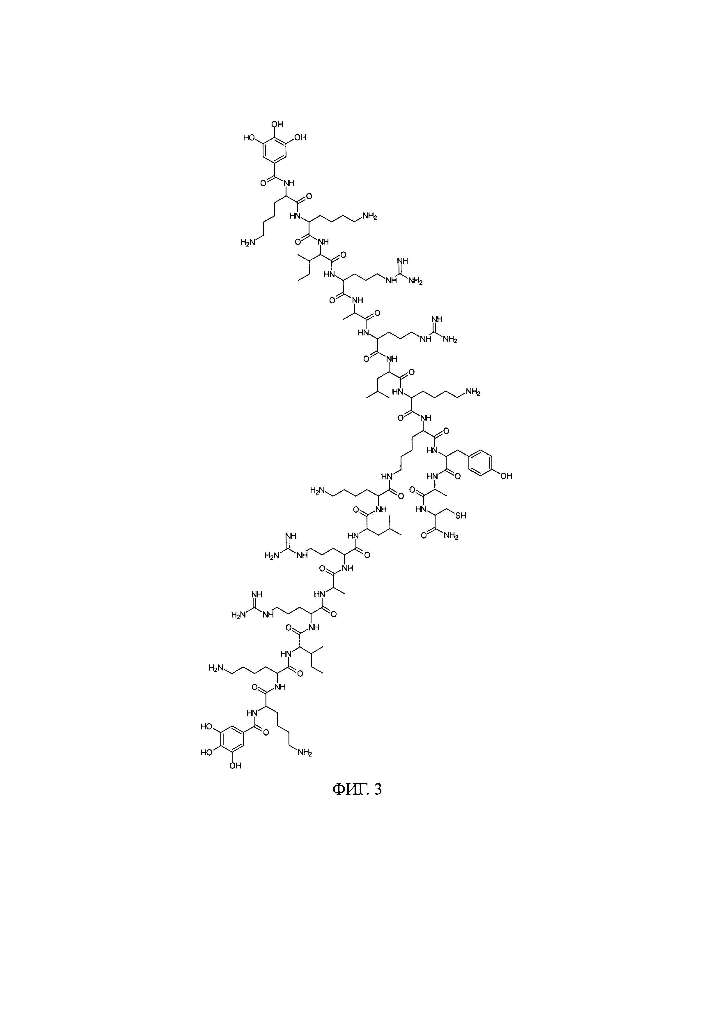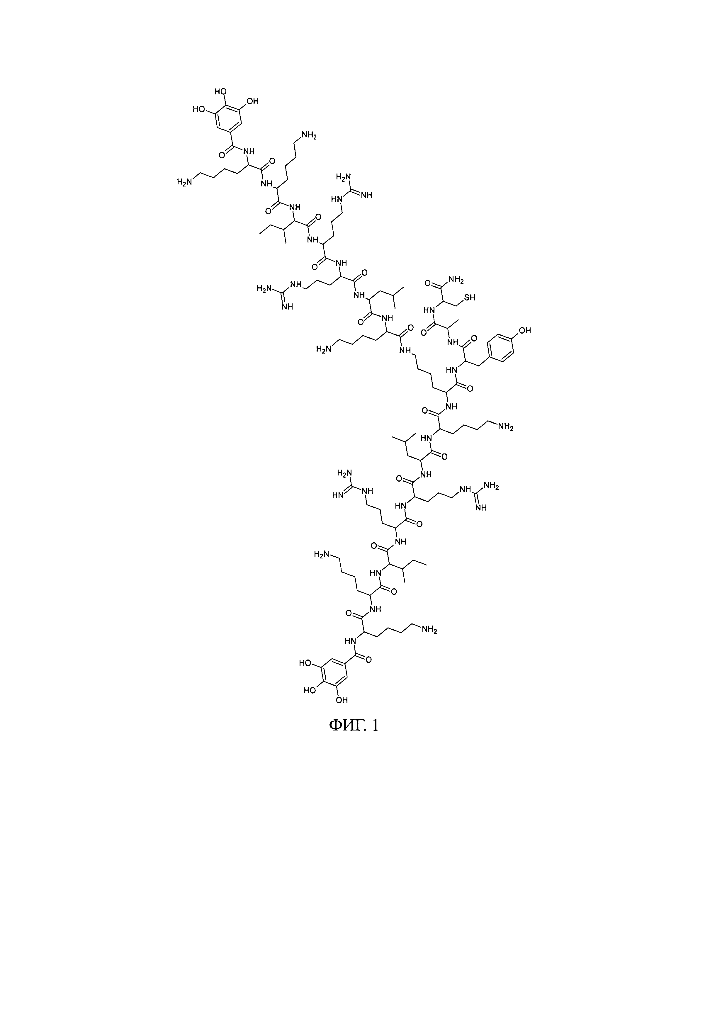 Изобретение относится к органической химии и представляет собой способ получения производных синтетических пептидов, модифицированных галловой кислотой с потенциальной антиоксидантной активностью. Препараты синтетических пептидов в настоящее время активно испытываются, внедряются и используются в терапевтической практике в России. Помимо специфического действия, основанного на способности пептидов к взаимодействию с рецепторами, как, например, у окситоцина, пептиды могут обладать широким спектром неспецифической активности. К активности такого типа можно отнести противовирусное и противомикробное действие, а также антиоксидантный эффект [1-6]. Окислительный стресс является важнейшим звеном множества патологических процессов, в том числе инфекционных. Движущей силой окислительного стресса является избыточное образование реактивных форм кислорода в клетках, при котором собственные антиоксидантные системы организма не способны полностью их нейтрализовать, в результате чего клетки повреждаются и гибнут [7-9]. Экзогенные антиоксиданты обладают известной эффективностью в подавлении окислительного стресса. Среди них можно выделить полифенольные соединения, в частности, флавоноиды и галловую кислоту, для которых показана антиоксидантная активность на уровне организма. Данные соединения являются природными и содержатся в пище и препаратах растительного происхождения. Механизм антиоксидантной активности фенольных соединений обусловлен их высокой окислительной лабильностью: фенолы легко окисляются с образованием, в частности, хинонов. Отличительной чертой полифенолов является их способность к образованию в ходе окисления стабильных резонансных структур, также обладающих относительно низким окислительно-восстановительным потенциалом, в связи с чем одна молекула полифенола может относительно легко связать несколько кислородных радикалов [10, 11]. Тем не менее, природные полифенолы гидрофобны, в связи с чем имеют относительно низкую биодоступность. Данный недостаток обуславливает проявление антиоксидантного эффекта лишь как накопительного. Мировая эпидемия новой коронавирусной инфекции, в свою очередь, показала недостаток безопасных и изученных средств экстренного купирования окислительного стресса в номенклатуре российской фармакологии. Потенциальным решением данной проблемы является получение и характеризация инновационных антиоксидантов пептидной и пептидно-полифенольной структуры. Собственная антиоксидантная активность пептидов проявляется обычно за счет остатков цистеина и метионина, способных окисляться с образованием органосульфидов и сульфонов, тирозина, обладающего фенольным гидроксилом, и триптофана, легко окисляющегося с разрывом гетероциклического участка. В отличие от полифенолов, пептиды обычно обладают высокой биодоступностью, в том числе способны к проникновению внутрь клеток, однако, способность к связыванию реактивных форм кислорода у пептидов значительно менее выражена, чем у полифенолов. Пептиды, состоящие из протеиногенных аминокислот, способны к полной биодеградации без образования токсичных метаболитов [13, 14]. Получение соединений пептидной природы с добавленными полифенольными фрагментами потенциально способно исключить недостатки обеих групп соедине