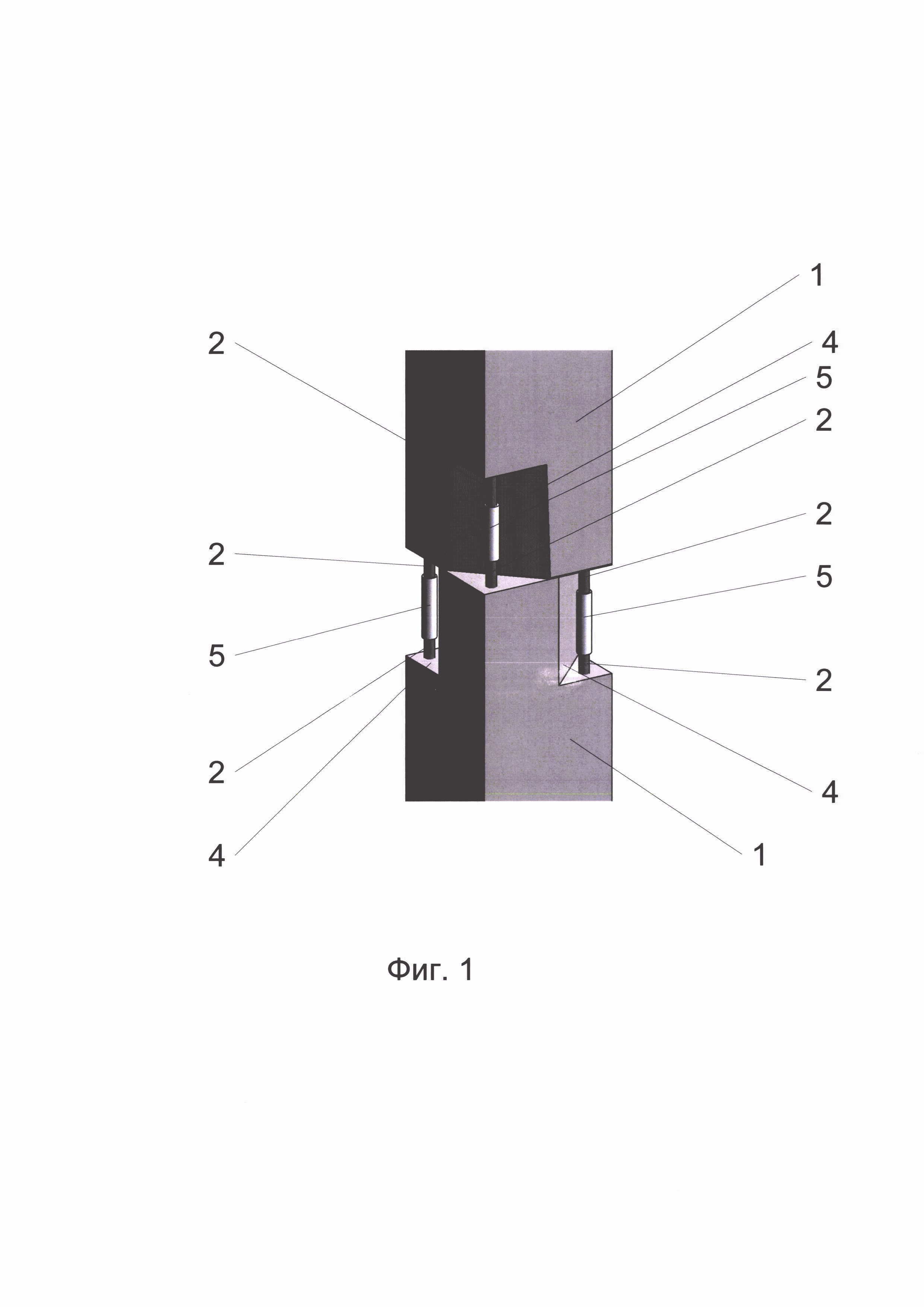 Изобретение относится к области строительства, в частности к области строительства многоэтажных жилых и общественных зданий из сборного железобетона. Соединение сборных железобетонных колонн, включающее выпуски арматурных стержней и выемки, расположенные в торцах верхней и нижней колонн. Отличие заключается в том, что на противоположных гранях каждой колонны размещены по два угловых выпуска арматурных стержней, причем один из них установлен в выемке, а другой выступает из торца колонны, при этом каждый угловой арматурный выпуск стержня, размещенный в выемке одной колонны соединен с арматурным выпуском, выступающим из торца другой колонны с помощью обжимной муфты, выемки в колоннах выполнены треугольными в плане с расположением сторон треугольника под углом к боковым граням колонн. Известны конструкции каркасных зданий из сборных железобетонных элементов в том числе колонн (1 стр. 81). У верхних и нижних колонн в торцах выполнены выпуски рабочей арматуры, которые расположены в квадратных в плане выемках бетона колонн по четыре у каждой. После установки колонн друг на друга через центрирующую прокладку, выпуски рабочей арматуры свариваются между собой с помощью ванной сварки, а выемки бетонируются. Иногда сварка заменяется резьбовыми муфтами. Известны и другие решения стыка колонн в виде жесткого стыка (2), где колонны устанавливаются друг на друга и часто рабочая арматура прерывается. Существуют варианты стыка колонн с гильзами (3), куда вставляется арматура верхних колонн и гильза заполняется жидким составом, например, цементно-песчаным раствором. Во многих решениях стыки выполняются нахлесткой арматуры и расход стали увеличивается. Недостатком таких конструкций здания и таких соединительных узлов колонн является то, что монтаж зданий сопровождается большим объемом сварочных работ и требует высокой квалификации сварщиков, поскольку сварка обычно ванная и расчетная. Резьбовые муфты требуют токарных работ. В варианте с гильзами, сложно передавать растягивающие напряжения в рабочей арматуре. При применении гильз повышается трудоемкость их установки в заводских условиях, а без гильз с отверстиями под арматуру, повышается расход арматуры, поскольку необходима ее нахлестка. Наиболее близким техническим решением является конструкция стыка с ванной сваркой (1 стр. 81), где в торцах верхней и нижней колонн выполнены выпуски рабочей арматуры расположенные в четырех квадратных в плане выемках в каждой. Выпуски свариваются между собой ванной сваркой и выемки бетонируются. Целью изобретения является создание конструкции каркаса со стыками между колоннами исключающими сварку, с меньшей трудоемкостью при минимальном расходе металла. Это позволяет ускорить процесс монтажа каркасных зданий, упрощает монтаж в зимних условиях, уменьшает потребность в высококвалифицированных сварщиках. Сущностью изобретения является то, что на противоположных гранях каждой колонны размещены по два угловых выпуска арматурных стержней, причем один из них установлен в выемке, а другой выступает из торца колонны, при этом каждый угловой арматурный выпуск стержня, размещенный в выемке одной колонны соединен с арматурным выпуском, выступающим из торца другой колонны с помощью обжимной муфты, выемки в колоннах выполнены треугольными в пл