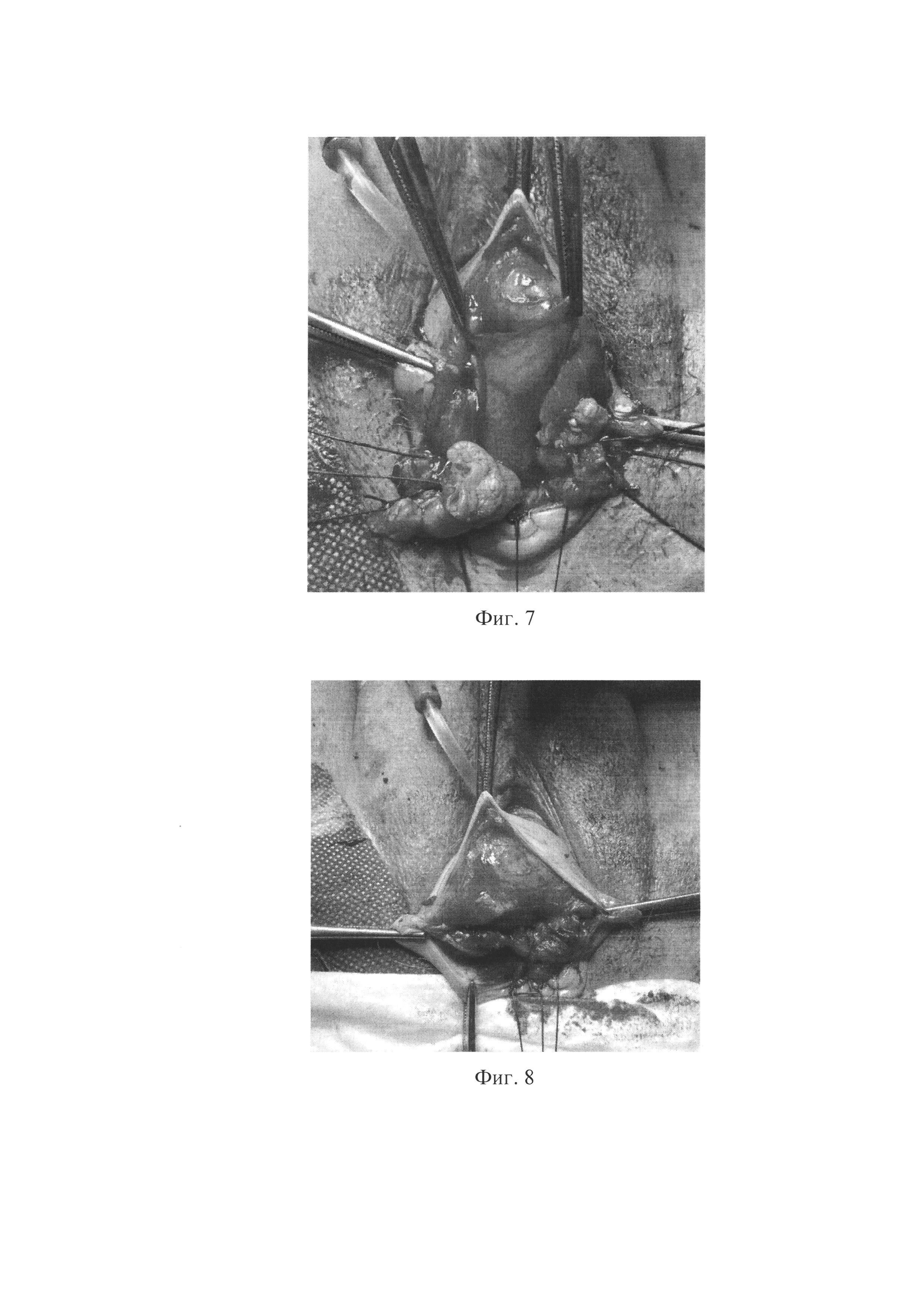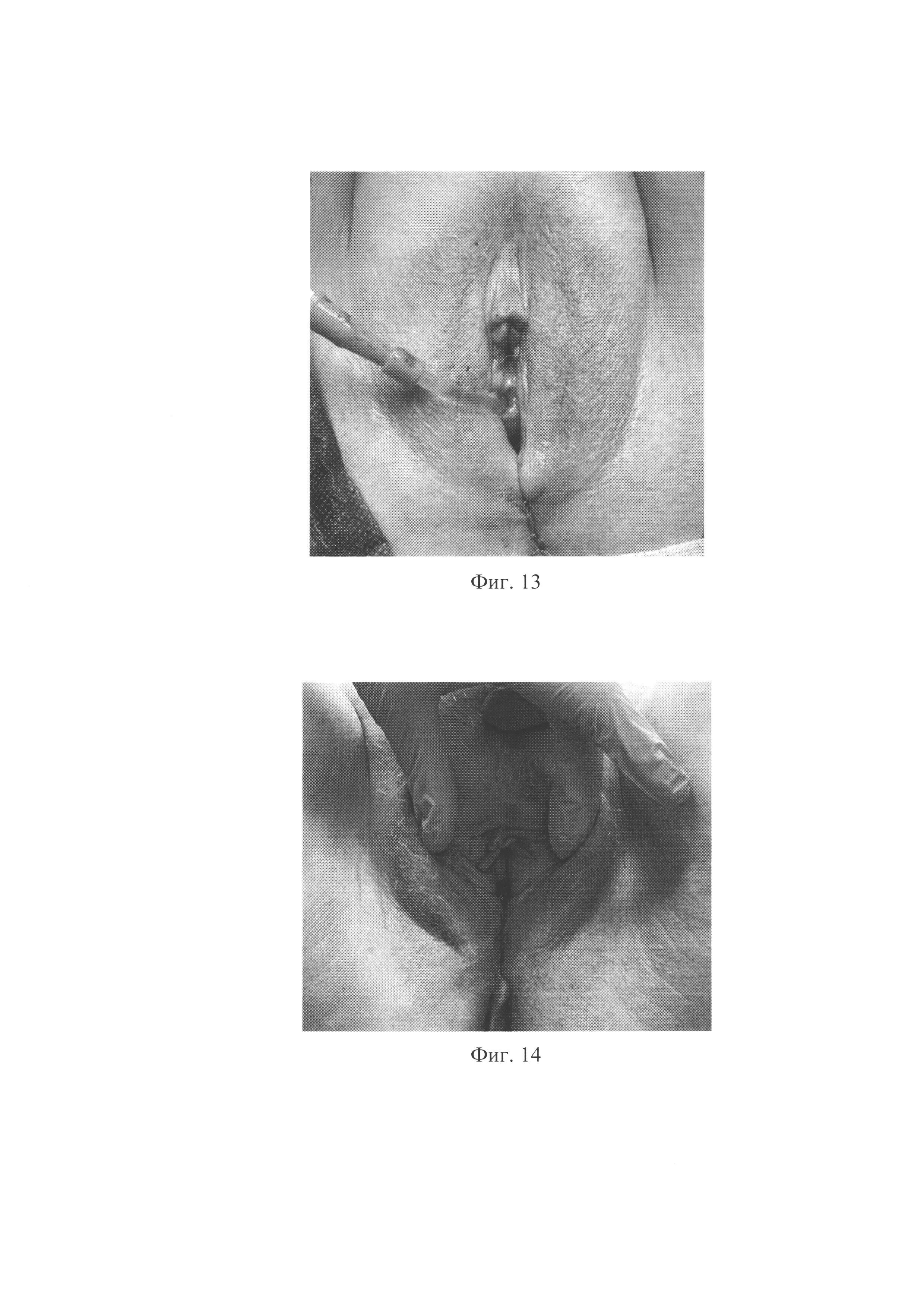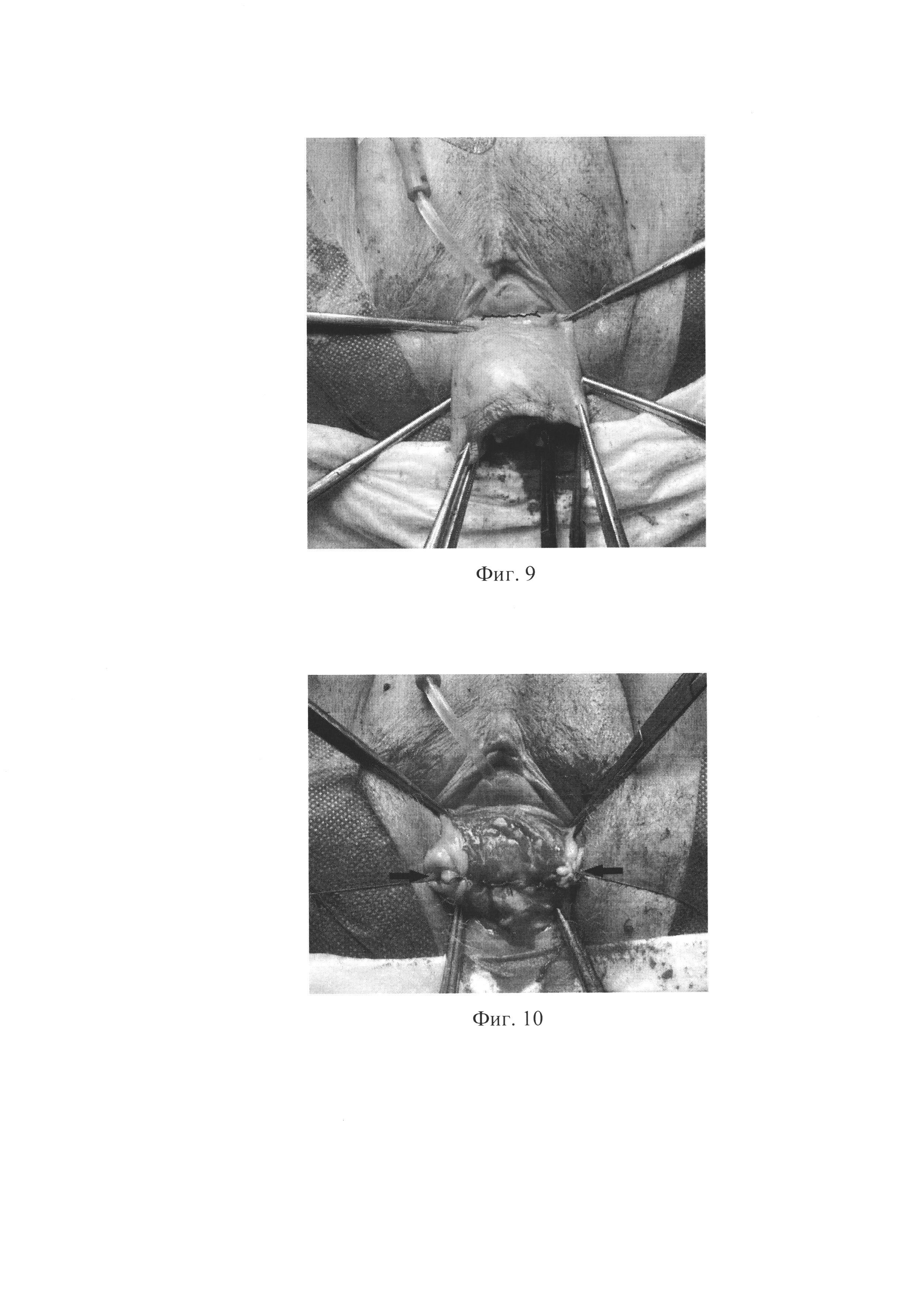Способ хирургической коррекции тазовой десценции в сочетании с заболеваниями матки у пациенток пожилого и старческого возраста, включающий циркулярное рассечение слизистой стенки влагалища и ее отсепаровку, вскрытие прямокишечно-маточного углубления, перевязку связок и маточных сосудов, вскрытие пузырно-маточного углубления, перевязку оставшегося связочного аппарата и придатков матки, восстановление целостности брюшины, соединение передней и задней стенок влагалища в поперечном направлении, выкраивание лоскутов из слизистой передней и задней стенок влагалища, погружение культи влагалища в полость малого таза, причем после влагалищной гистерэктомии производят соединение передней и задней стенок влагалища в поперечном направлении, нити шва фиксируют зажимами, выкраивают лоскуты из слизистой влагалища, дистальные края которых располагаются непосредственно в области сводов влагалища, отличающийся тем, что выполняют уретропексию средней трети уретры свободной синтетической петлей - накладывают первый зажим на 1 см ниже наружного отверстия уретры и второй на 1,5 см ниже первого, между зажимами производят продольный разрез слизистой влагалища, формируют каналы путем диссекции тканей препаровочными ножницами под углом 45° от средней линии, далее при помощи проводников с синтетическим протезом по желобу направителя перфорируют обтураторную мембрану и выводят концы синтетического протеза на кожу бедра таким образом, чтобы точки выхода располагались симметрично на 2 см латеральнее сгиба бедра и на 2 см выше наружного отверстия уретры, слизистую влагалища восстанавливают непрерывным викриловым швом в поперечном направлении, шейку матки фиксируют пулевыми щипцами и низводят книзу; на слизистую влагалища накладывают зажимы Кохера в виде конуса, верхний - по средней линии на 3-4 см выше наружного зева шейки матки и латеральные зажимы - на слизистую на расстоянии 2-3 см от шейки матки, затем скальпелем выкраивают лоскут из слизистой передней стенки влагалища в виде треугольника, с переходом в циркулярный разрез на заднюю стенку, на уровне последней поперечной складки слизистой влагалища, спереди отсепаровывают слизистую от предпузырной фасции и задней стенки мочевого пузыря, шейку матки подтягивают книзу и острым путем пересекают соединительнотканные волокна между мочевым пузырем, шейкой и пузырно-влагалищной перегородкой, при помощи подъемника мочевой пузырь отводят кверху, поэтапно с обеих сторон на зажимах пересекают, прошивают и перевязывают крестцово-маточные, кардинальные связки и сосудистые пучки матки, острым путем в поперечном направлении вскрывают брюшину заднего свода влагалища и накладывают отдельные швы на слизистую стенки влагалища с подхватом брюшины заднего свода, после чего острым путем в поперечном направлении вскрывают брюшину переднего свода, далее через переднее кольпотомическое отверстие выводят тело матки и низводят книзу пулевыми щипцами, накладывают зажимы по ребрам матки с подхватом собственных связок яичников, маточных труб и круглых связок матки с обеих сторон, тело матки отсекают; пересекают, прошивают и перевязывают культи собственных связок яичников, маточных труб и круглых связок матки с обеих сторон, проводят ревизию брюшной полости; культи крестцово-маточных, кардин