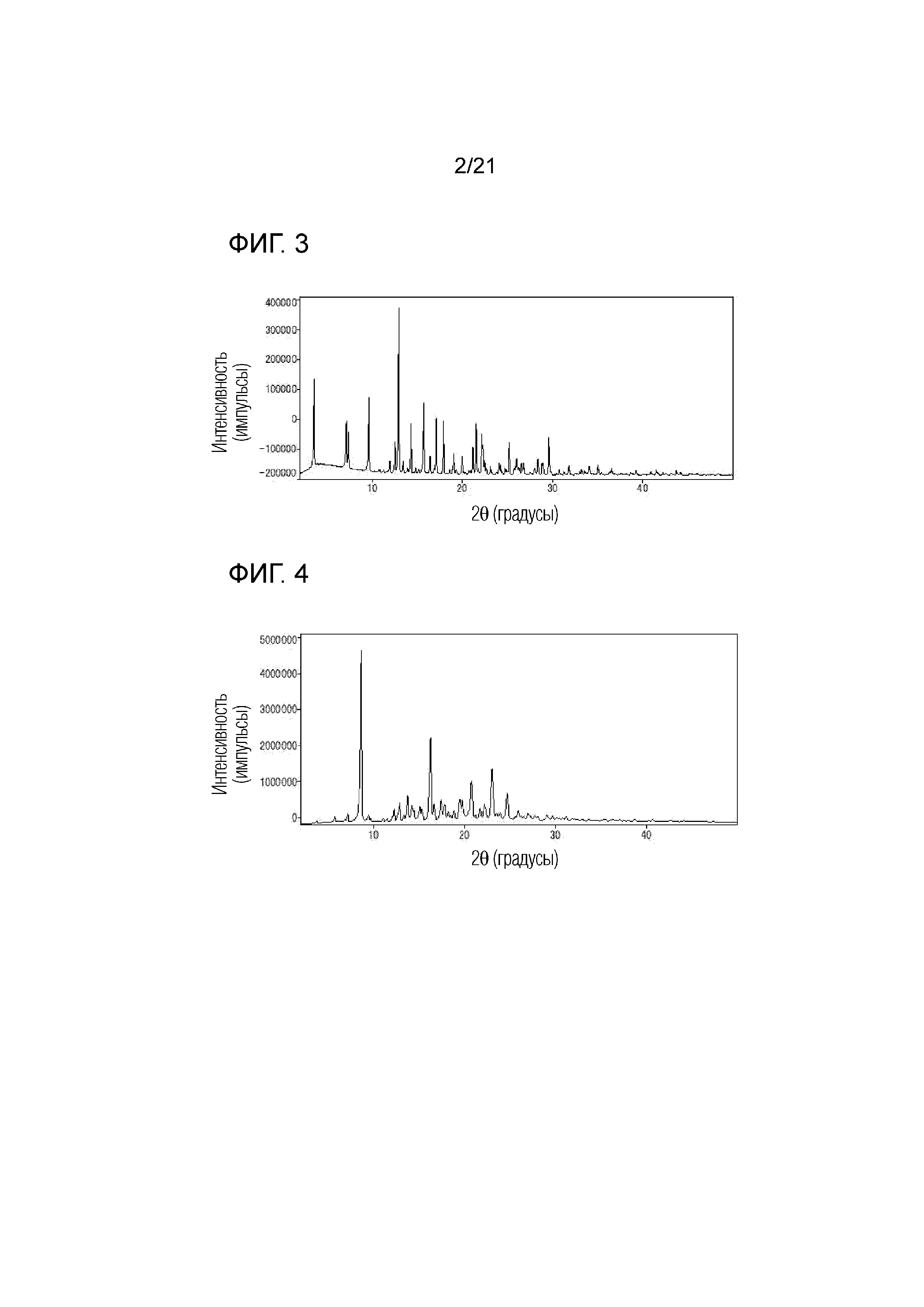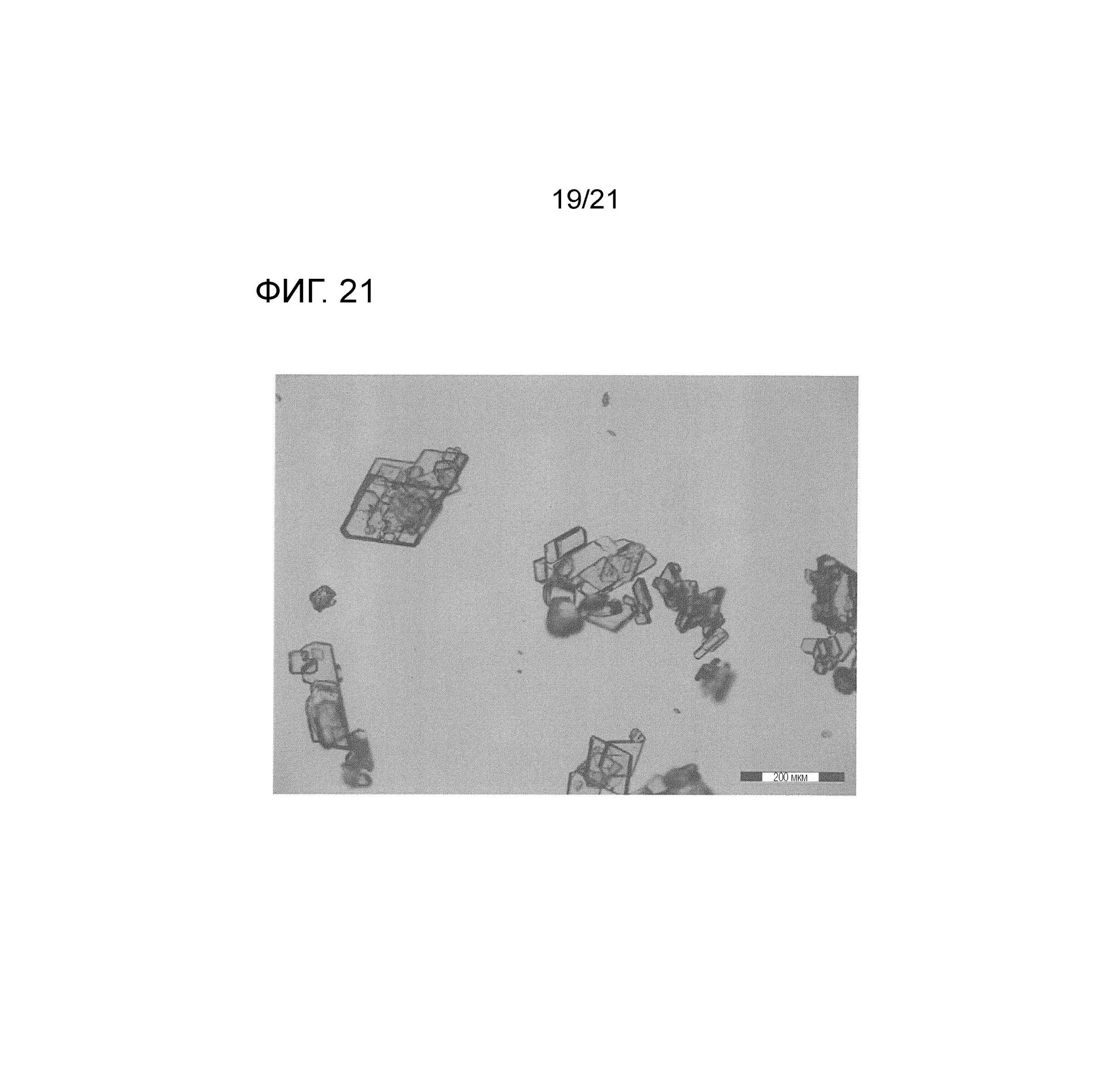 Типичные примеры дифракционных пиков включают 5,8±0,2, 7,2±0,2, 8,6±0,2, 13,8±0,2, 16,3±0,2, 16,7±0,2, 17,4±0,2, 17,7±0,2, 19,5±0,2, 19,8±0,2 и 20,7±0,2, как показано в таблице 4.
