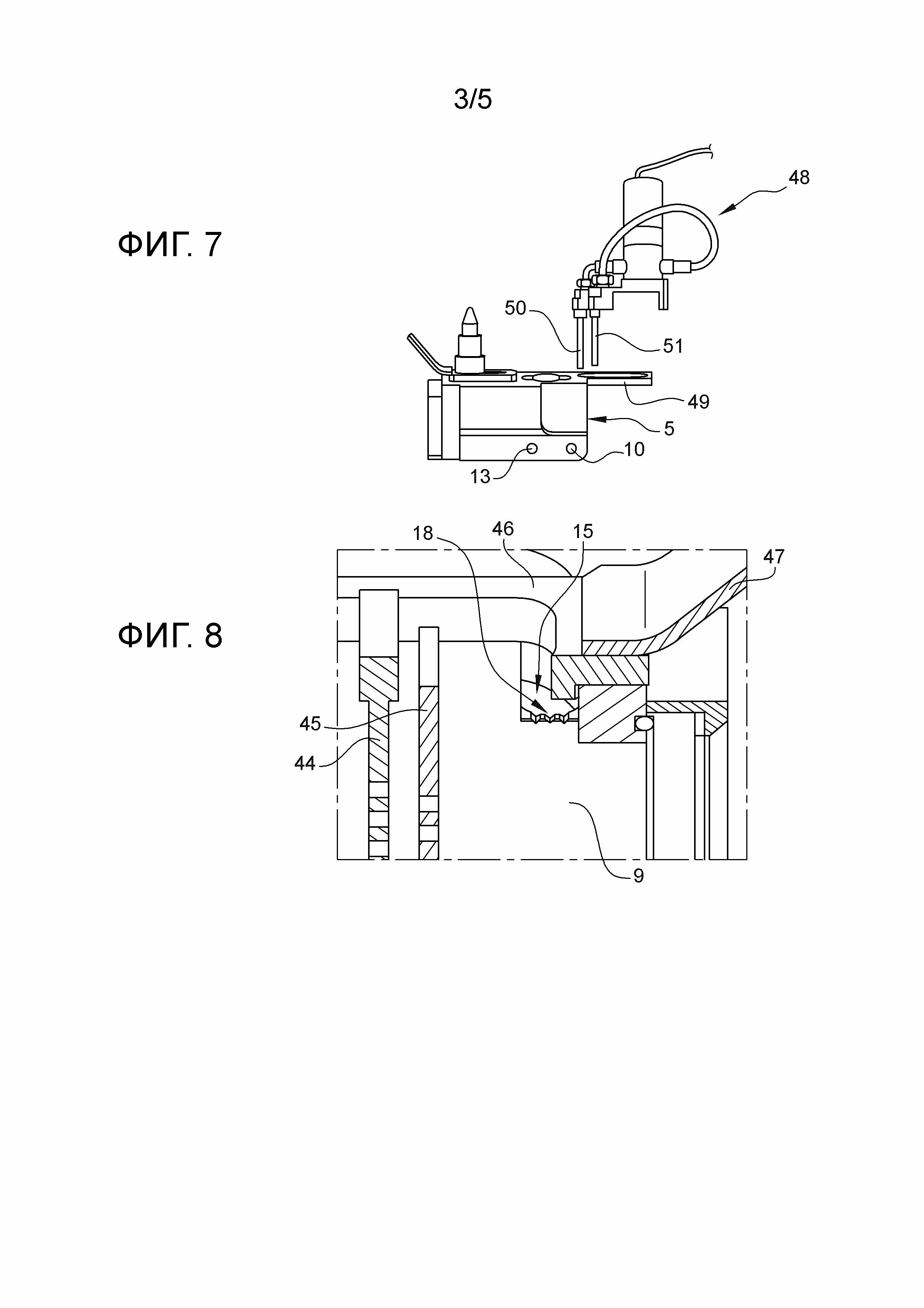 1. Жидкостно-жидкостный экстрактор (60), содержащий полый блок (1) со смесительной камерой (8) и отстойной камерой (9), которые сообщаются, впускные проходы (10, 11) двух жидких фаз, ведущие в смесительную камеру, и выпускные проходы (12, 13) двух жидких фаз, ведущие в отстойную камеру, отличающийся тем, что выпускные проходы снабжены переливами (18, 24) вблизи отстойной камеры (9) и каждый из них выполнен с краем перелива жидких фаз, который имеет неравномерную высоту в форме ломаной линии, ограничивающей множество рельефов. 2. Жидкостно-жидкостный экстрактор по п.1, отличающийся тем, что край (30) перелива по меньшей мере одного из переливов (24) состоит из множества углублений, сужающихся вниз до нулевой ширины и образованных двумя наклонными краями. 3. Жидкостно-жидкостный экстрактор по п.1, отличающийся тем, что край перелива по меньшей мере одного из переливов имеет зигзагообразную форму и состоит из одинаковых и равномерно распределенных рельефов. 4. Жидкостно-жидкостный экстрактор по любому из пп.1-3, отличающийся тем, что один из переливов (18) размещается на стыке между отстойной камерой и выпускным проходом одной из упомянутых жидких фаз, известных как легкая фаза. 5. Жидкостно-жидкостный экстрактор по любому из пп.1-4, отличающийся тем, что другой из переливов (24) размещается во впускном колодце (16) выпускного прохода (14) другой жидкой фазы, известной как тяжелая фаза, на регулируемой высоте во впускном колодце. 6. Жидкостно-жидкостный экстрактор по любому из пп.1-5, отличающийся тем, что выпускные проходы по существу состоят из каналов (14, 15), открытых на верхней стороне (1) блока. 7. Жидкостно-жидкостный экстрактор по п.6, отличающийся тем, что каналы (14, 15) проходят параллельно боковым сторонам (2, 3) блока (1), где выпускные проходы открыты по меньшей мере на половине длины блока, измеренной параллельно боковым сторонам (2, 3), впускные и выпускные проходы тяжелой фазы выходят из блока (1) в местах, выровненных по первой линии, перпендикулярной боковым сторонам, и впускные и выпускные проходы легкой фазы выходят из блока в местах, выровненных по второй линии, перпендикулярной боковым сторонам. 8. Жидкостно-жидкостный экстрактор по п.7, отличающийся тем, что каждый канал (14, 15) имеет ширину, равную по меньшей мере одной трети ширины, измеренной перпендикулярно боковым сторонам (2, 3), отстойной камеры (9). 9. Жидкостно-жидкостный экстрактор по любому из предыдущих пунктов, отличающийся тем, что он содержит третий перелив (38) между смесительной камерой (8) и отстойной камерой (9), снабженный краем перелива для жидких фаз, имеющим неравномерную высоту в виде ломаной линии, ограничивающеймножество рельефов. 10. Жидкостно-жидкостный экстрактор по любому из предыдущих пунктов, отличающийся тем, что он содержит отстойное оборудование (42), которое может погружаться в отстойную камеру путем перемещения и содержащее опускающуюся пластину (43), погружающуюся в отстойную камеру (9) и непрерывную вплоть до защитного расстояния до дна отстойной камеры. 11. Жидкостно-жидкостный экстрактор по п.10, отличающийся тем, что отстойное оборудование (42) содержит коалесцентную сетку (44, 45), погруженную в отстойную камеру (9). 12. Жидкостно-жидкостный экстрактор по п.11, отличающийся тем, что оборудование содержит вторую коалесцентную сетку (45), причем коалесцентные сетки имеют противоположные свойс