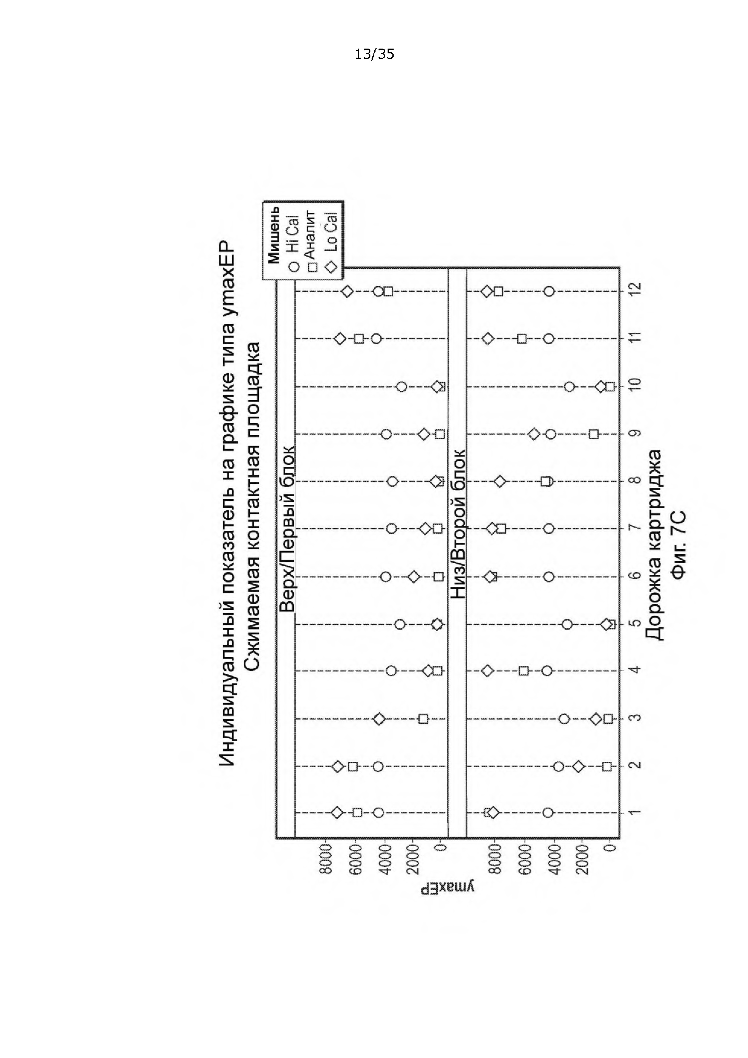 Изобретение относится к микрофлюидному картриджу для повышенной амплификации полинуклеотидсодержащих проб. Техническим результатом является улучшение термической однородности и эффективности амплификации в картридже, анализы демонстрируют улучшенный предел детектирования и улучшенный предел количественного определения. Технический результат достигается микрофлюидным картриджем, имеющим лицевую сторону и противоположную обратную сторону. Картридж содержит первую камеру для амплификации, вторую камеру для амплификации, первое впускное отверстие, расположенное на лицевой стороне и сообщающееся по текучей среде с первой камерой для амплификации, второе впускное отверстие, расположенное на лицевой стороне и сообщающееся по текучей среде со второй камерой для амплификации, и сжимаемую контактную площадку, приклеенную к лицевой стороне. Причем сжимаемая контактная площадка выполнена с возможностью обеспечения более равномерного контакта между микрофлюидным картриджем и множеством контактных источников тепла, тем самым обеспечивая более полную и последовательную передачу тепла к первой камере для амплификации и второй камере для амплификации от множества контактных источников тепла, находящихся в контакте с обратной стороной микрофлюидного картриджа. Причем сжимаемая контактная площадка включает первое окно над первой камерой для амплификации и второе окно над второй камерой для амплификации. Причем первое окно и второе окно выполнены с возможностью пропускания света через лицевую сторону микрофлюидного картриджа в первую камеру для амплификации и вторую камеру для амплификации и из них соответственно. 3 н. и 19 з.п. ф-лы, 56 ил., 1 табл.