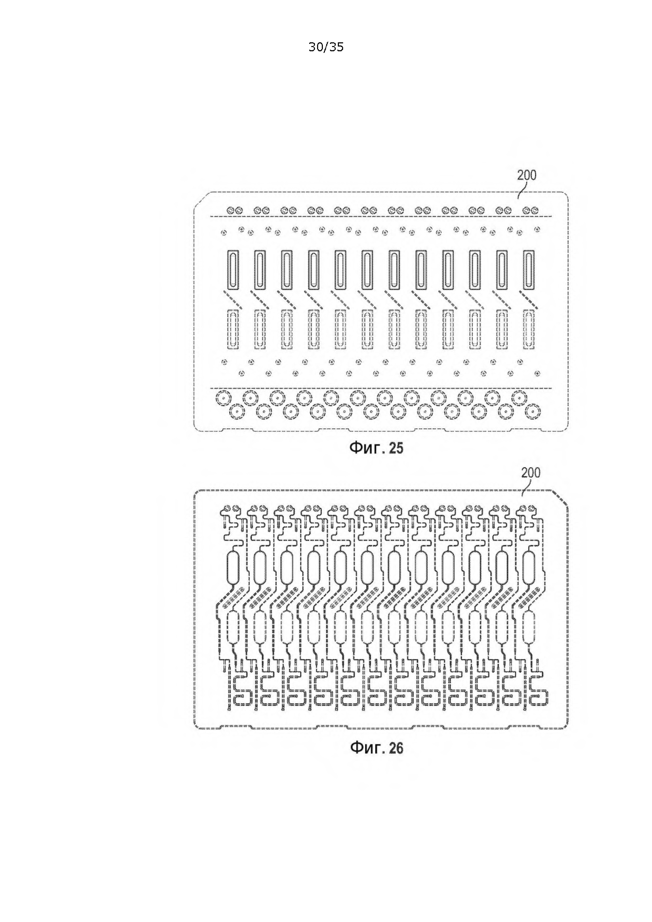 ПЕРЕКРЕСТНАЯ ССЫЛКА НА РОДСТВЕННЫЕ ЗАЯВКИ [0001] Настоящая заявка испрашивает приоритет на основании предварительной заявки на патент США №62/909628, поданной 2 октября 2019 г., которая полностью включена в настоящую заявку посредством ссылки. УРОВЕНЬ ТЕХНИКИ Область техники [0002] Описанная в настоящем документе технология в целом относится к микрофлюидным картриджам. В одном аспекте технология, в частности, относится к сжимаемой контактной площадке, накладываемой на микрофлюидный картридж, при этом микрофлюидный картридж выполнен с возможностью приема и амплификации исследуемых нуклеотидов. В другом аспекте технология относится к микрофлюидному картриджу с реакционными камерами, выполненными с возможностью приема и амплификации больших объемов жидкого элюата из анализируемых проб. Описанные в настоящем документе варианты осуществления картриджей способны амплифицировать исследуемые нуклеотиды из нескольких биологических проб параллельно внутри микрофлюидных каналов в картридже и обеспечивать детектирование этих нуклеотидов. Описание предшествующего уровня техники [0003] Чувствительность анализов в молекулярно-диагностических тестах зависит от нескольких факторов. Эти факторы включают эффективность экстракции при обработке образцов для получения готовых к амплификации проб, эффективность амплификации проб и, среди прочих факторов, термическую однородность, достигаемую в реакционном объеме в процессе амплификации. Увеличение размеров реакционного объема способствует повышению эффективности амплификации, что приводит к улучшению предела детектирования (LOD) и предела количественного определения (LOQ). Улучшение равномерности и распределения теплового контакта между реакционным объемом и источником тепла способствует улучшению термической однородности. [0004] Один рассматриваемый вариант осуществления микрофлюидного картриджа содержит реакционные камеры с реакционным объемом около 4 мкл. Реакционные камеры с такими малыми реакционными объемами обуславливают наличие у картриджа ряда значительных преимуществ. Однако по мере уменьшения объема реакционной камеры могут возникнуть проблемы, связанные с достижением желаемой аналитической чувствительности. В то же время, по мере увеличения объема реакционной камеры для повышения эффективности амплификации и преодоления ограничений направленной доставки могут возникнуть проблемы, связанные с достижением термической однородности. Таким образом, существует потребность в микрофлюидных картриджах, которые решают данные задачи и обеспечивают как улучшенную эффективность амплификации, так и термическую однородность, что приводит к анализам с улучшенным пределом детектирования (LOD) и улучшенным пределом количественного определения (LOQ). [0005] Обсуждение уровня техники настоящей технологии в настоящем описании включено для объяснения контекста настоящей технологии. Не следует воспринимать это как признание того, что какие-либо материалы, на которые делается ссылка, были опубликованы, известны или являются частью общедоступных сведений по состоянию на дату приоритета в отношении любого из пунктов формулы изобретения. [0006] На протяжении всего описания изобретения и формулы изобретения термин «содержать» и его варианты, такие как «содержащий» и «содержит