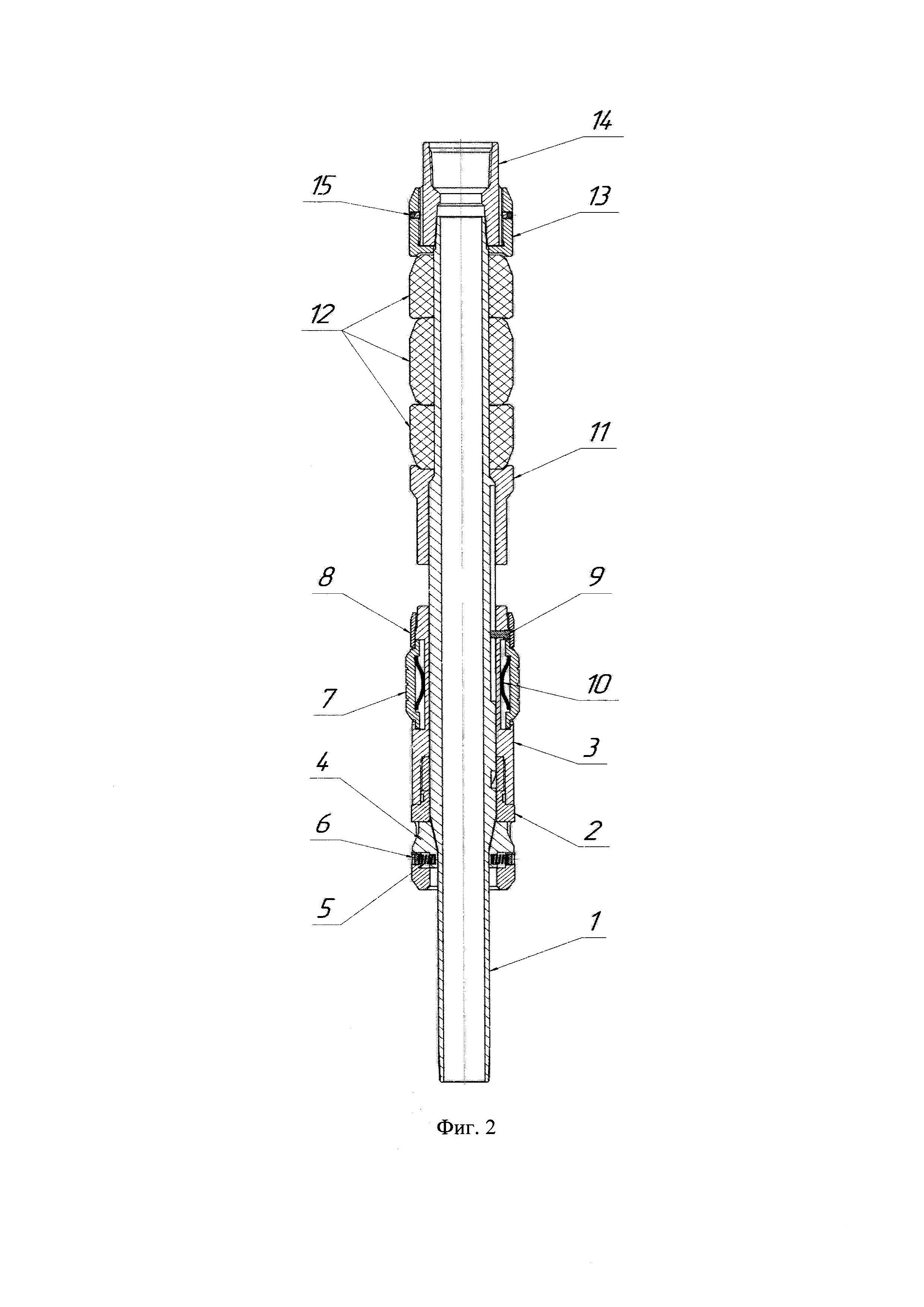 Изобретение относится к технике и технологии пакерующим устройствам для герметизации межтрубного или заколонного пространства нефтяных и газовых скважин. Изобретение относится к нефтегазодобывающей промышленности и может быть использовано при освоении, ремонте и эксплуатации нефтяных и газовых скважин. Известны способы посадки пакера основанные на клиновом разъемном соединении состоящей из деталей: конуса, зубчатых шлипс и пружин. Данное клиновое соединение относится к силовому, которое предназначено для прочного скрепления деталей. Силовое клиновое соединение относится к напряженным, в которых силой Q сообщают клину (шлипсам) и соединяемым деталям предварительный натяг для прочности соединения при постоянном направлении нагрузки. Для надежности самоторможения клиновых соединений в скважине служит уклон и при действии на клиновое соединение постоянной нагрузки при которой шлипсы удерживается в рабочем положении силами трения и врезания зубьев шлипс в стенки колонны. Шлипсы двигаются по конусу и расходятся в радиальном направлении сжимая пружины, приближаются к стенке эксплуатационной колонны скважины до врезания в нее после чего пакер останавливается и фиксируются на стенке эксплуатационной колонны скважины (патент на изобретение RU № 2453679 С1; RU № 2232869 С1). Известен механический пакер содержащий ствол с фигурным пазом на наружной поверхности с продольными короткими и длинными участками, жестко связанную со стволом опору, расположенные под ней с возможностью осевого перемещения относительно ствола уплотнительный элемент, конус и обойму, в которой установлены равномерно по ее окружности зубчатые шлипсы, кольцо, установленное в нижней части обоймы с возможностью радиального вращения относительно обоймы, но жестко связанное с ней в осевом направлении, причем обойма зафиксирована относительно ствола в радиальном направлении, зубчатые шлипсы пружинами поджаты к стволу и расположены таким образом, что при контакте с конусом их наклонные плоские грани параллельны наклонным плоским граням конуса, а направляющий штифт размещен в фигурном пазе, в котором в отличие от прототипа зубчатые шлипсы помещены в кожух, который закреплен на обойме, имеющей в своей средней части пазы, в которых расположены центраторы с пружинами, закрепленные в обойме верхней и нижней крышками, причем под нижней крышкой расположено разрезное кольцо, на котором установлен направляющий штифт (патент на изобретение RU № 2453679 С1). Известен механический пакер содержащий ствол с фигурным пазом на наружной поверхности с продольными коротким и длинным участками. Со стволом жестко связана опора, под которой расположен уплотнительный элемент. Под уплотнительным элементом с возможностью осевого перемещения относительно ствола установлен конус с равномерно расположенными по его окружности наклонными плоскими гранями, зафиксированный относительно ствола в радиальном направлении с помощью шпонки. На стволе с возможностью осевого перемещения относительно него установлена обойма с равномерно расположенными в ней по окружности зубчатыми шлипсами, на которых выполнены наклонные плоские грани. Зубчатые шлипсы пружинами поджаты к стволу относительно обоймы и расположены таким образом, что при контакте с конусом их наклонные плоские грани п