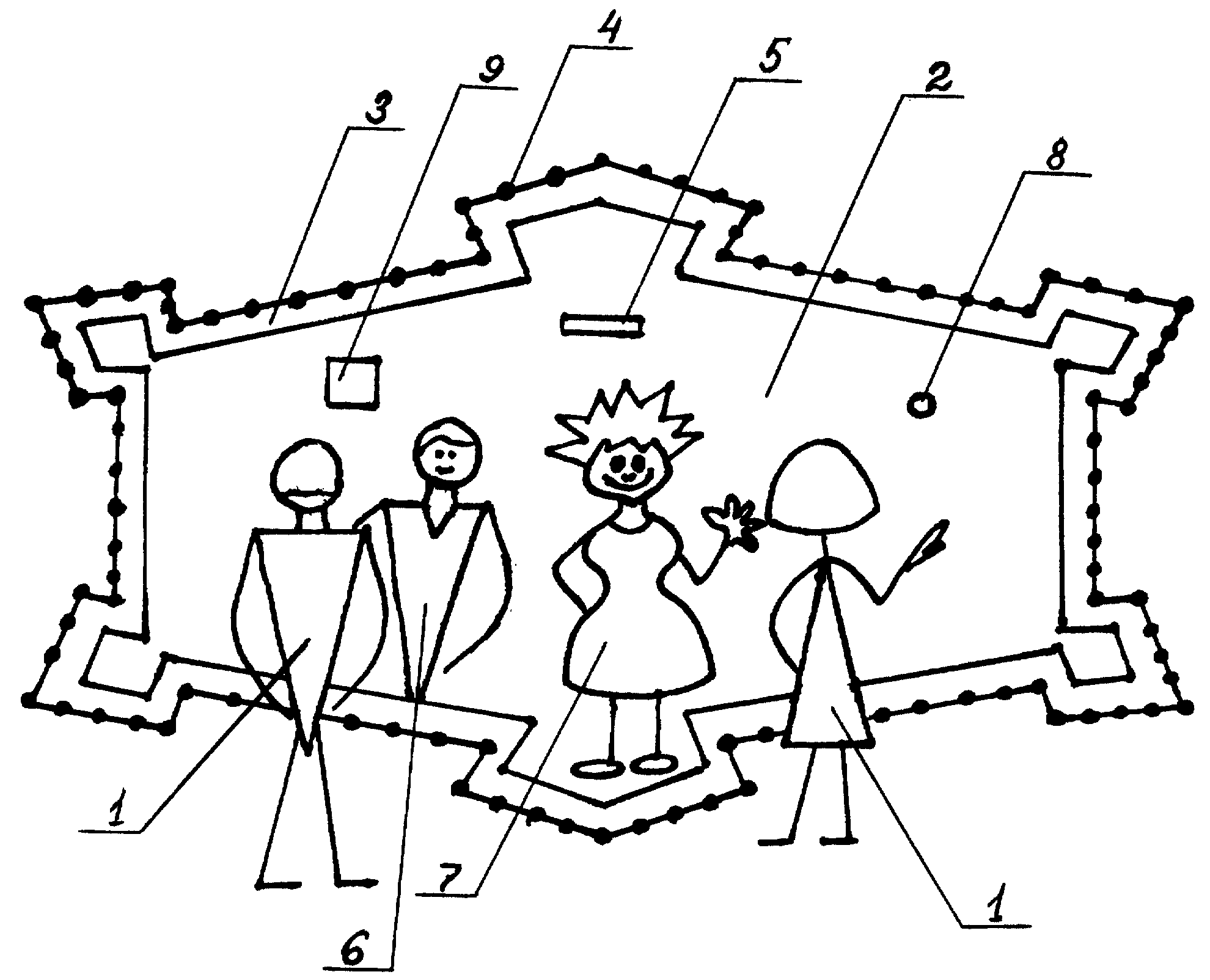 1. Рекламное устройство, установленное в поле зрения потребителя и включающее подложку с отражающей поверхностью, отличающееся тем, что подложка выполнена в виде рекламных символов, по контурам которых расположены средства их контрастного выделения. 2. Рекламное устройство по п.1, отличающееся тем, что рекламные символы имеют вид товарного знака, элемента товарного знака. 3. Рекламное устройство по п.2, отличающееся тем, что рекламные символы представлены в любом сочетании алфавитного, цифрового, графического вида. 4. Рекламное устройство по п.1, отличающееся тем, что рекламные символы выполнены в виде изображений продукции или любого объекта, тематически связанного с продукцией. 5. Рекламное устройство по п.1, отличающееся тем, что средства контрастного выделения рекламных символов представляют собой свет, цвет среду и способы их представления потребителю, а также любые сочетания из них. 6. Рекламное устройство по п.1, отличающееся тем, что подложка с отражающей поверхностью представляет собой конструктивные элементы строительных объектов, например, окна, двери, арки, ворота, секции забора. 7. Рекламное устройство по п.1, отличающееся тем, что подложка с отражающей поверхностью представляет собой объект архитектуры малых форм, например, бассейн, рекламные щиты, тумбы. 8. Рекламное устройство по п.1, отличающееся тем, что подложка с отражающей поверхностью представляет собой объект полиграфической продукции, например, листовки, плакаты, афиши, открытки, буклеты, календари. 9. Рекламное устройство по п.1, отличающееся тем, что подложка с отражающей поверхностью представляет собой средство идентификации и индивидуализации, например, информационные карточки из различных материалов, в том числе пластиковые банковские карточки, визитные карточки, бейджи, лотерейные билеты. 10. Рекламное устройство по п.1, отличающееся тем, что подложка с отражающей поверхностью представляет собой упаковочную продукцию, например, упаковочные листы, пакеты, сумки, коробки, шкатулки, бутылки, флаконы. 11. Рекламное устройство по п.1, отличающееся тем, что подложка с отражающей поверхностью представляет собой декоративные элементы одежды, головных уборов, ювелирных изделий и бижутерии, например, пуговицы, кулоны, серьги, кольца, браслеты, короны, диадемы. 12. Рекламное устройство по п.1, отличающееся тем, что подложка с отражающей поверхностью представляет собой предметы домашней утвари, например, посуда, полотенца, ковры, паласы. 13. Рекламное устройство по п.1, отличающееся тем, что подложка с отражающей поверхностью представляет собой приборы наружного наблюдения или наружной установки, например, флюгер, часы, локаторы, антенны-тарелки. 14. Рекламное устройство по п.1, отличающееся тем, что в состав устройства включена аудиоаппаратура записывающая и воспроизводящая. 15. Рекламное устройство по п.1, отличающееся тем, что отражающая поверхность подложки выполнена создающей отображение потребителя. 16. Рекламное устройство по п.1, отличающееся тем, что отражающая поверхность подложки выполнена создающей комичное отображение потребителя. 17. Рекламное устройство по пп.15 и 16, отличающееся тем, что в состав устройства включена видеоаппаратура записывающая и воспроизводящая изображение потребителя или его комичное отображение. 18. Рекламное устройство по пп.15 и 16, от