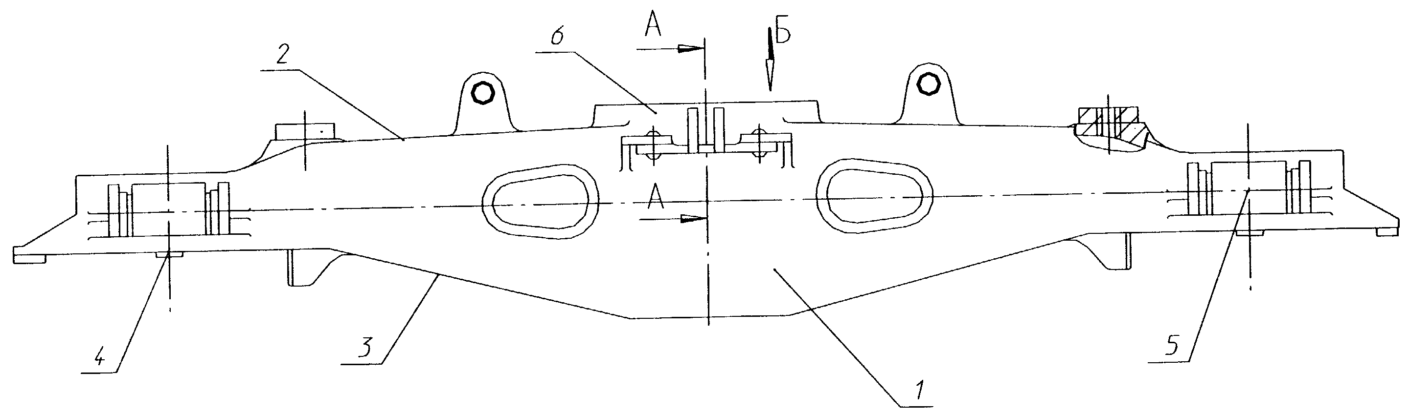 1. Надрессорная балка, выполненная в виде бруса замкнутого коробчатого сечения, равного сопротивлению изгиба, состоящего из опорных поверхностей, расположенных по краям нижнего пояса, соединенного стенками с верхним поясом, в средней части которого выполнен подпятник с установленной чашей из износостойкого материала, отличающаяся тем, что по краям буртов чаши выполнены вырезы, заплавляемые материалом, сходным по характеристикам с материалом надрессорной балки, а в местах соединения днища и бурта чаши выполнены отверстия, оси которых не совпадают с осями вырезов по краям буртов чаши. 2. Надрессорная балка по п.1, отличающаяся тем, что вырезы по краям буртов и отверстия на стыке бурта и днища равномерно распределены по всему диаметру чаши, с равным смещением относительно друг друга.