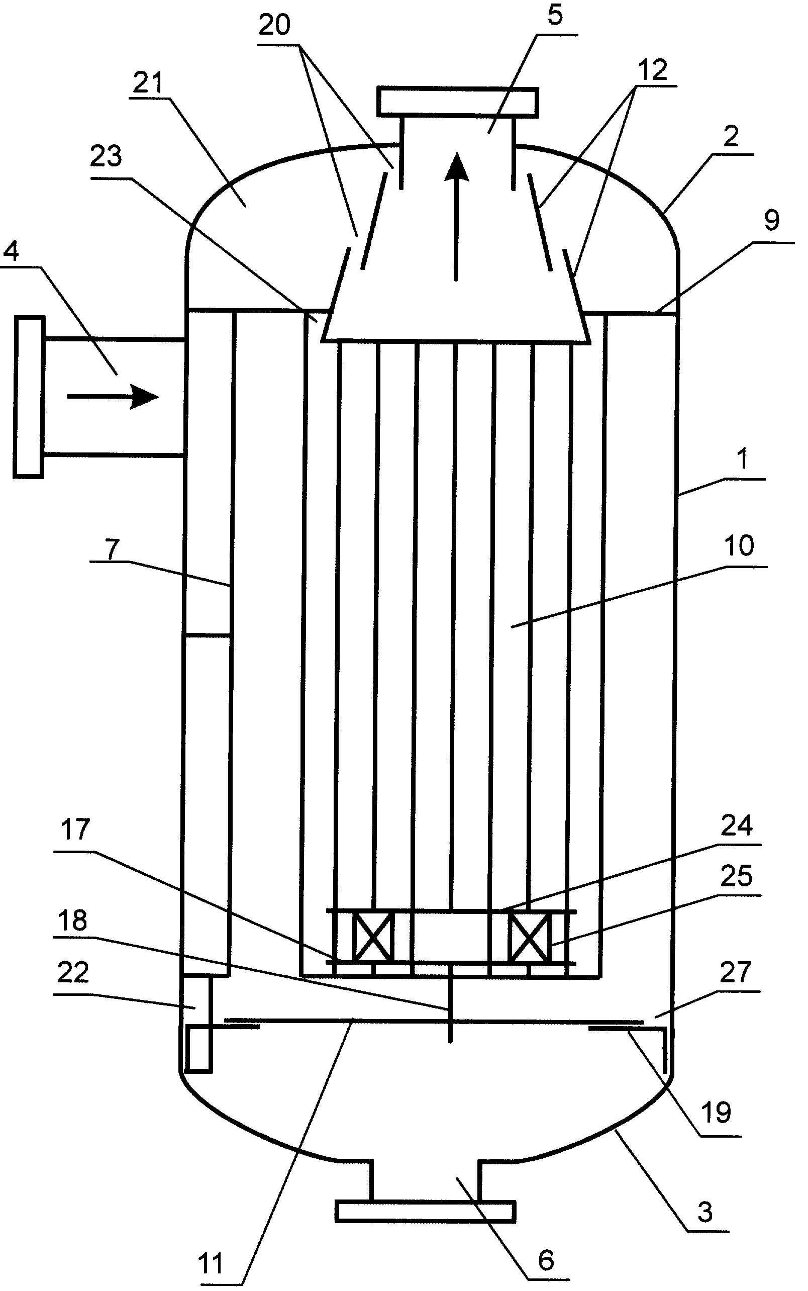 Сливной патрубок 6 расположен в нижнем днище 3 сепаратора.