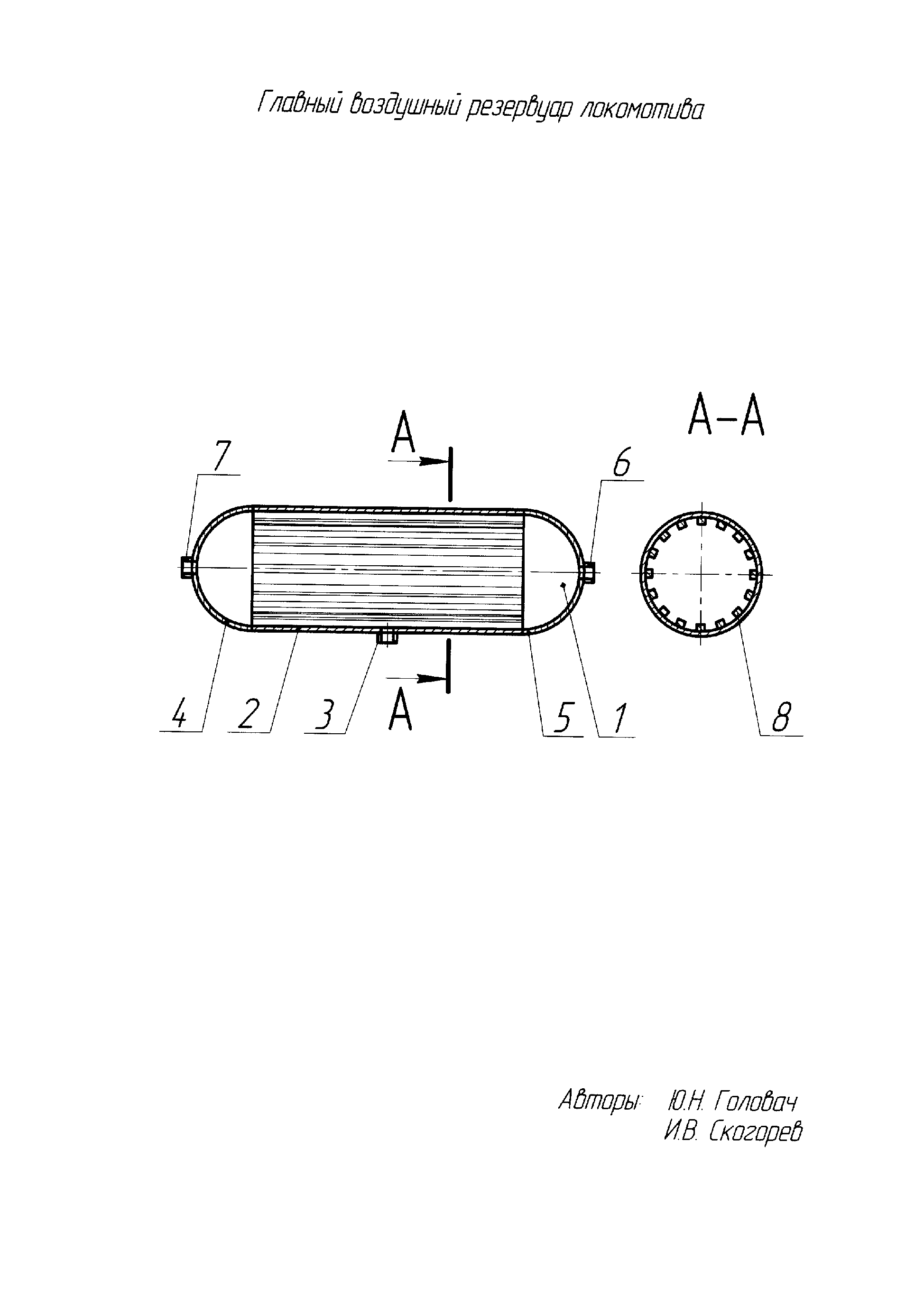 Использование: в электровозо- и тепловозостроении. Решаемая задача: интенсификация процесса охлаждения сжатого воздуха в главных воздушных резервуарах локомотива. Сущность полезной модели: главный воздушный резервуар локомотива, представляющий собой полый горизонтальный сосуд, состоящий из цилиндрического корпуса с бобышкой в нижней части для крепления клапана продувки и боковин с каждой стороны корпуса, имеющих в центре бобышки для подсоединения трубопроводов, при этом резервуар снабжен на внутренней поверхности корпуса ребрами. 1 илл.