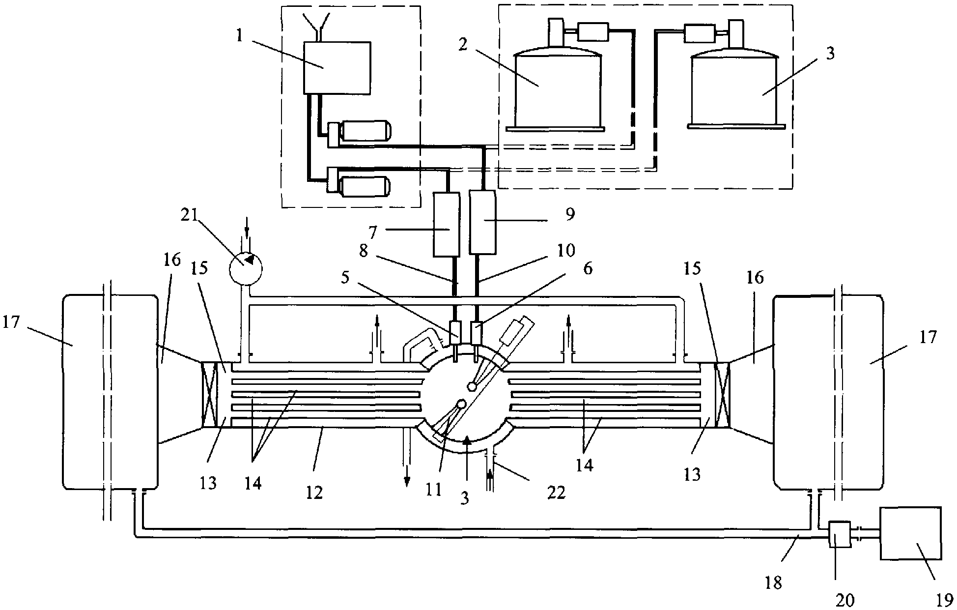 1. Детонационная энергетическая установка, содержащая камеру сгорания, представляющую собой полый корпус, устройство дозированного ввода топлива в полость корпуса, устройство дозированной подачи окислителя в полость корпуса и искрообразующее устройство для поджигания топливной смеси, сопло, сообщенное с ресивером со стороны большего сечения, газоводы, сообщающие камеру сгорания с ресивером, и устройства, обеспечивающие однонаправленное перемещение газовых потоков, при этом устройства дозированного ввода топлива и дозированной подачи окислителя сообщены каналами с источниками водорода и кислорода соответственно, отличающаяся тем, что она снабжена электроискровыми разрядниками, смонтированными в каналах сообщения источников водорода и кислорода соответственно с устройствами дозированного ввода топлива и дозированной подачи окислителя для разложения водорода на атомы на участке ввода топлива в устройство дозированного ввода топлива и образования в кислороде озона на участке ввода окислителя в устройство дозированной подачи окислителя, при этом установка выполнена с двумя оппозитно расположенными и прикрепленными к корпусу камеры сгорания газоводами, каждый из которых представляет собой замкнутую оболочку, разделенную на две камеры, и внутри одной камеры из которых размещены параллельно расположенные трубки, сообщенные с одного конца с полостью корпуса камеры сгорания, а с другой стороны - с другой камерой в этой оболочке, которая через устройство, обеспечивающее однонаправленное перемещение газовых потоков, образованных в результате взрыва в камере сгорания, сообщена с соответствующим ресивером, а ресиверы обоих газоводов сообщены между собой и с магистралью выдачи водяного газа под давлением источнику потребления. 2. Детонационная энергетическая установка по п.1, отличающаяся тем, что в качестве источника водорода и кислорода использовано устройство электролитического разделения воды на водород и кислород. 3. Детонационная энергетическая установка по п.1, отличающаяся тем, что в качестве источника водорода и кислорода использованы баллоны с водородом и с кислородом. 4. Детонационная энергетическая установка по п.1, отличающаяся тем, что в качестве источника водорода и кислорода использована система централизованной подачи водорода и кислорода.