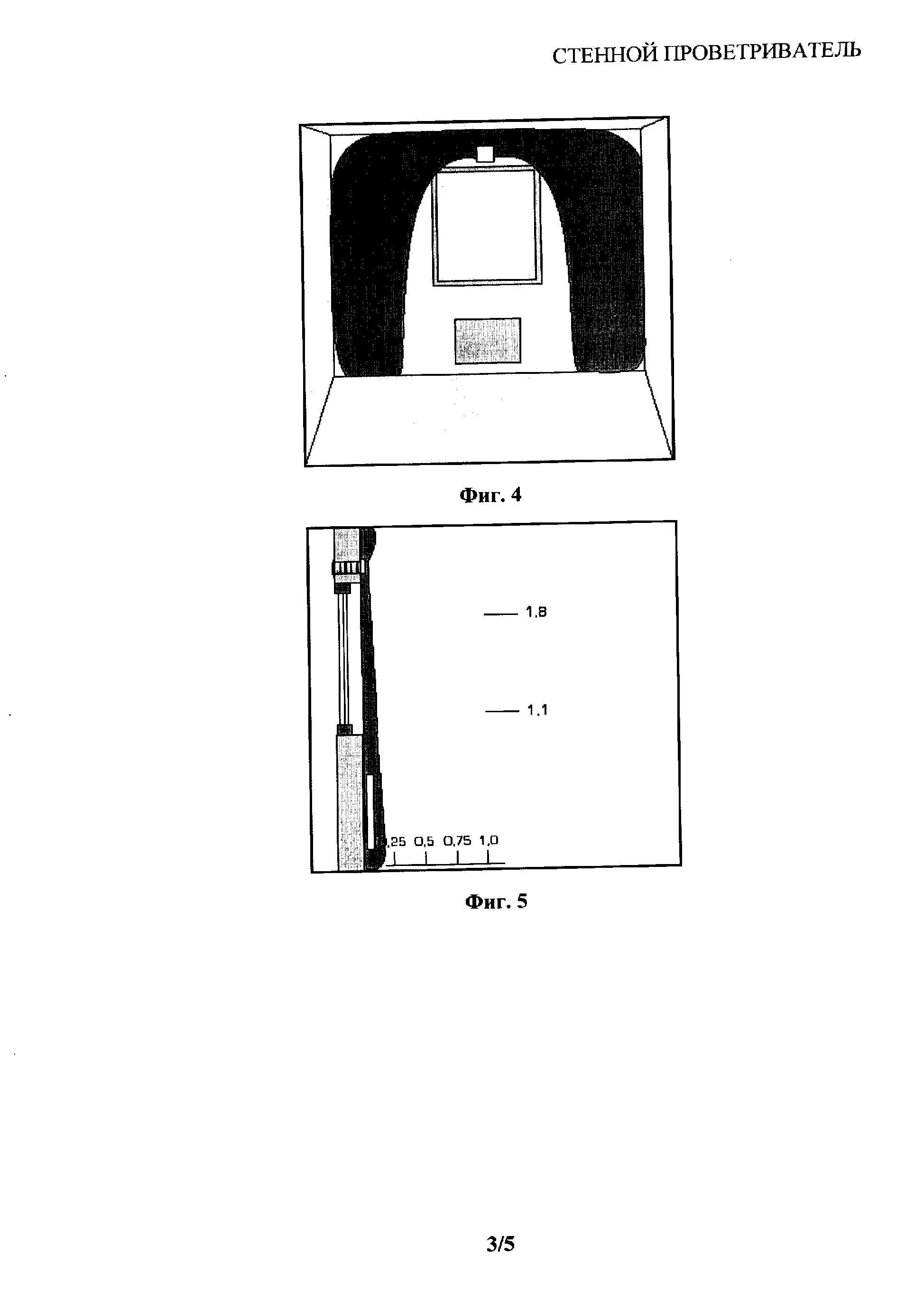Данная полезная модель относится к вентиляции. В частности, к системе вентиляции, используемой в качестве элемента вентиляции помещения за счет естественного притока воздуха, когда существует потребность в регулированном введении притока воздуха и/или естественного увлажнения воздуха в помещениях или наоборот, когда существует потребность в регулировании внутреннего климата помещения и/или естественного снижения уровня лишней влаги воздуха в помещениях. Данная полезная модель раскрывает стенной проветриватель, состоящий из внешней части, которая при монтаже находится с внешней стороны здания, стенного элемента, представляющего собой трубчатый вентиляционный канал, и внутренней части, которая при монтаже находится в середине помещения, и имеет регулирующий механизм для управления прохождения воздуха через проветриватель. Перечень фигур На Фиг.1 изображен стенной проветриватель, в растянутой изометрии, в котором: 1. - внутренняя крышка проветривателя; 2. - фильтр; 3. - регулировочный клапан; 4. - внутренняя труба; 5. - внешняя труба; 6. - внешняя крышка проветривателя; 7. - внешняя решетка; 8. - элемент управления. На Фиг.2-8 изображены схемы распределения притока воздуха в помещении. На Фиг.9 приведен чертеж стенного проветривателя и определены основные размеры. Детальное описание Из уровня техники известно много разнообразных технических решений, разнообразных форм и конструкций, которые предназначены для естественной вентиляции жилых и нежилых помещений. Побуждением к поиску оптимальных решений систем вентиляция являются попытки строить помещения таким образом, чтобы обеспечить максимальное энергосбережение. Тем не менее, увеличение коэффициента энергосбережения здания приводит к пропорциональному уменьшению саморегулирования климата в середине помещения. Другими словами, в таких помещениях вследствие использования центрального отопления, работы значительного количества бытовых приборов и других современных технологических факторов происходит значительное осушение воздуха в середине помещения, создавая тем самым приемлемые условия для развития аллергических заболеваний и осложнений или заболеваний дыхательных путей. Весной и в летнее время энергосберегающие здания плохо отводят повышенную влажность воздуха, затрудняя естественную циркуляцию воздуха в середине помещения, тем самым, создавая приемлемые условия для развития грибков и вредных микроорганизмов. Приведенные выше утверждения являются давно известными человечеству. Поэтому во многих развитых странах медицинские учреждения рекомендуют часто проветривать помещения. В основном, проветривание происходит за счет открытия окон, тем самым, обеспечивая естественную циркуляцию воздуха в середине помещения. Однако, проветривание за счет открытия лишь окон создает много неудобств. В частности, зимой, открытое окно, за счет значительной площади, значительно охлаждает помещения, а летом - нагревает. Поэтому работа над созданием систем проветривания ведется значительное время. В частности, в патенте US, 2703911, 1955 описывается простая конструкция проветривателя. Однако, основной функцией этого устройства является обеспечение выравнивания микроклимата в межстенном пространстве. Однако, предполагается использование этого решения и для вентиляции по
