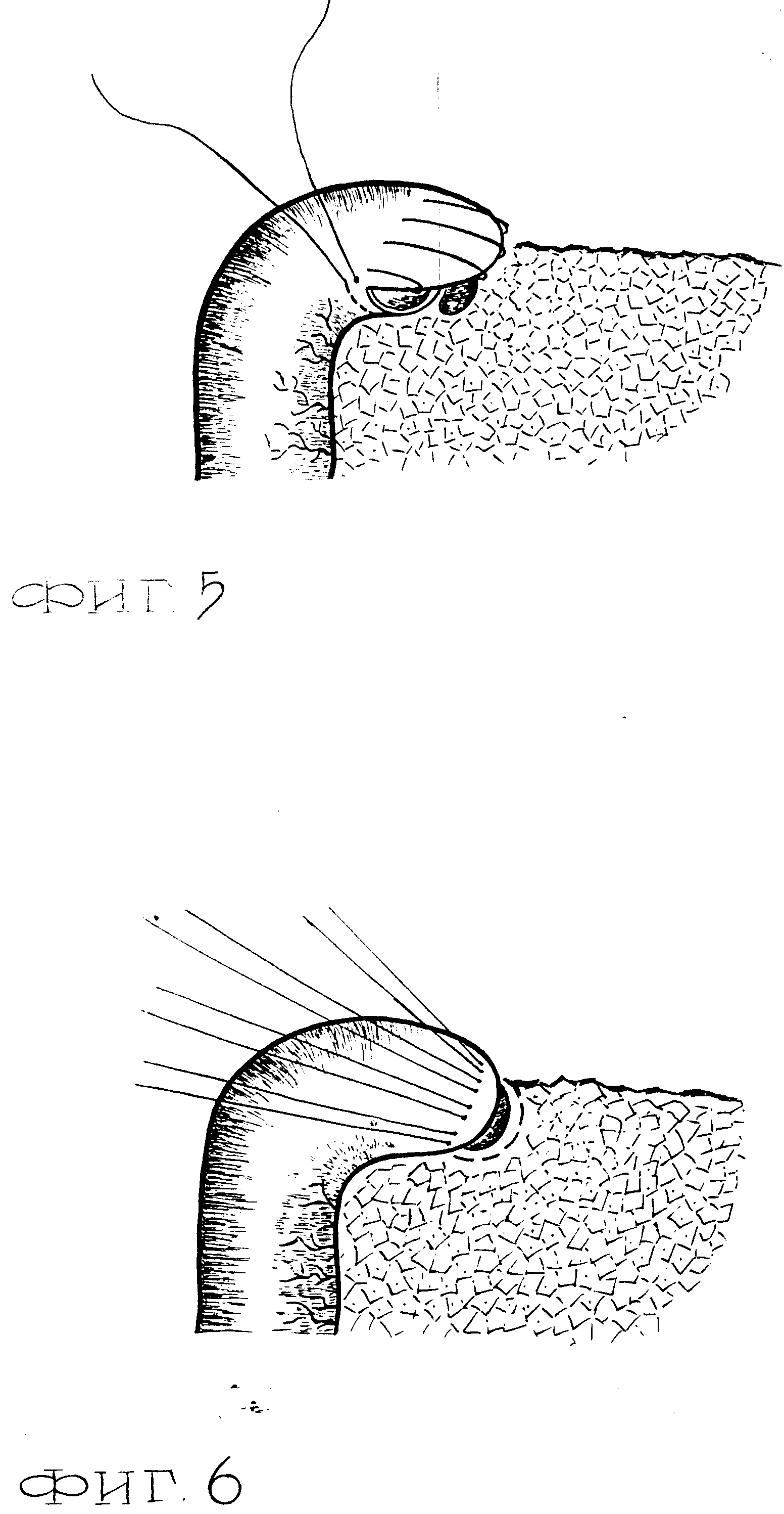 обладающего сходными признаками, что позволяет сделать вывод о соответствии данного технического решения критерию "существенные отличия". Изобретение поясняется схемами (фиг.1-6). Описание рисунков: на фиг.1 изображена культя двенадцатиперстной кишки после продольного ее рассечения до уровня дистального края язвы. Рассечение производят электроножом. На переднюю