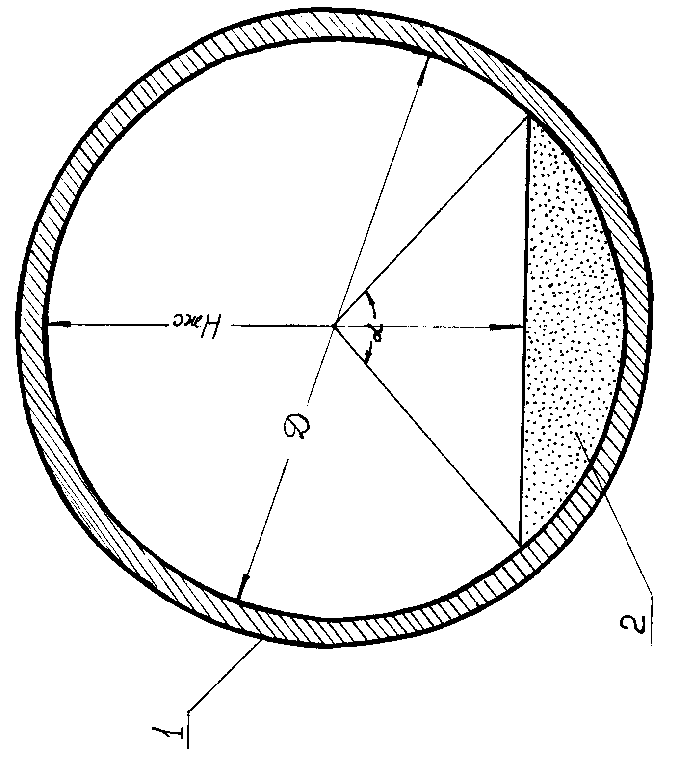 α центральный угол, под которым виден осадок; Hжс высота "живого сечения" трубопровода;