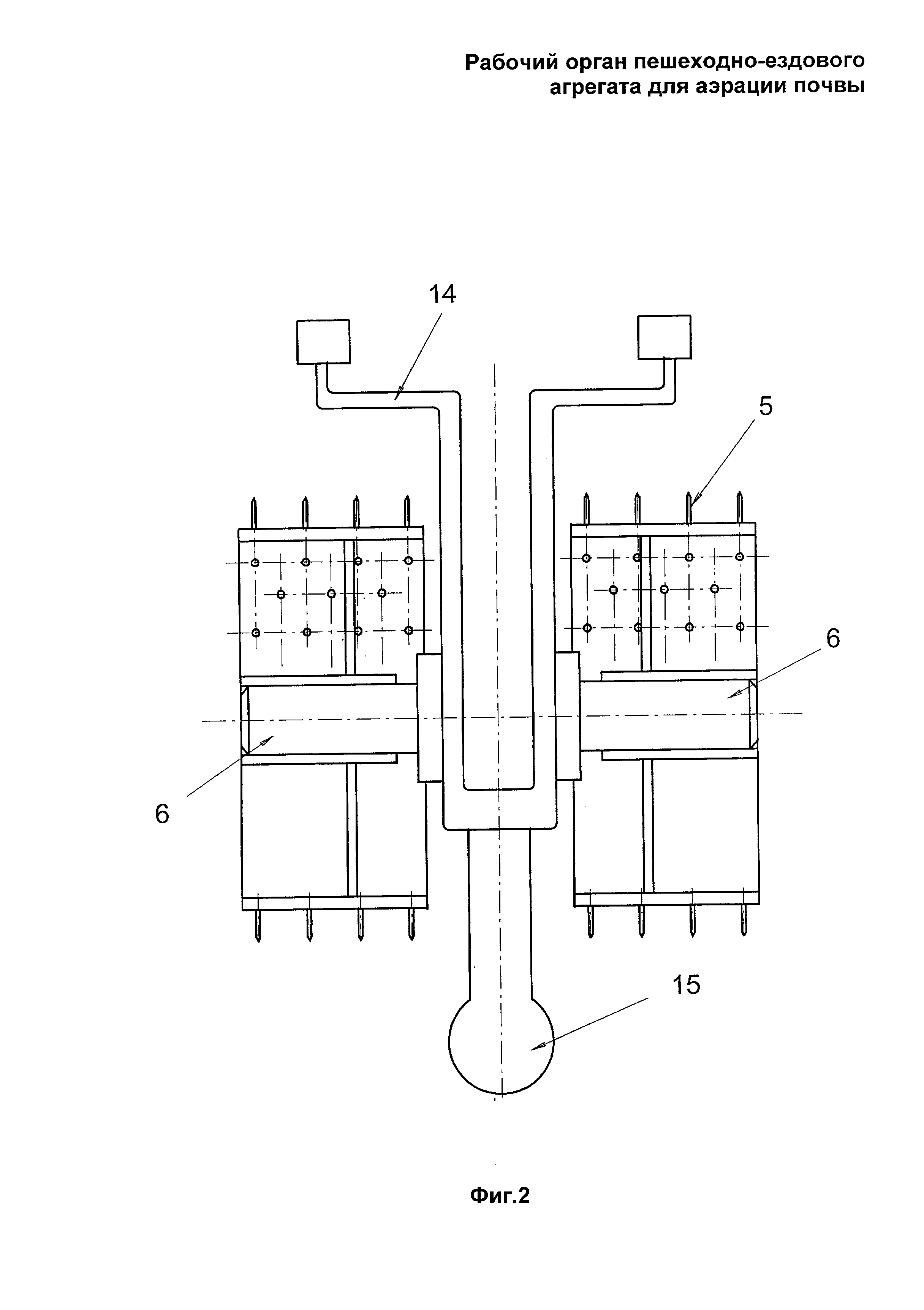 На Фиг.1 изображен рабочий орган пешеходно-ездового агрегата для аэрации почвы;