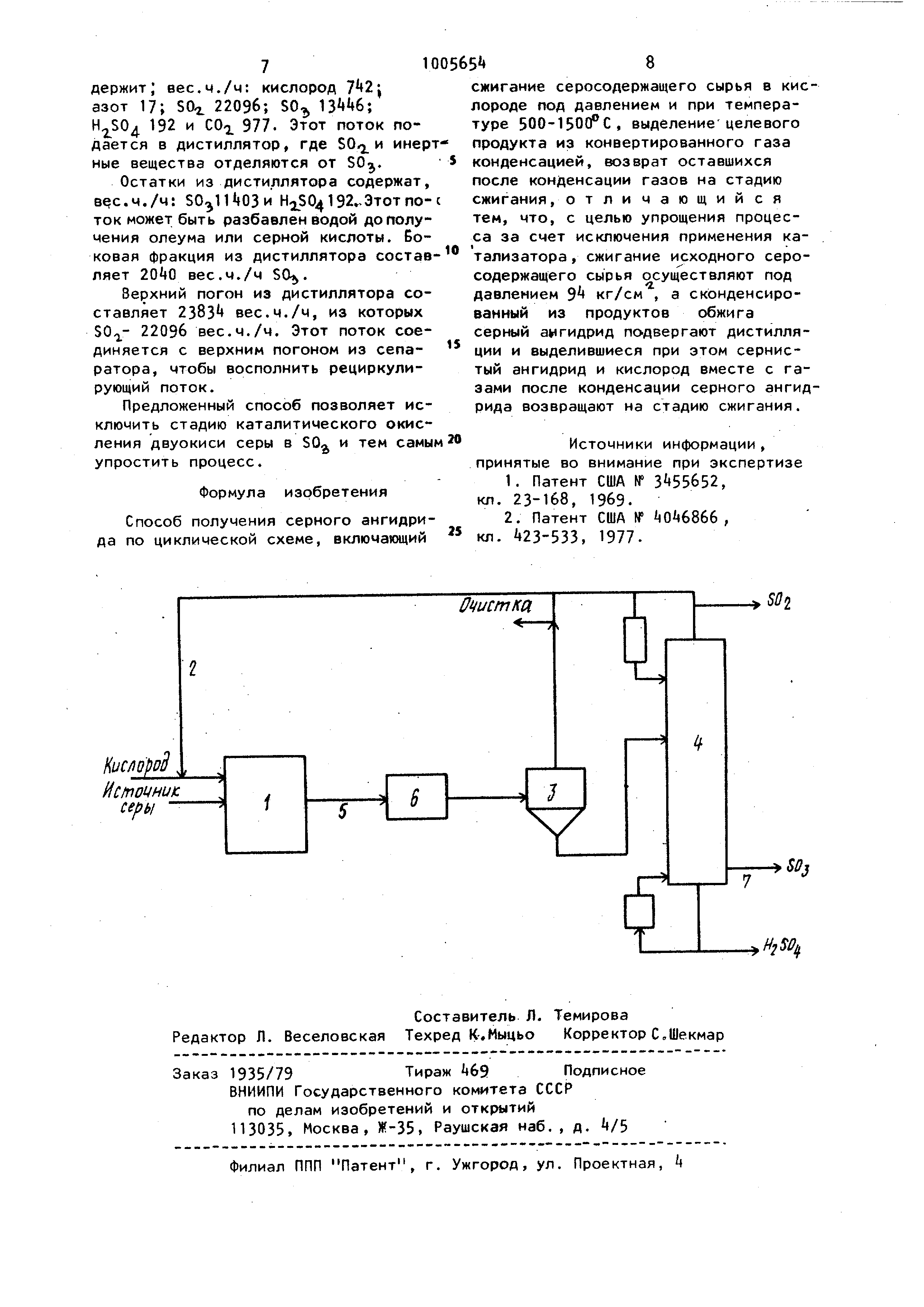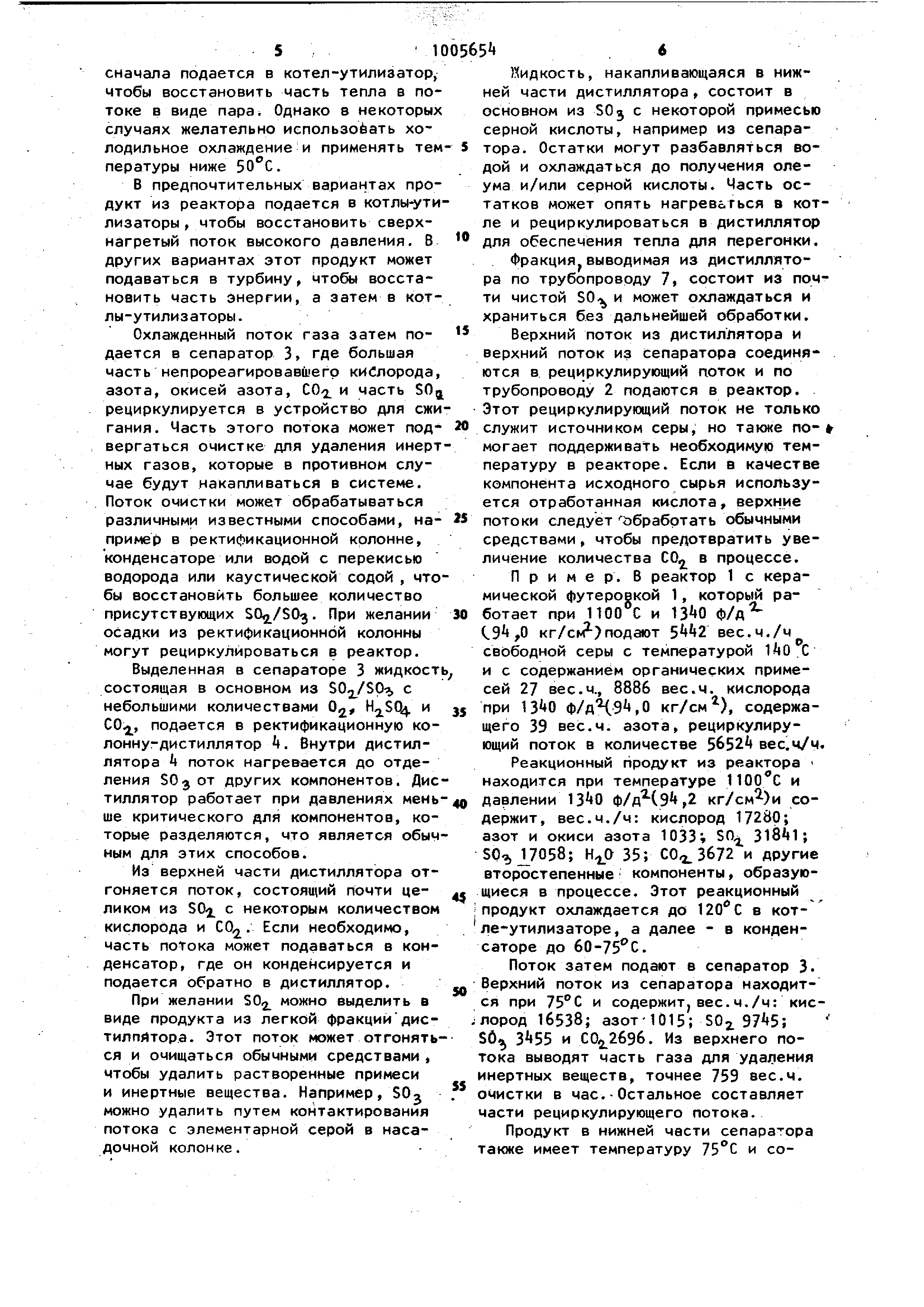последующим окислением полученной двуокиси серы на катализаторе 1. Наиболее близким к предложенному по технической сущности и достигаемому