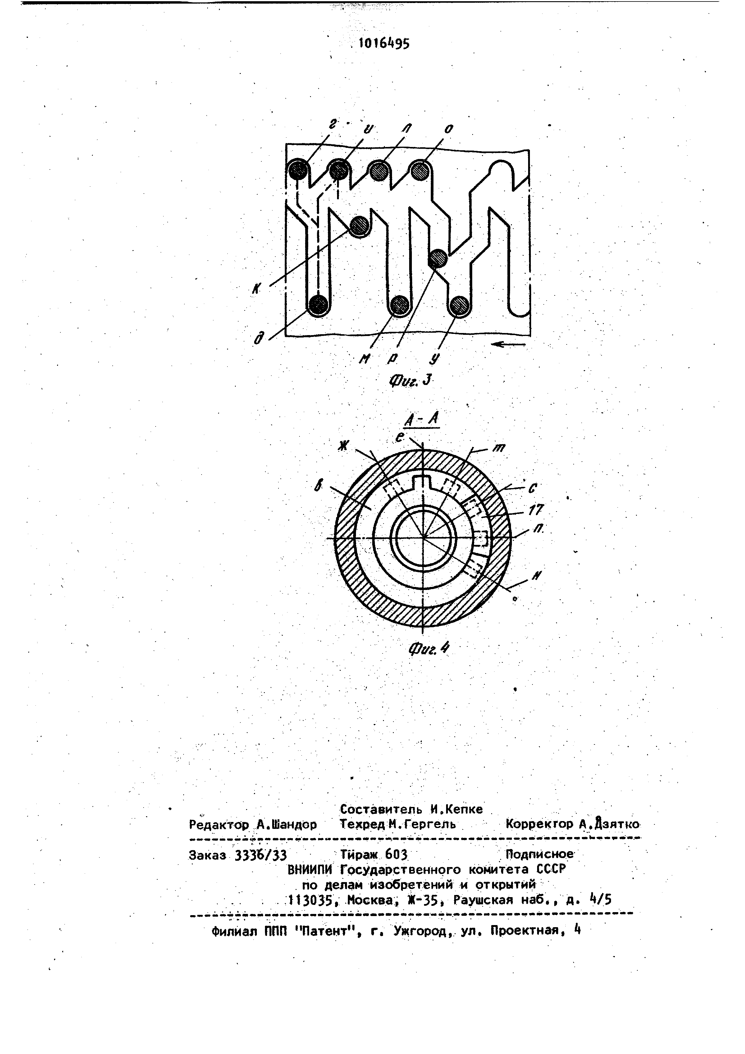 ной относительно корпуса f с помощью уплотнений 12. Золотник 10 два ряда радиальных циркуляционных