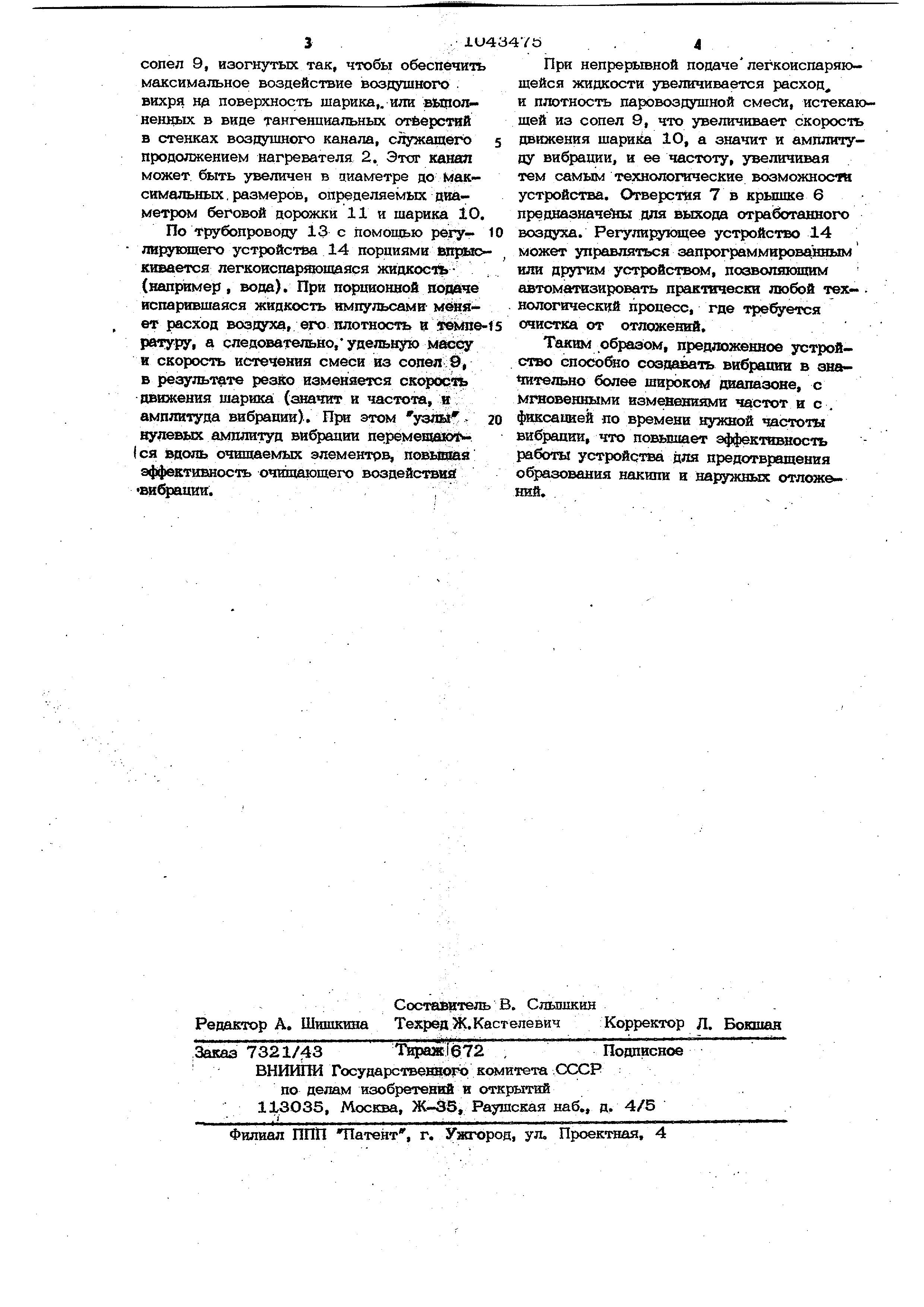 ся вдоль очищаемых элементов, повьшая аффектиЕиость очищающего воздейст;вий вибрации. При непрерьюной подачелегкоиспарягощейся жидкости увеличивается расход