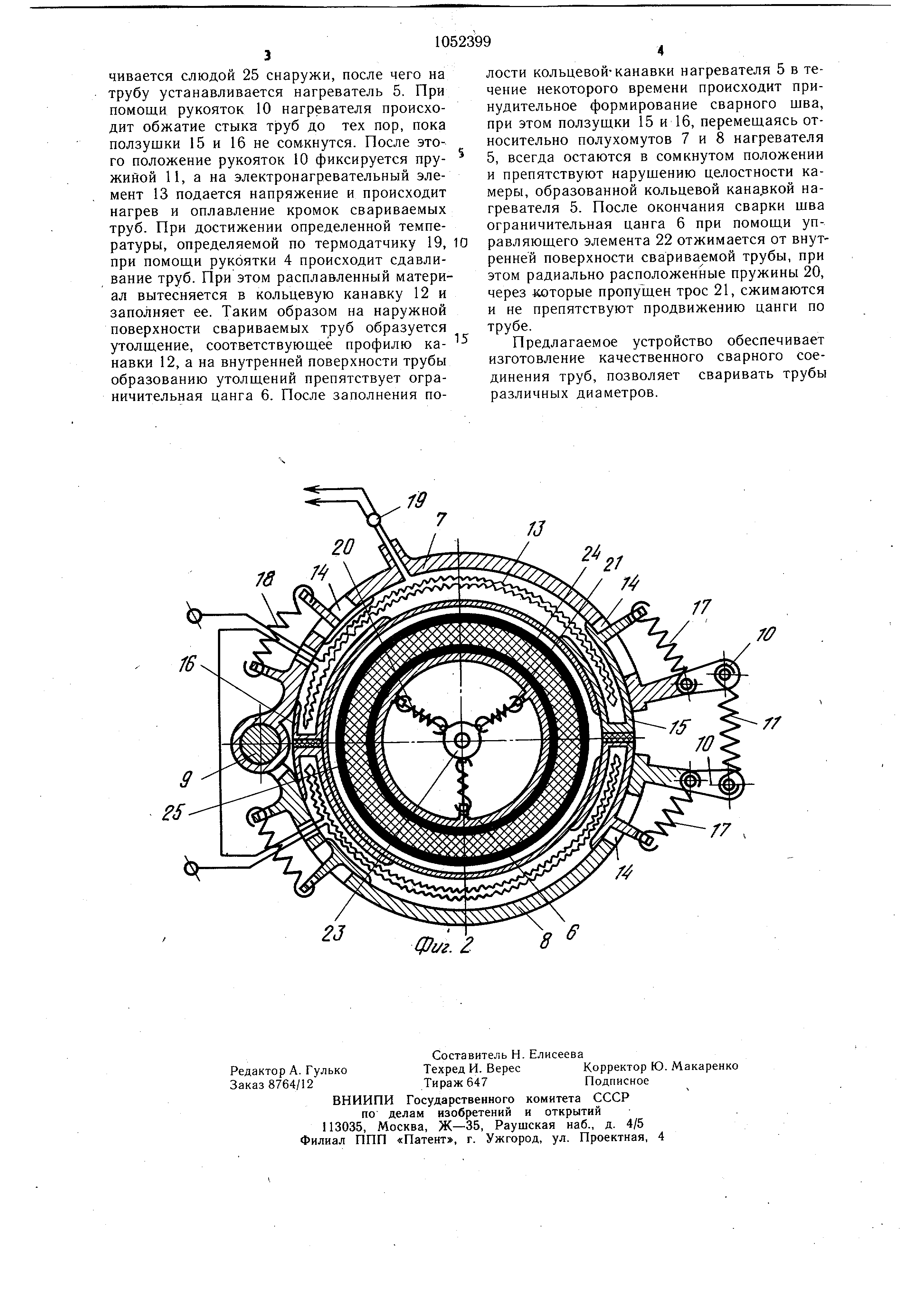 Предлагаемое устройство обеспечивает изготовление качественного сварного соединения