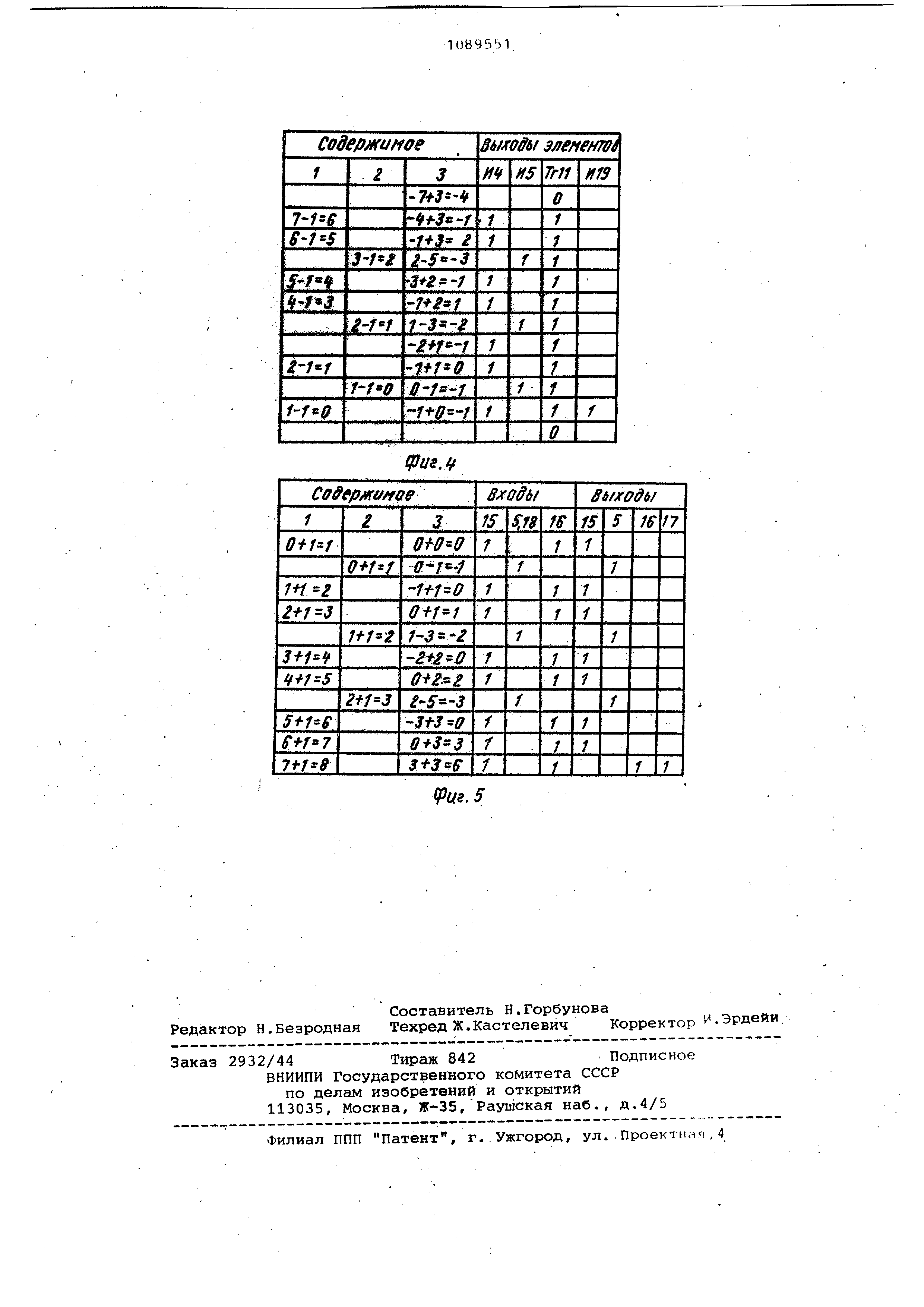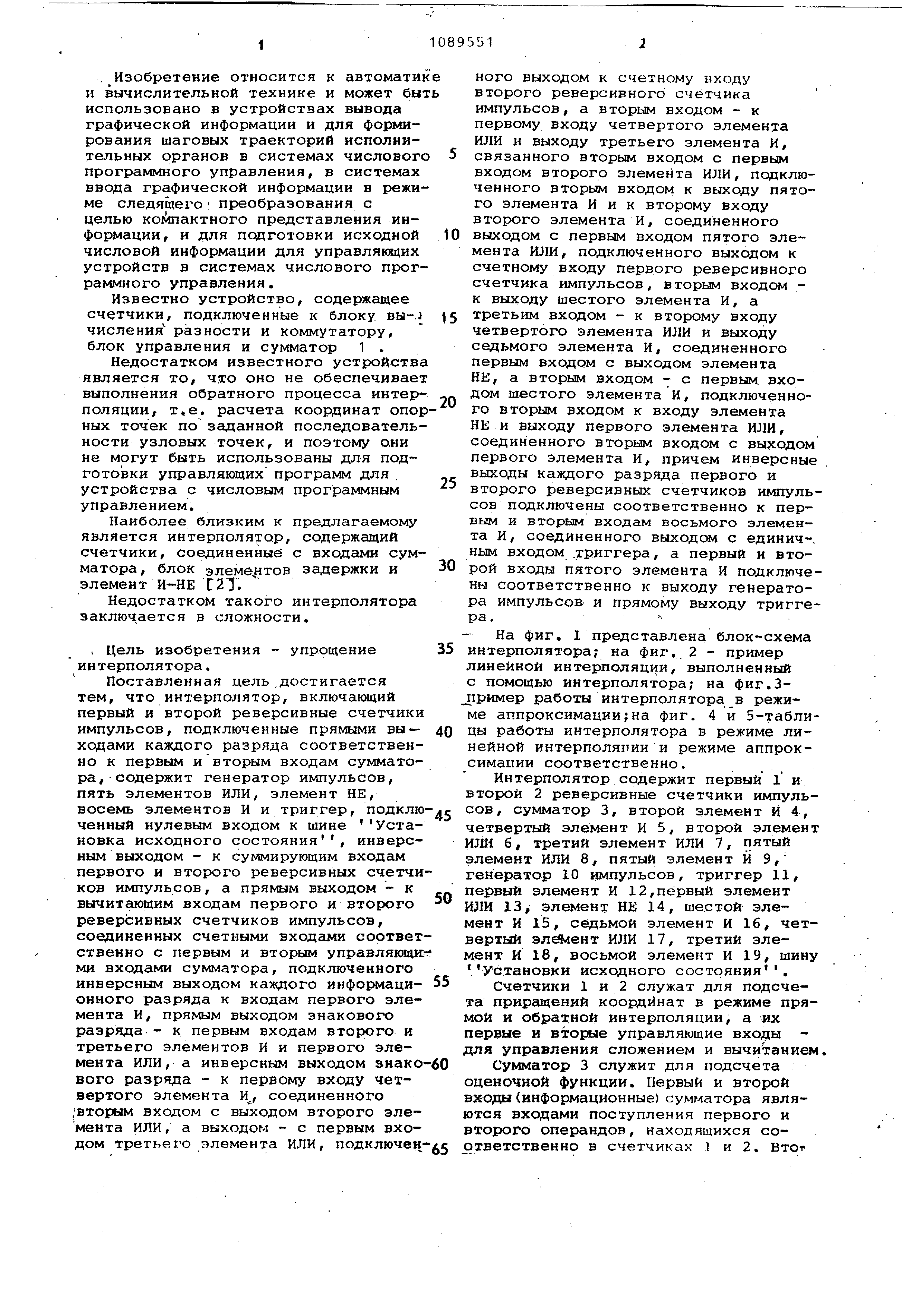 аппроксимации;на фиг. 4 и 5-таблицы работы интерполятора в режиме линейной